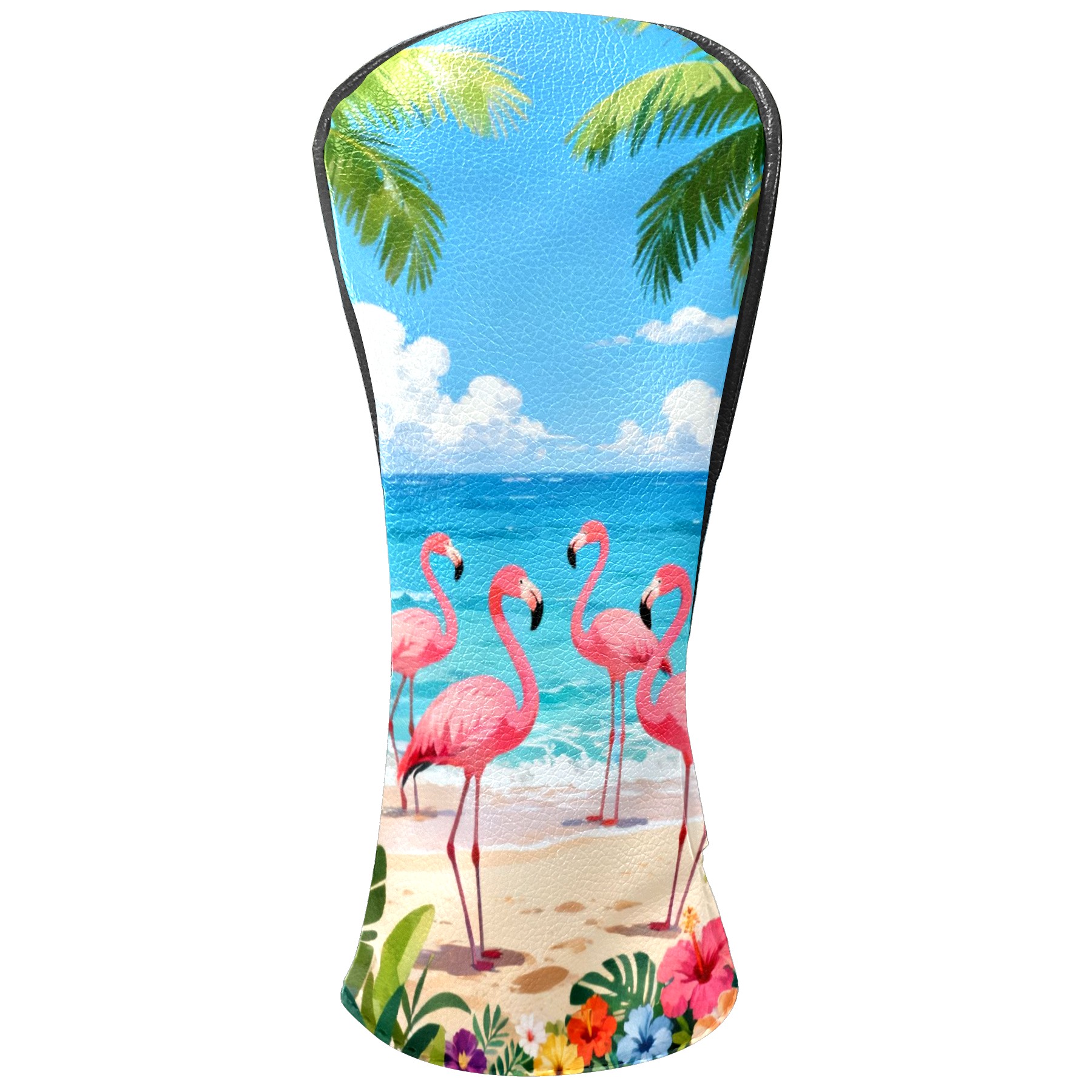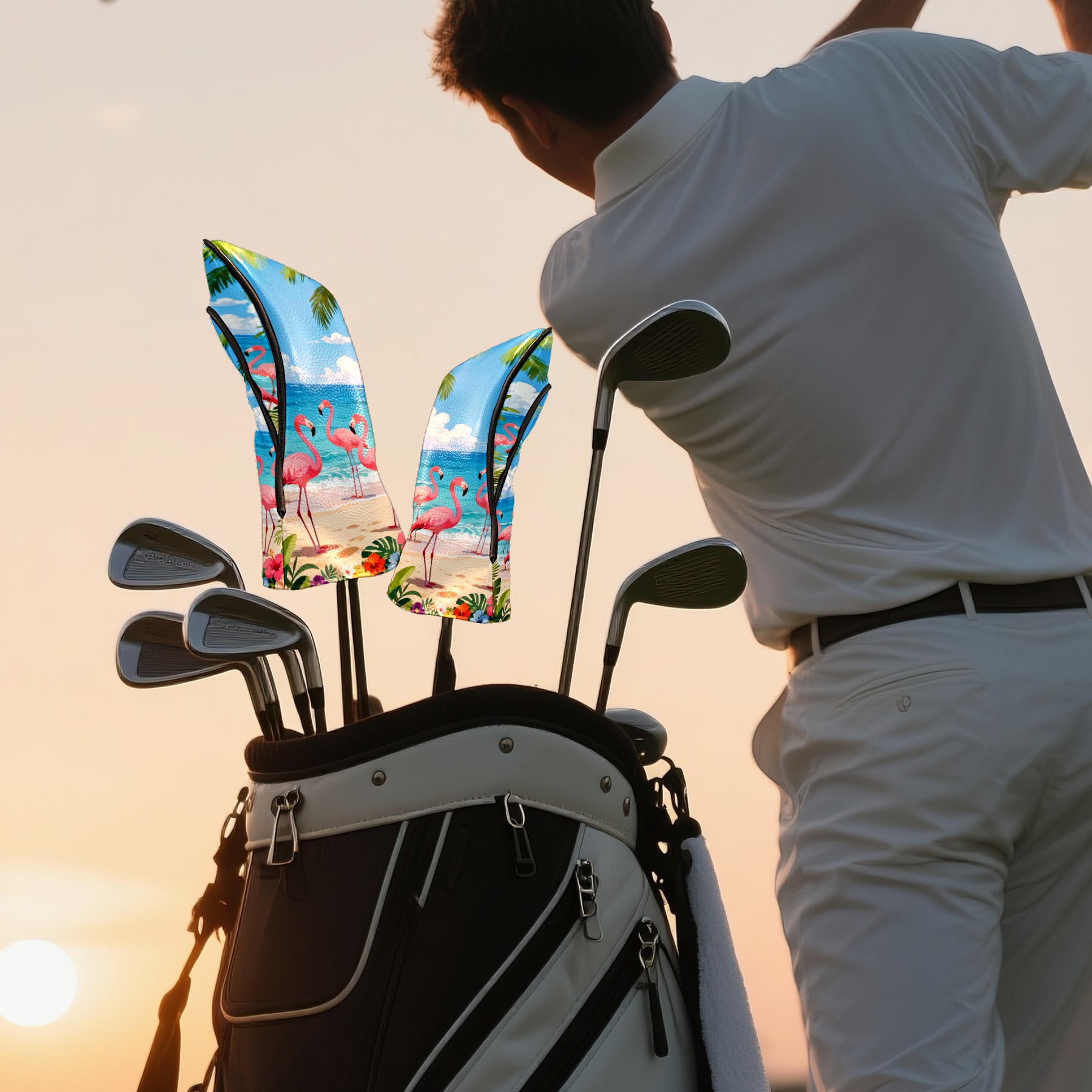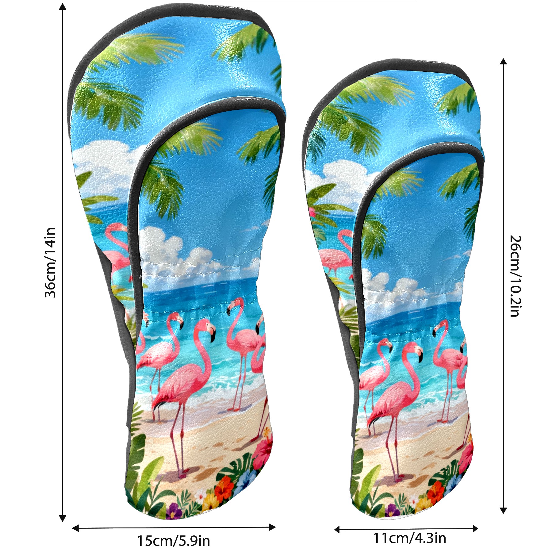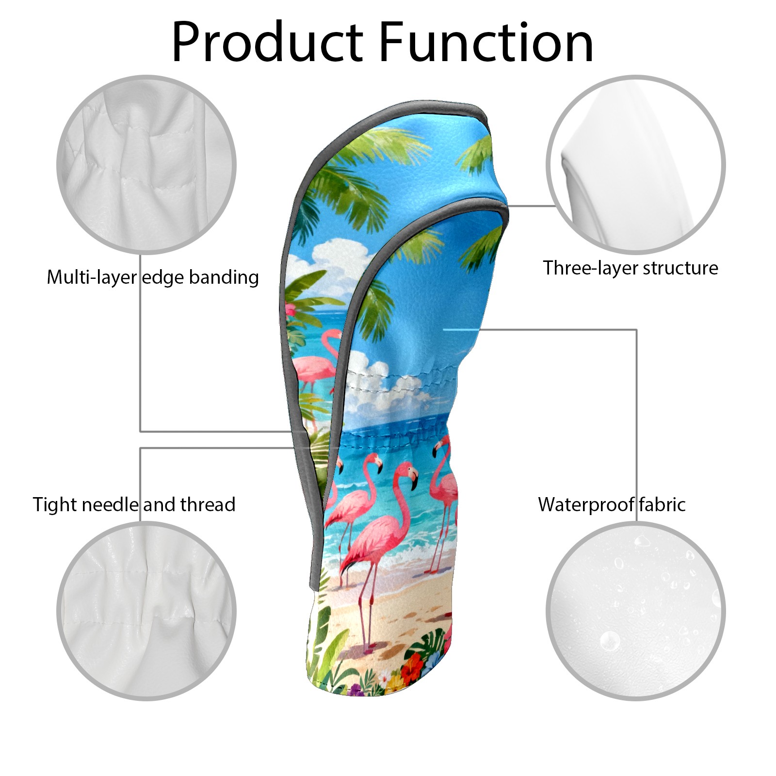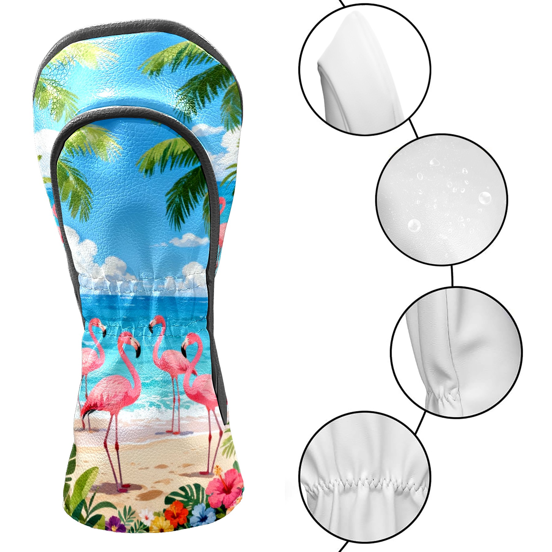 PU Leather Golf Head Covers Set – Fits Drivers/Fairway Woods/Hybrids, Ideal Gifts for Male & Female Golfers Tropical Flamingo Pattern