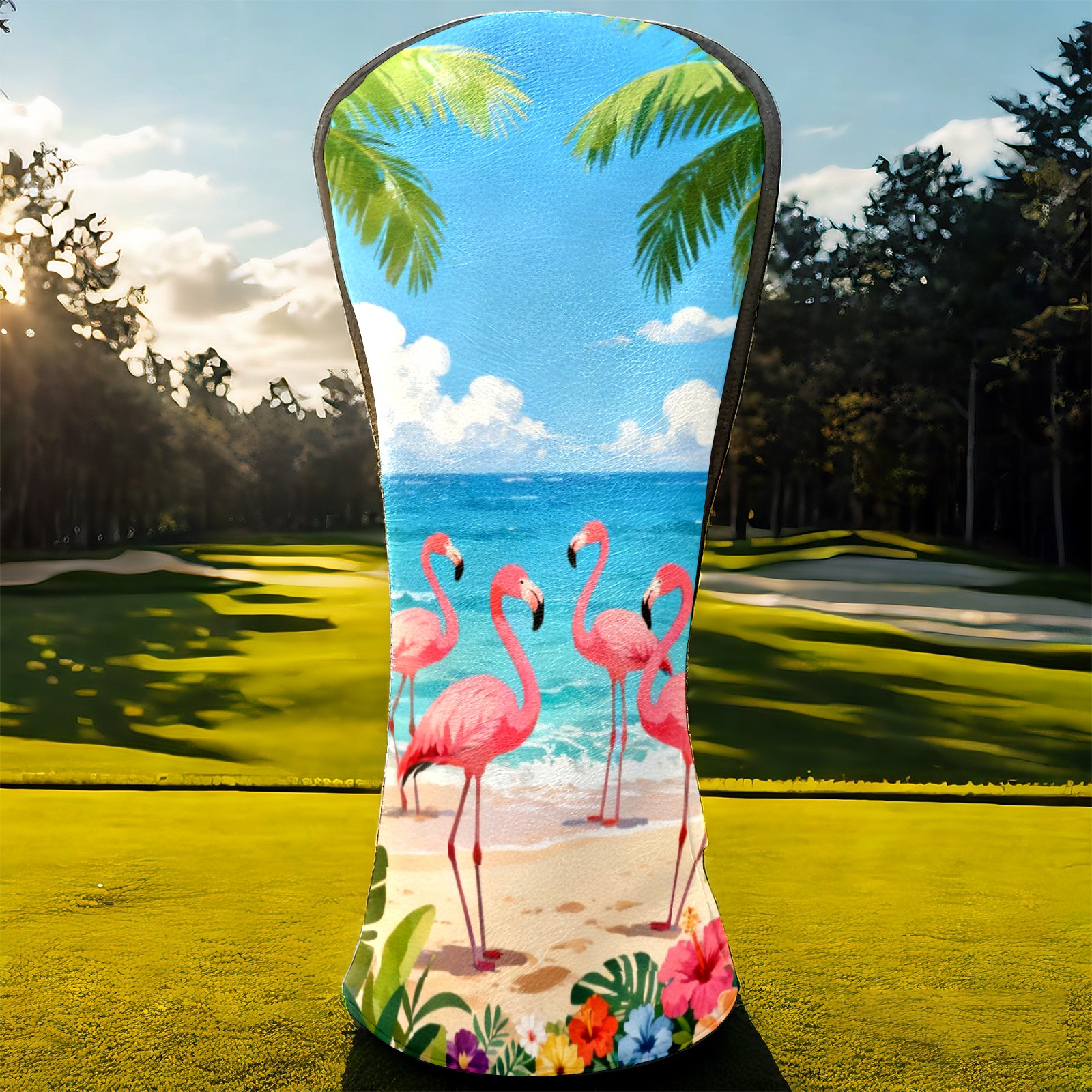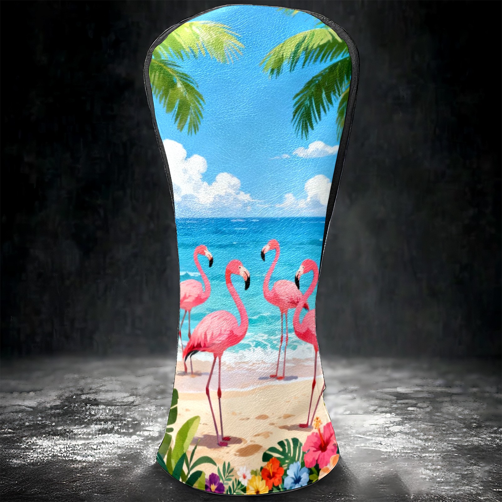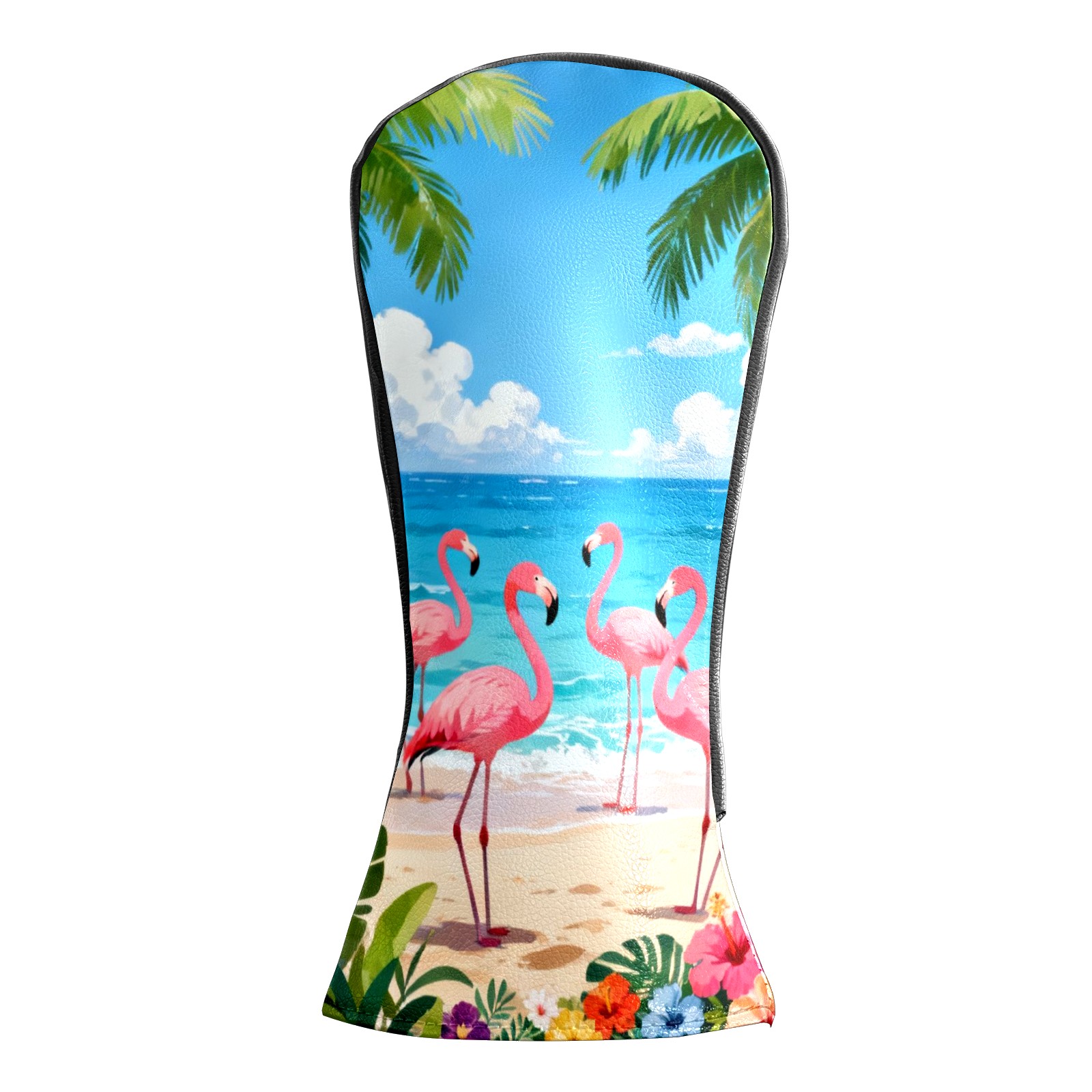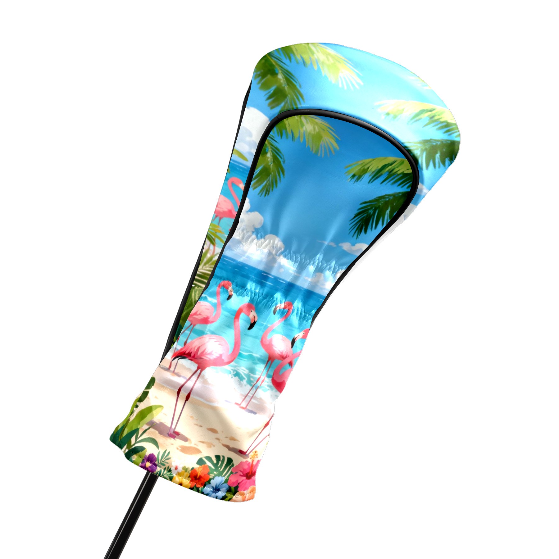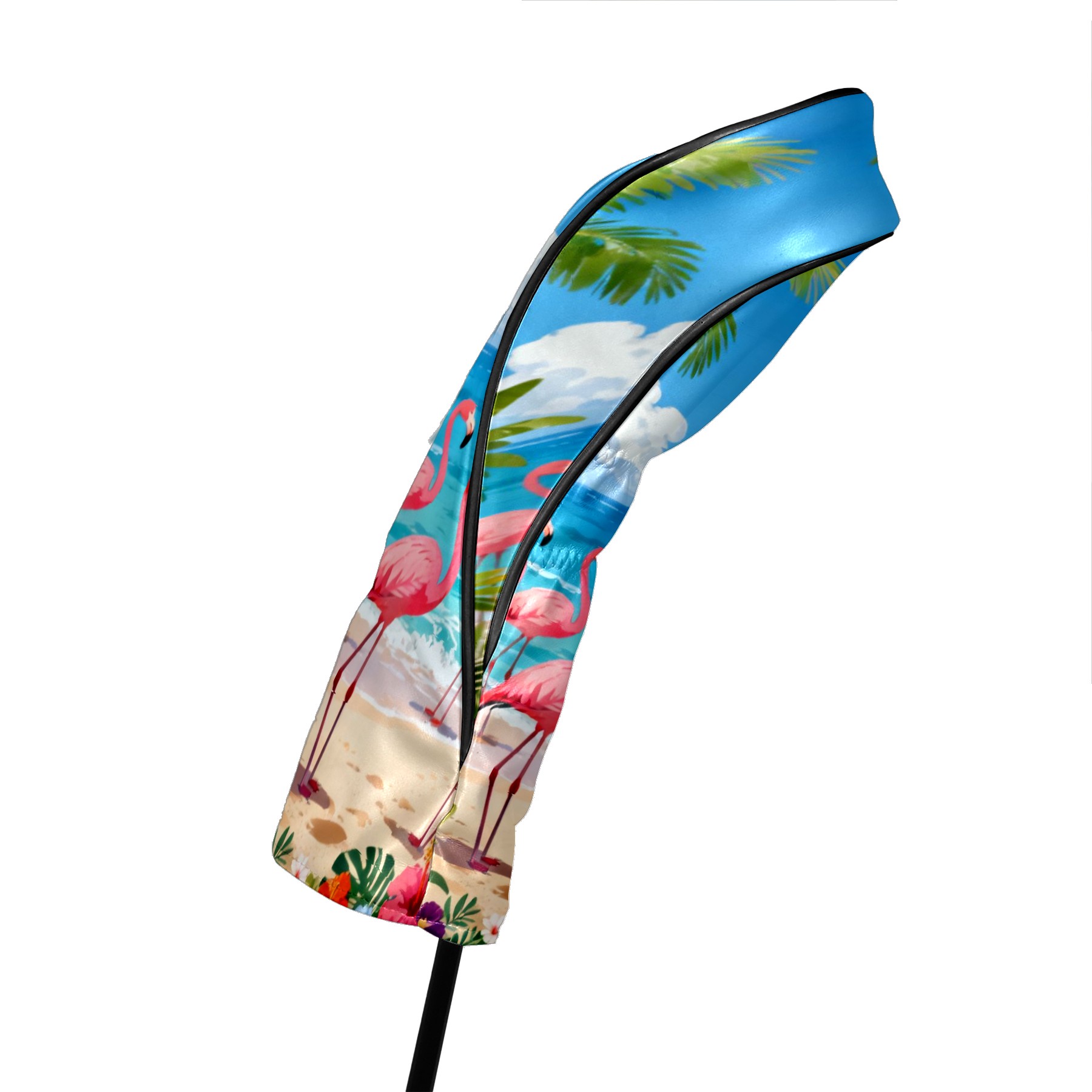 PU Leather Golf Head Covers Set – Fits Drivers/Fairway Woods/Hybrids, Ideal Gifts for Male & Female Golfers Tropical Flamingo Pattern
