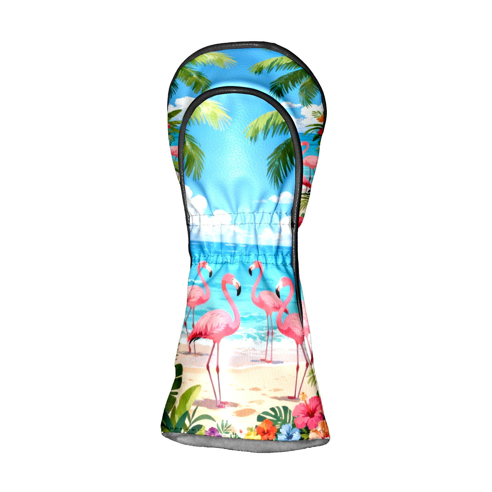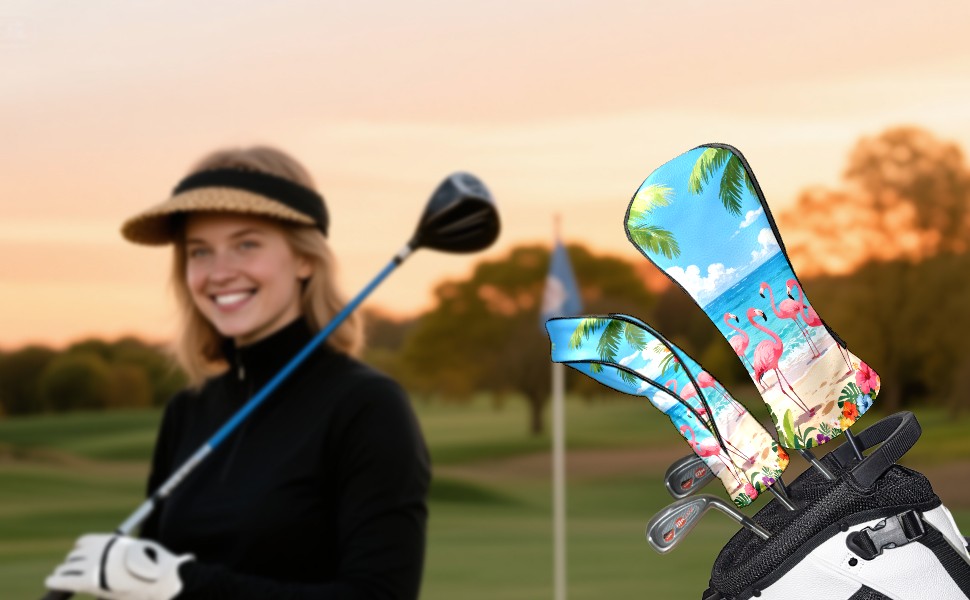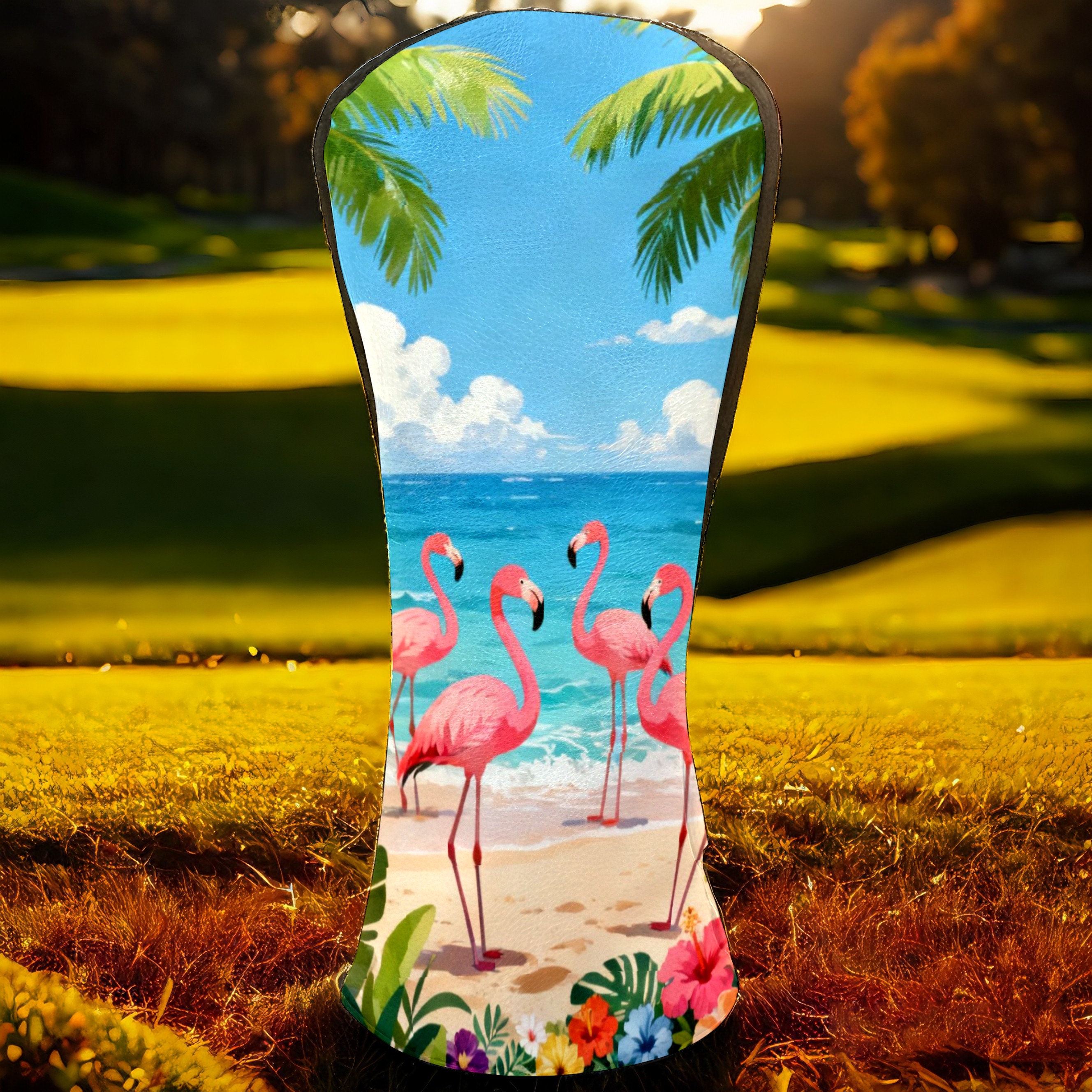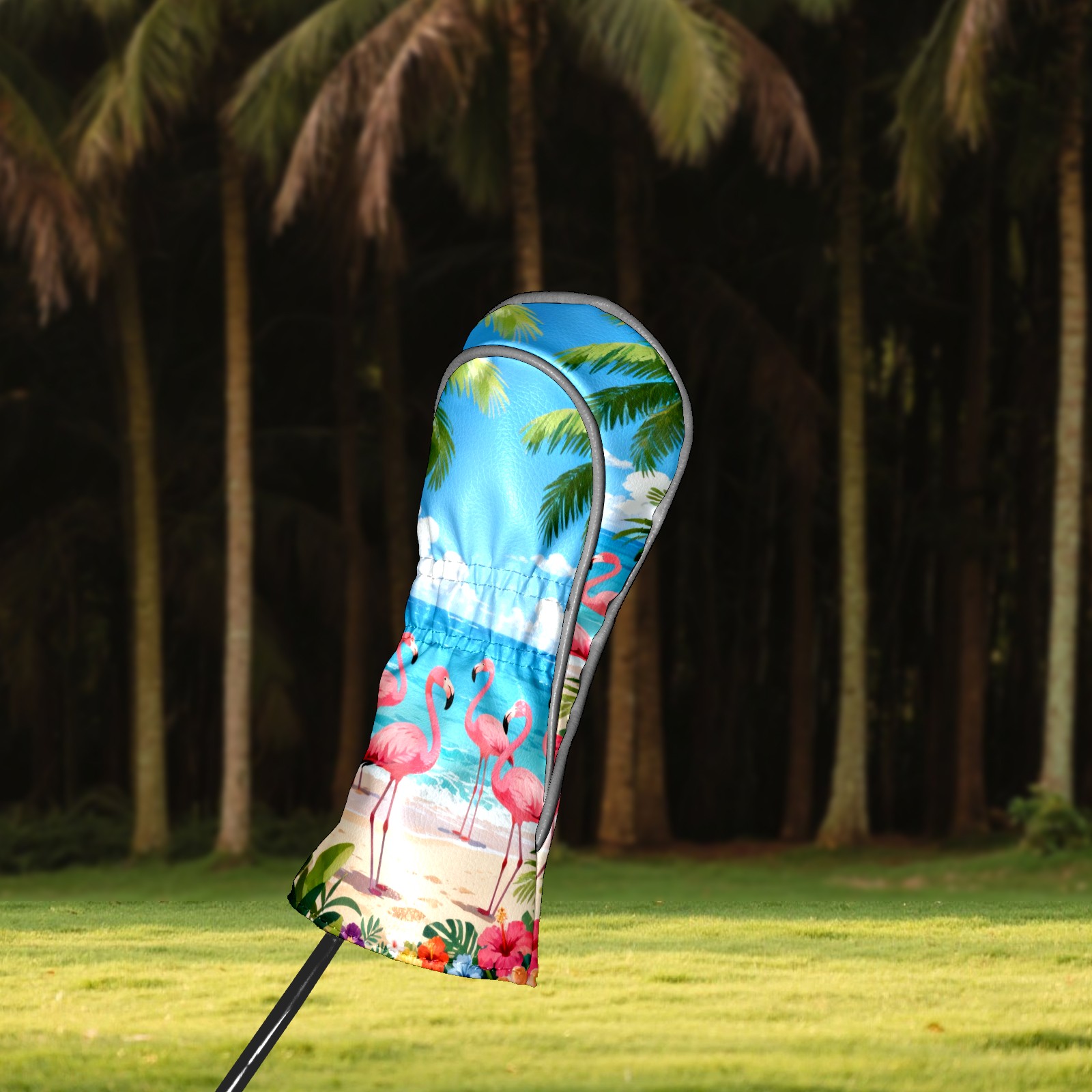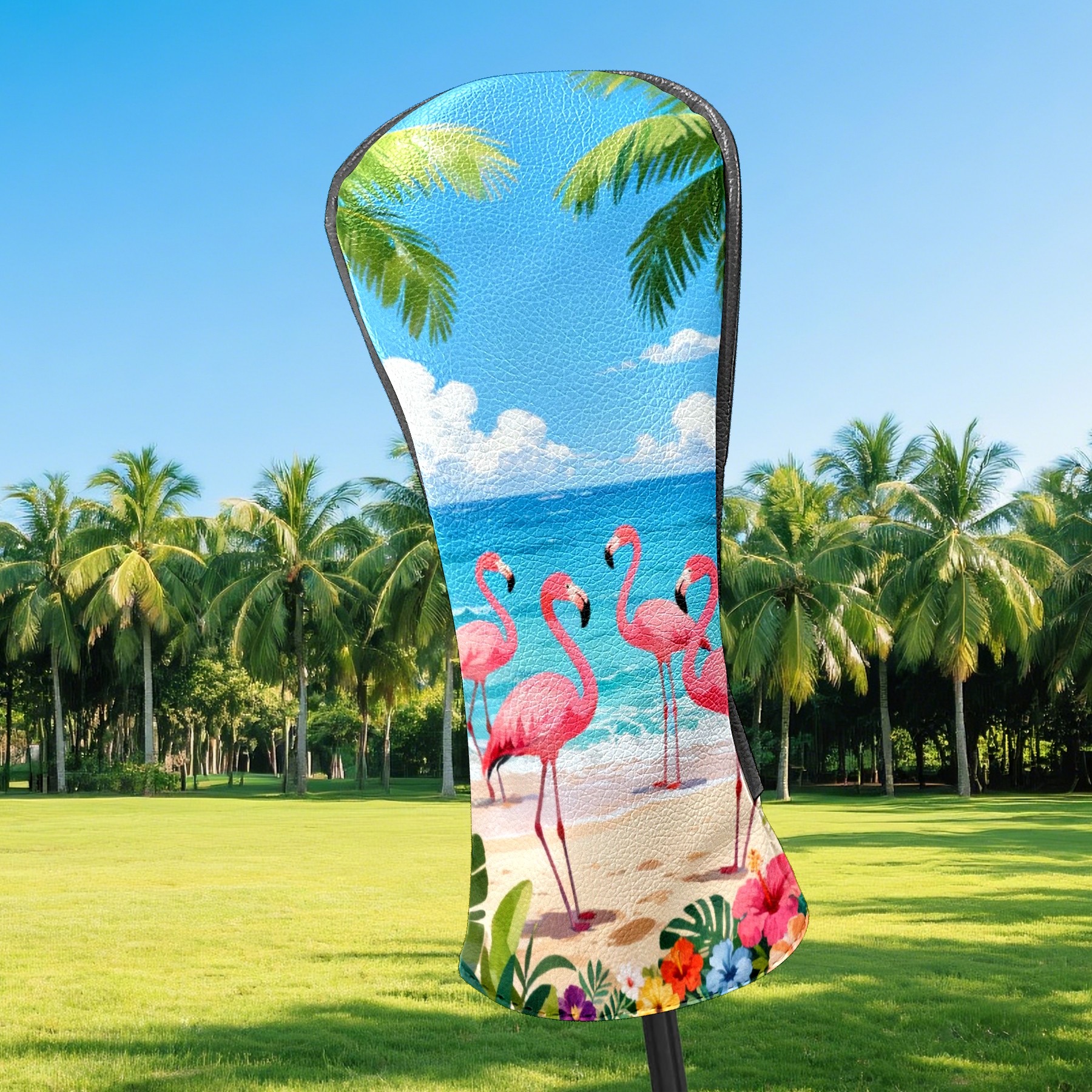PU Leather Golf Head Covers Set – Fits Drivers/Fairway Woods/Hybrids, Ideal Gifts for Male & Female Golfers Tropical Flamingo Pattern