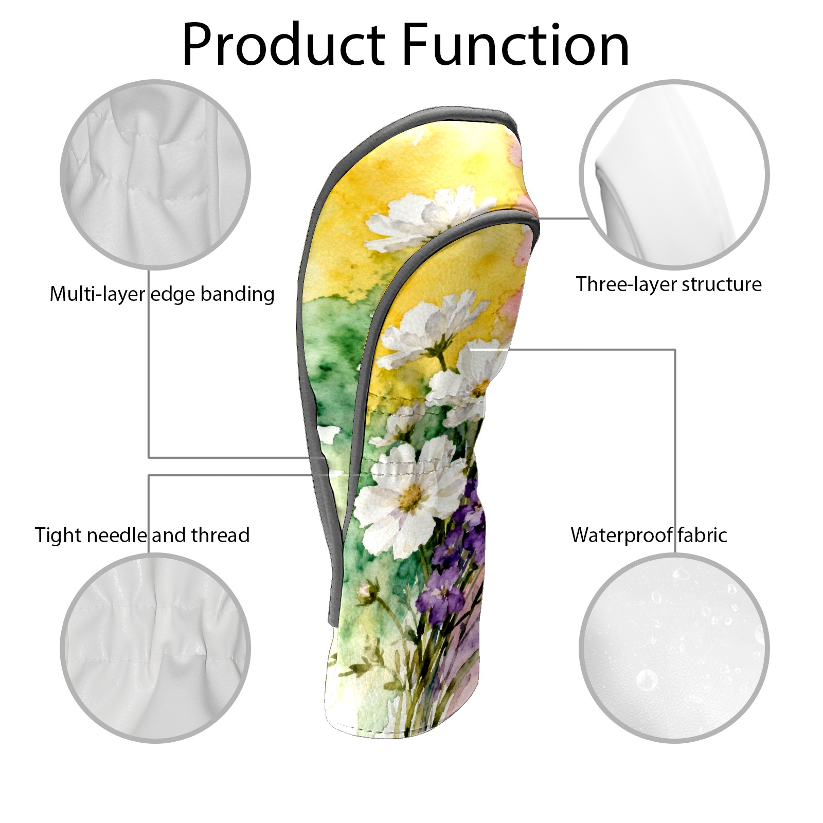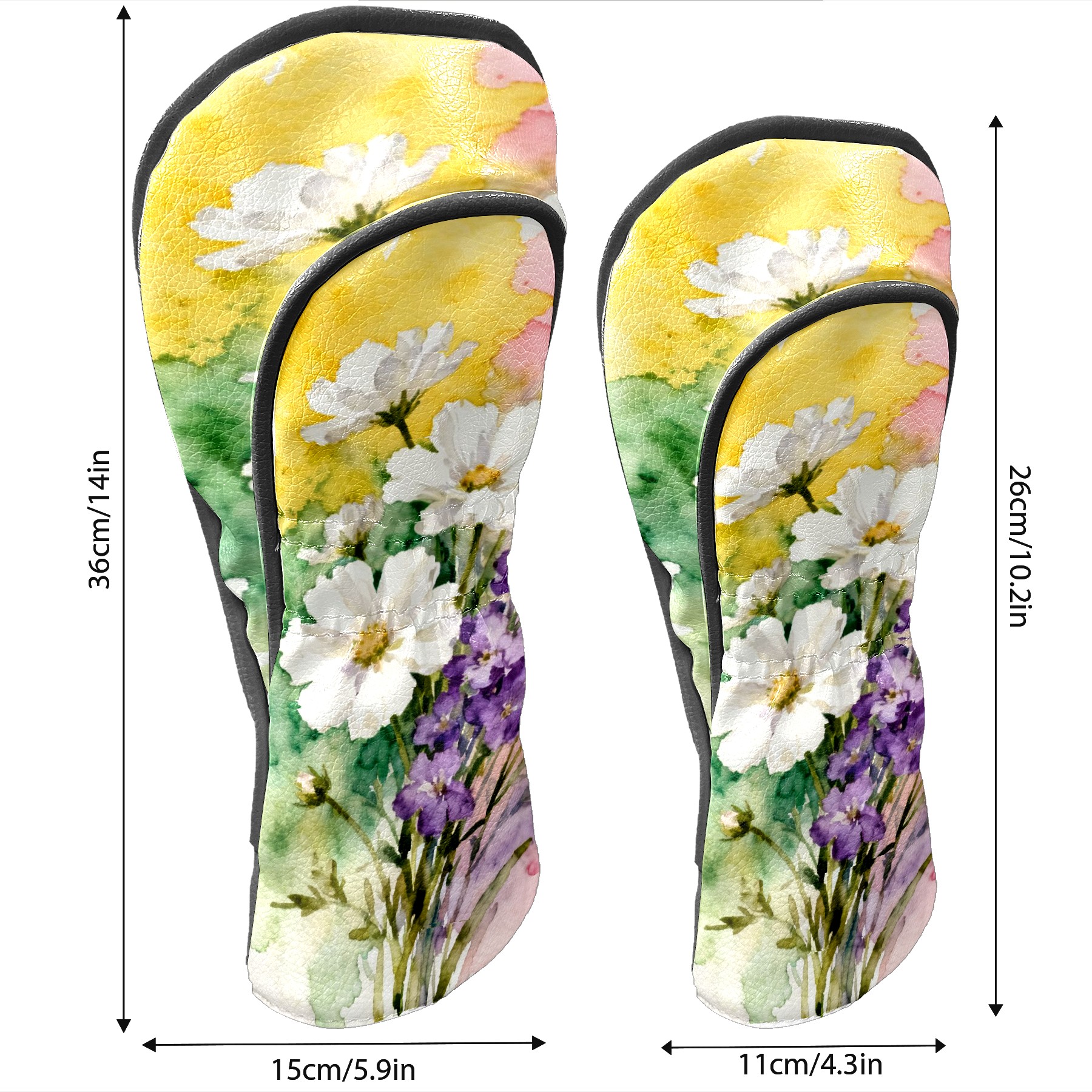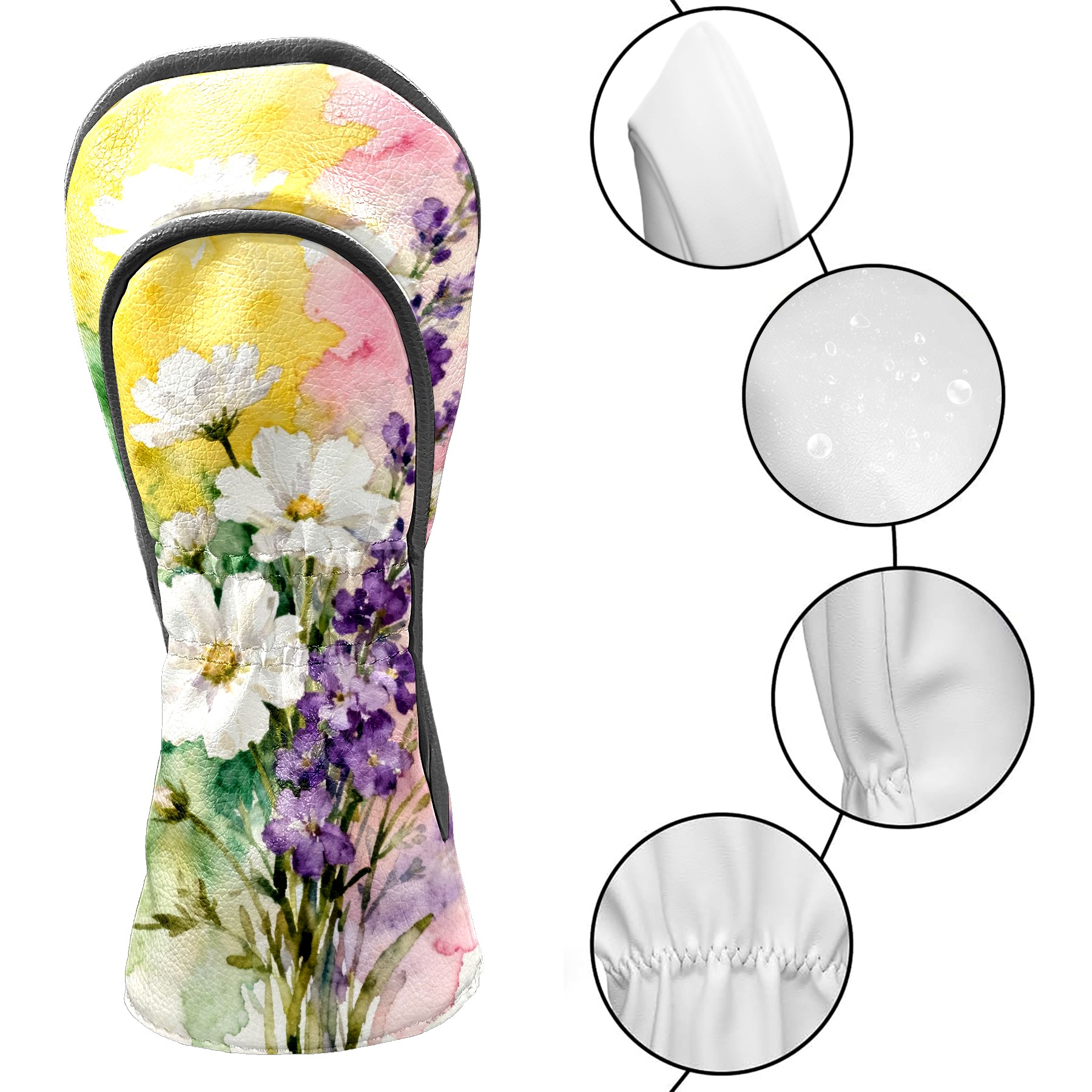 PU Leather Golf Head Covers Set – Fits Drivers/Fairway Woods/Hybrids, Ideal Gifts for Male & Female Golfers Watercolor Floral Pattern12