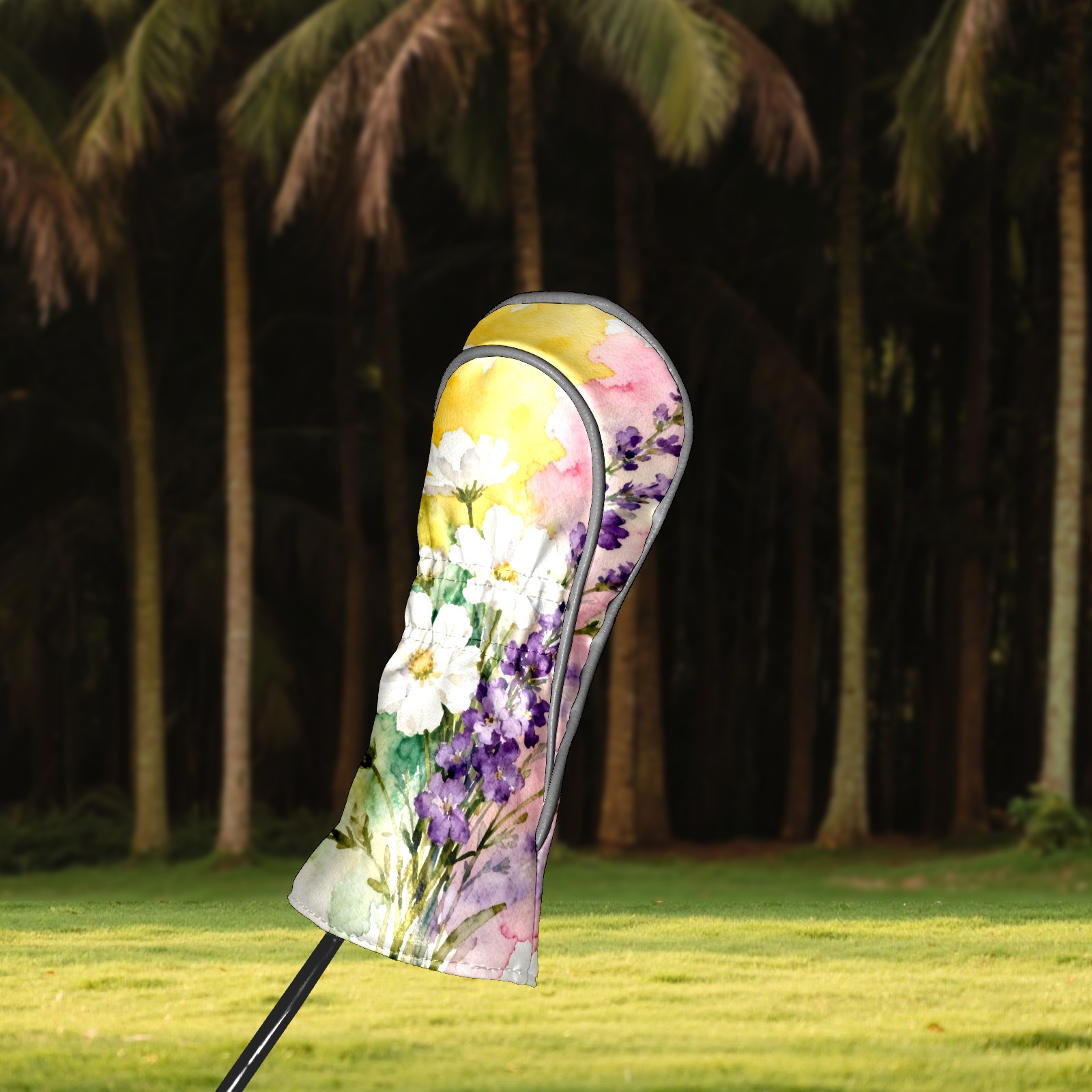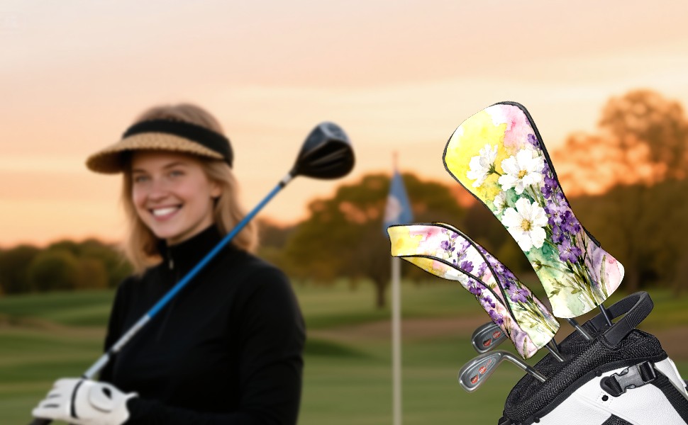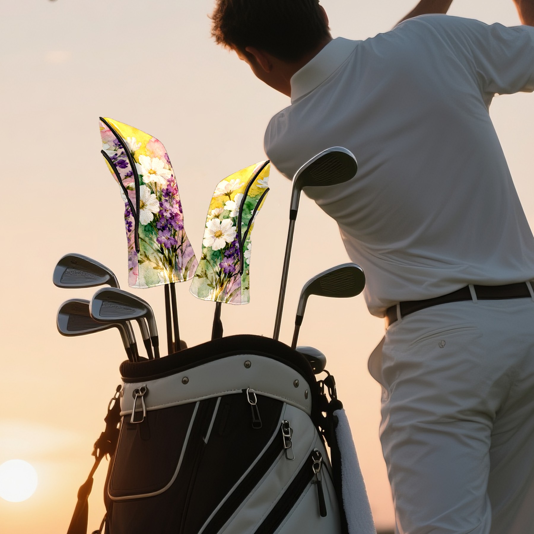 PU Leather Golf Head Covers Set – Fits Drivers/Fairway Woods/Hybrids, Ideal Gifts for Male & Female Golfers Watercolor Floral Pattern12