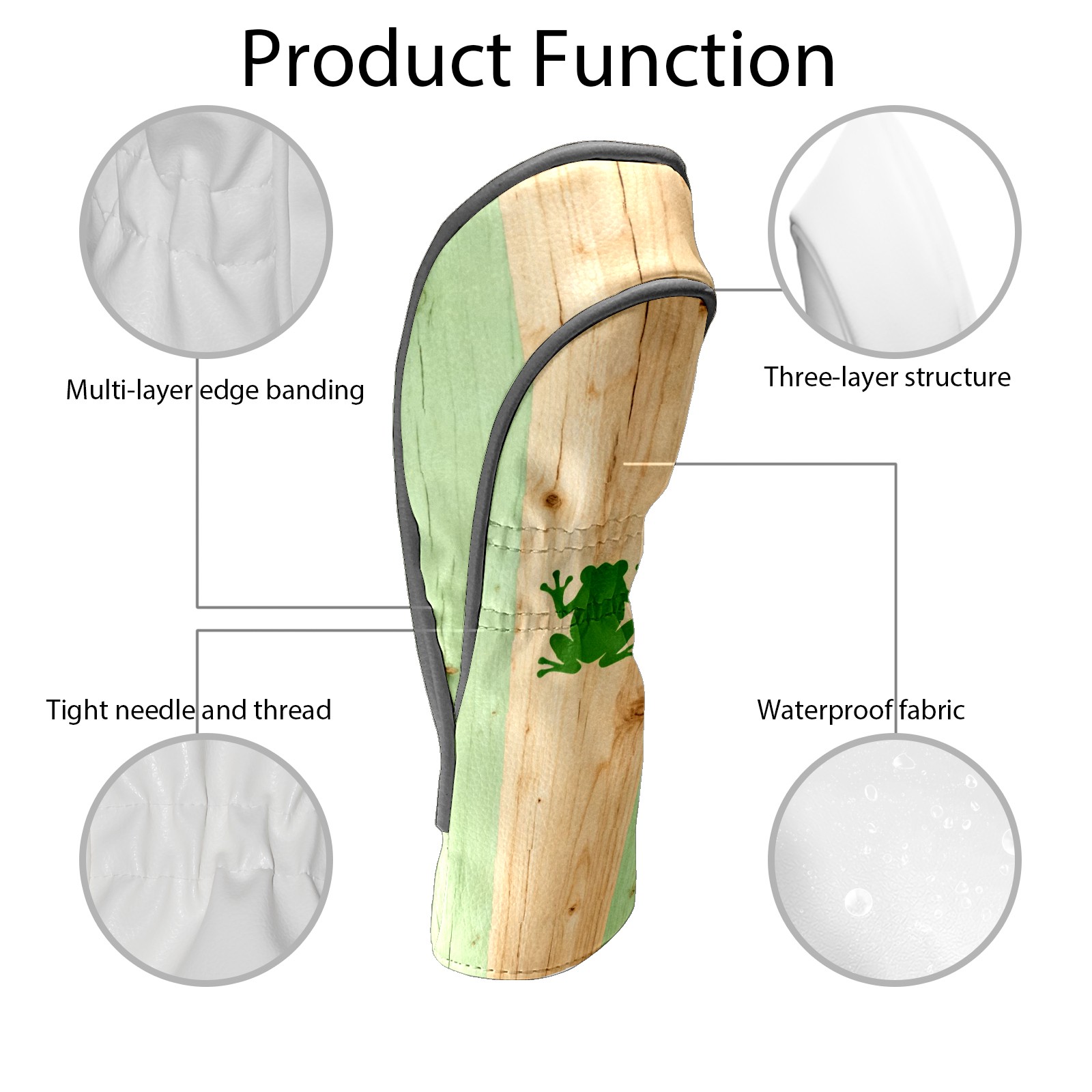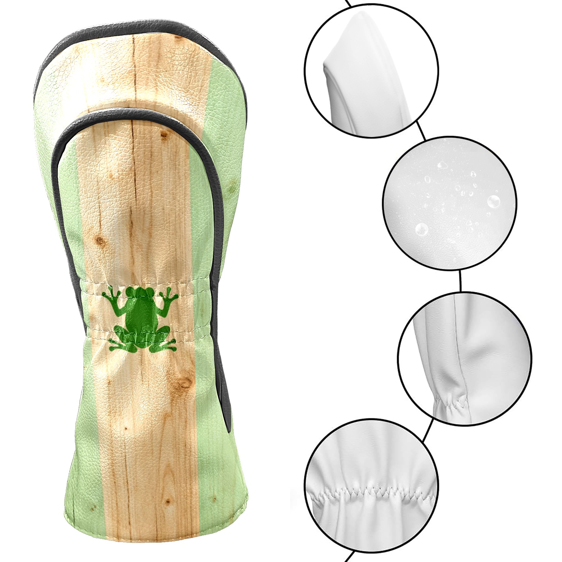 PU Leather Golf Head Covers Set – Fits Drivers/Fairway Woods/Hybrids, Ideal Gifts for Male & Female Golfers Striped Frog Pattern
