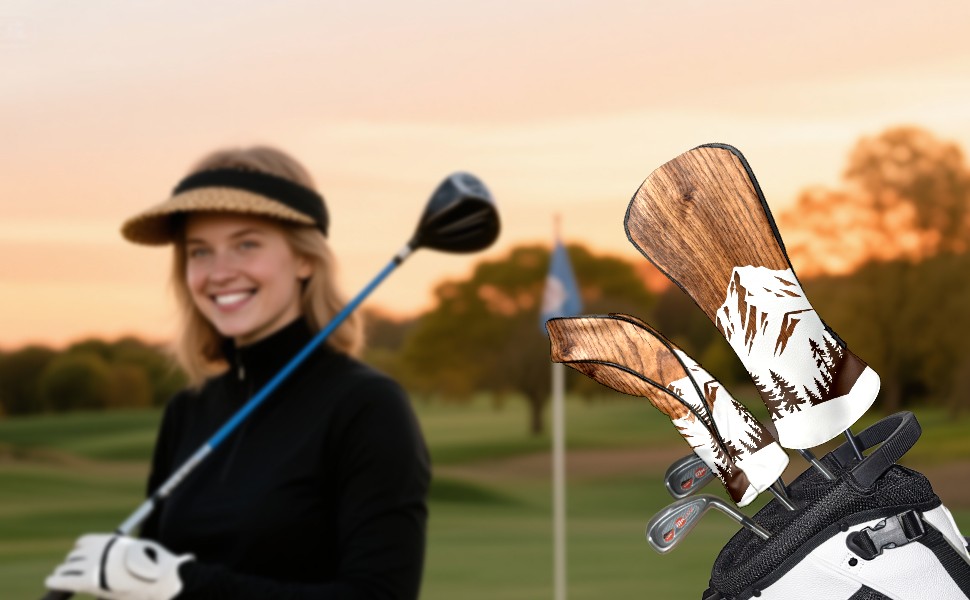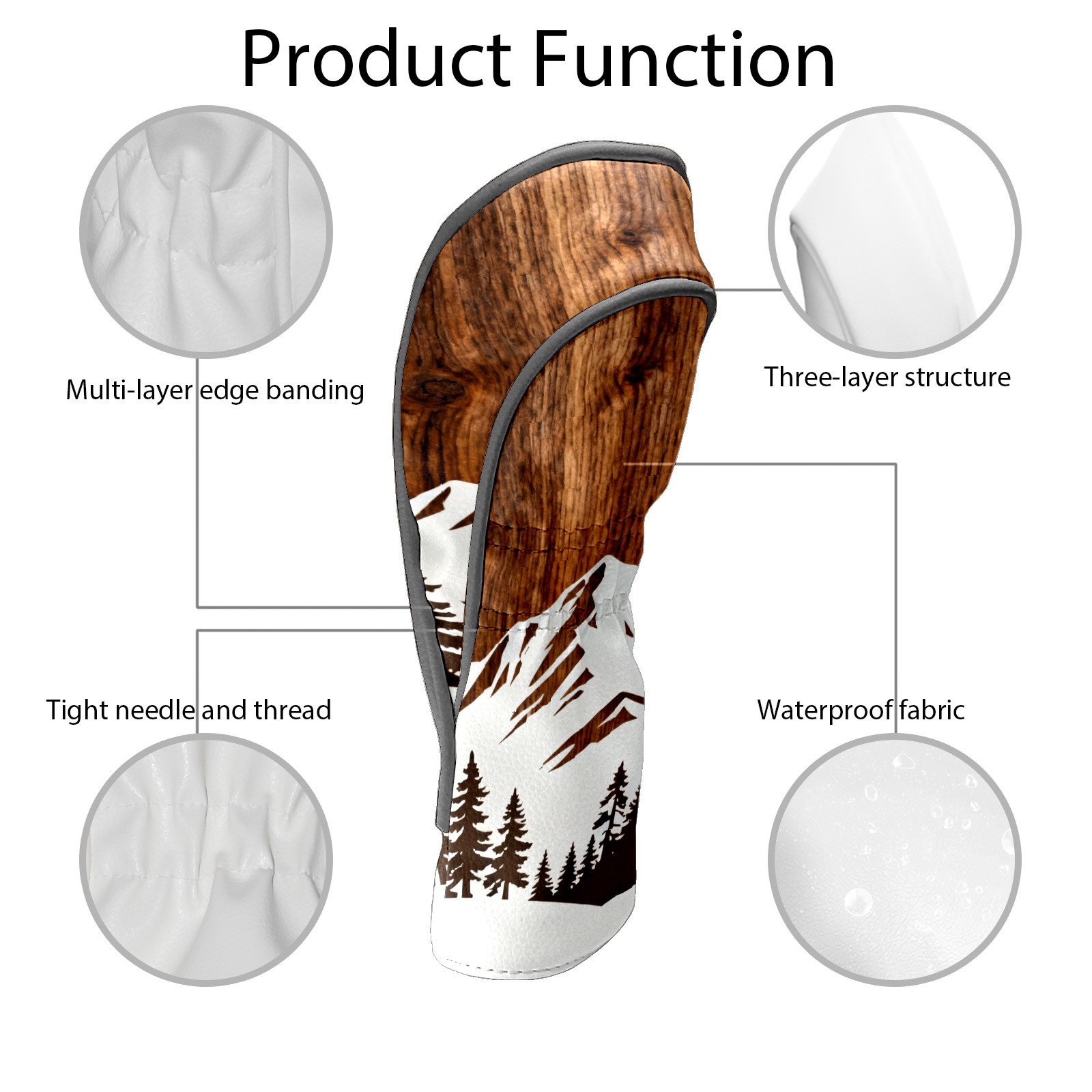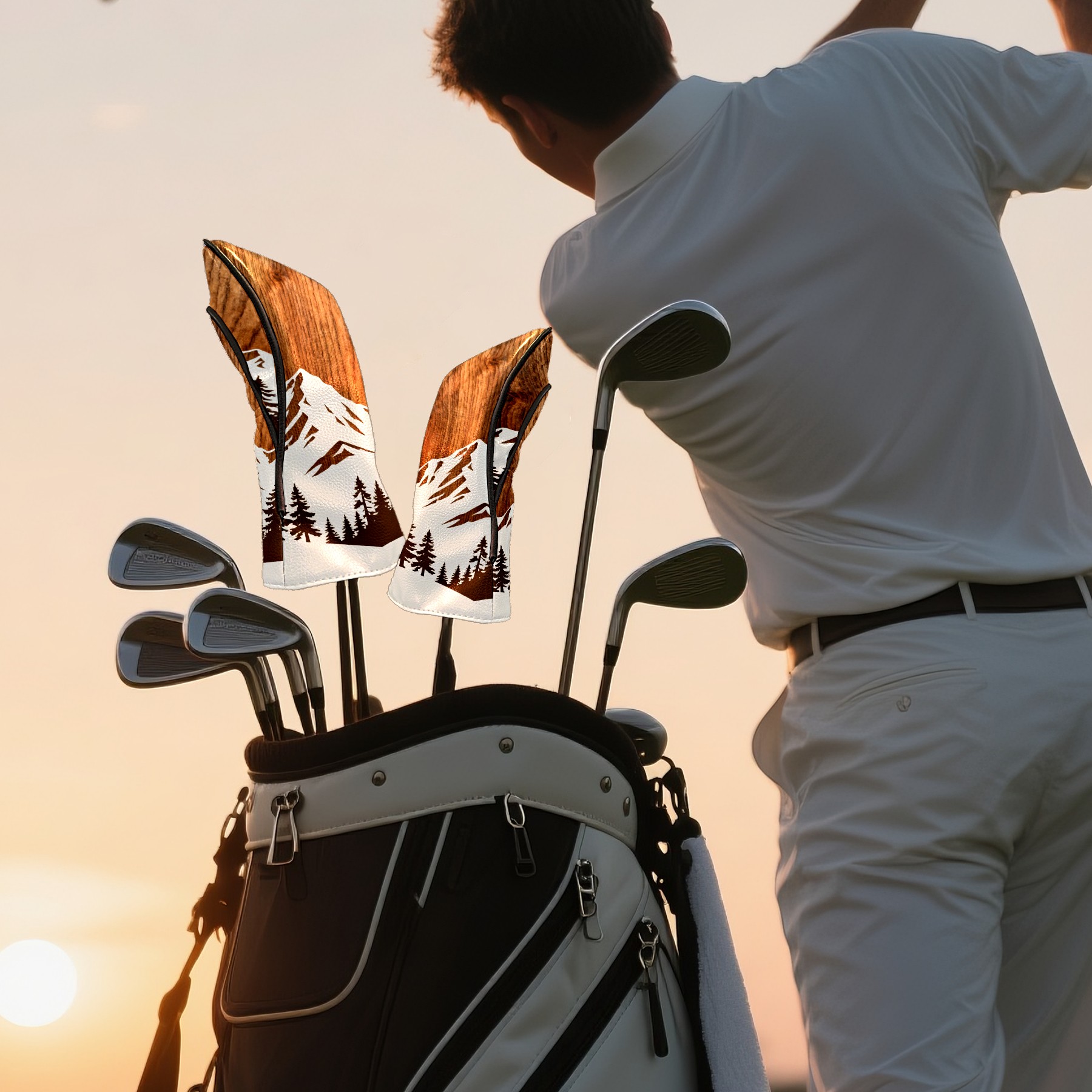 PU Leather Golf Head Covers Set – Fits Drivers/Fairway Woods/Hybrids, Ideal Gifts for Male & Female Golfers White Mountain Silhouette