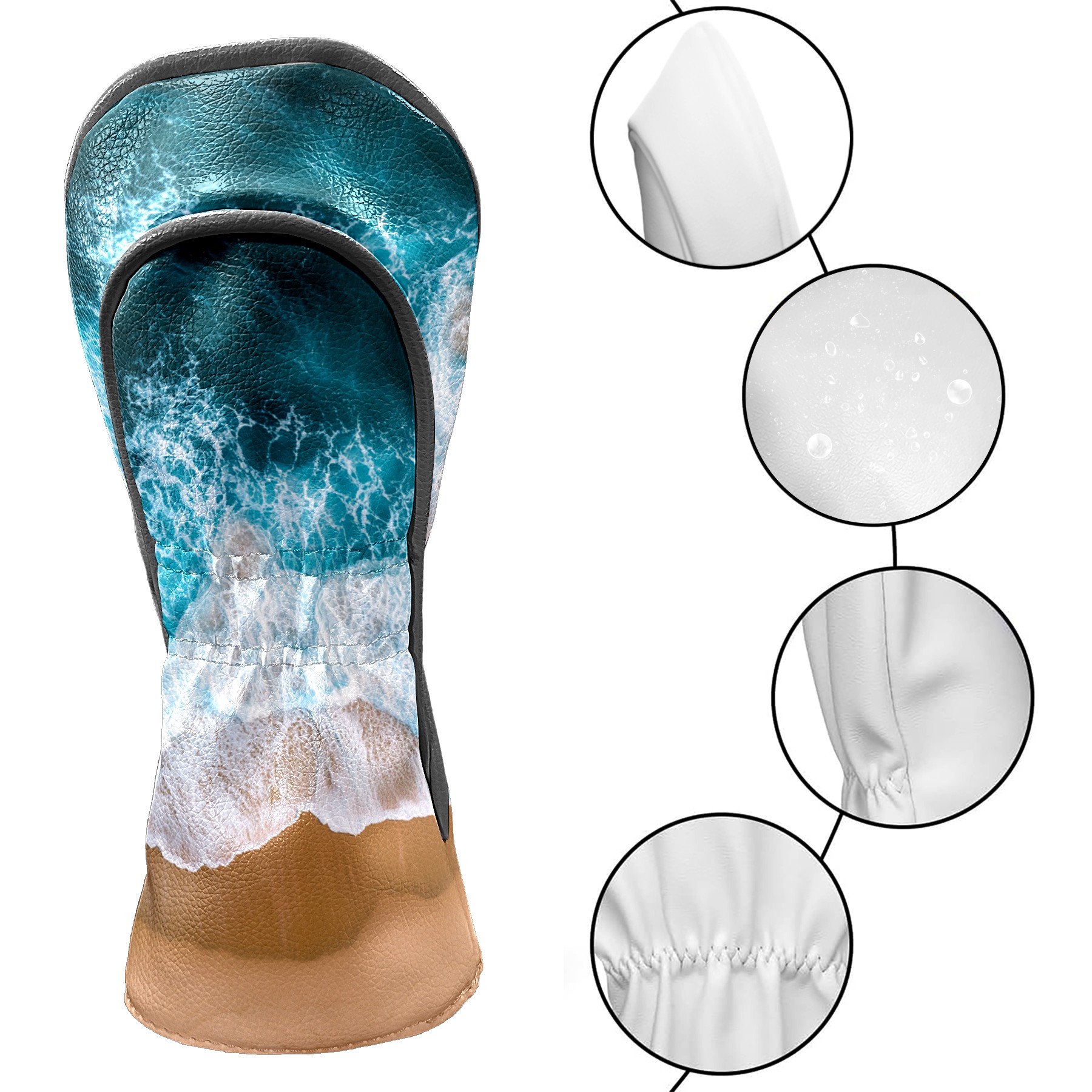 PU Leather Golf Head Covers Set – Fits Drivers/Fairway Woods/Hybrids, Ideal Gifts for Male & Female Golfers Wave Pattern3