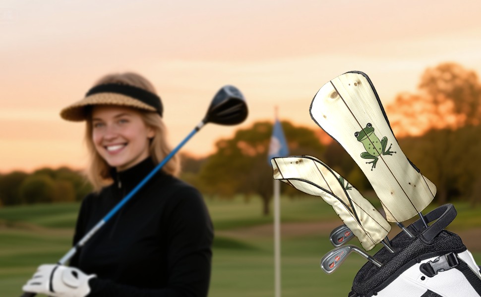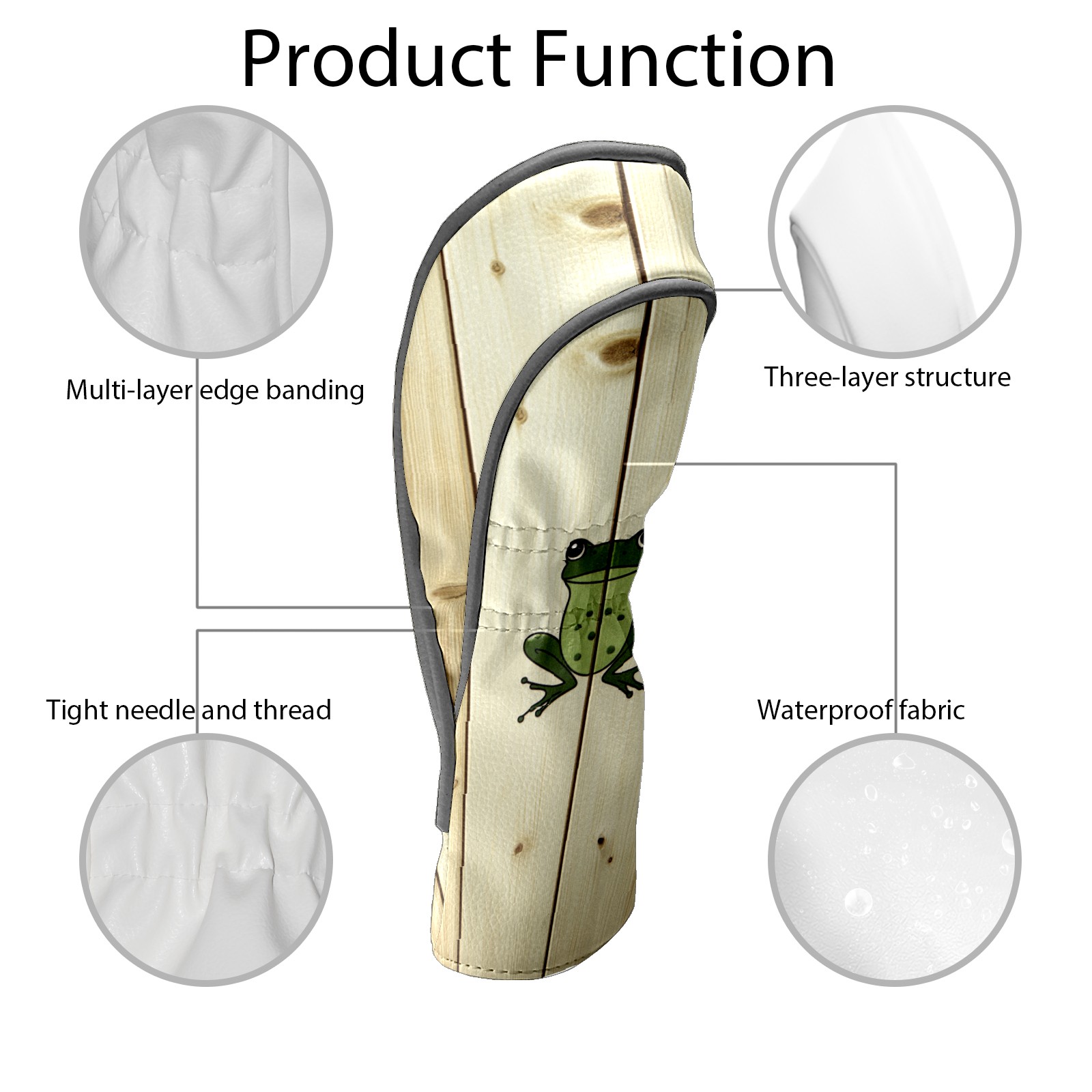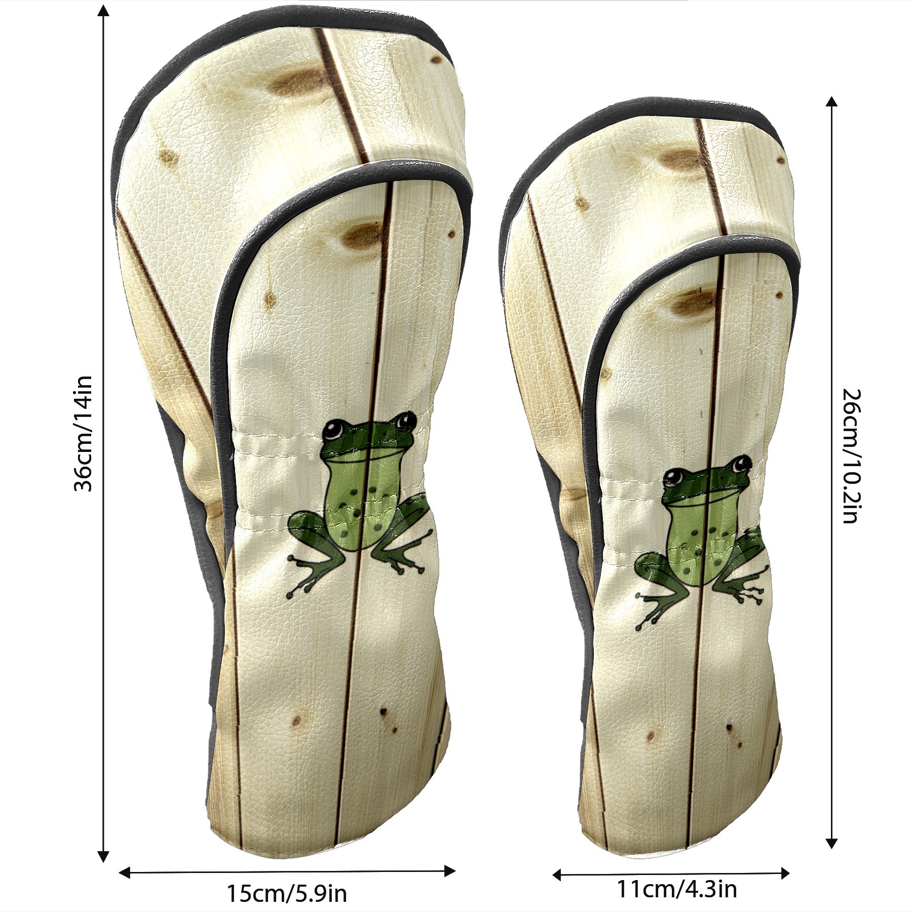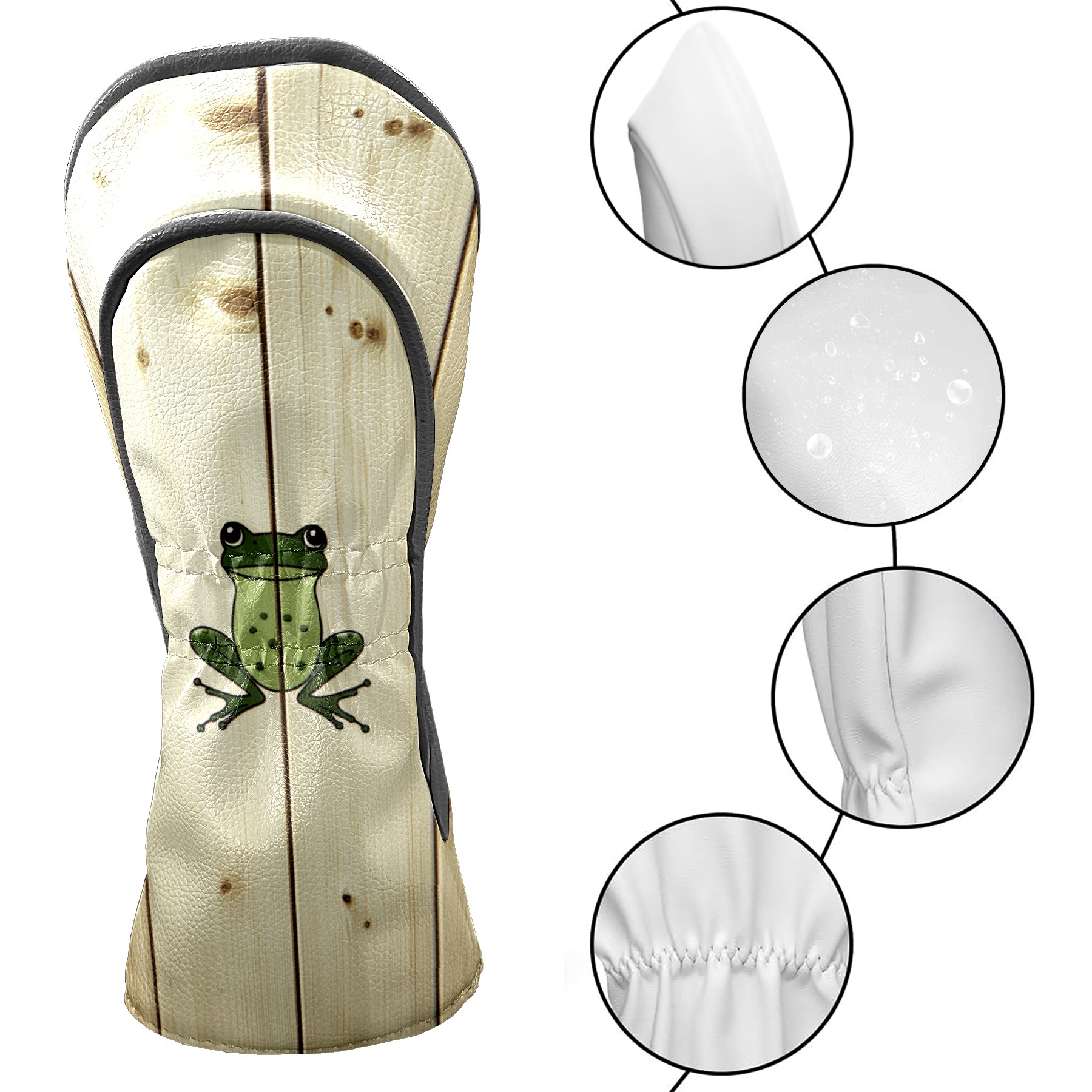 PU Leather Golf Head Covers Set – Fits Drivers/Fairway Woods/Hybrids, Ideal Gifts for Male & Female Golfers Striped Frog Pattern3