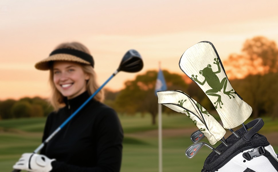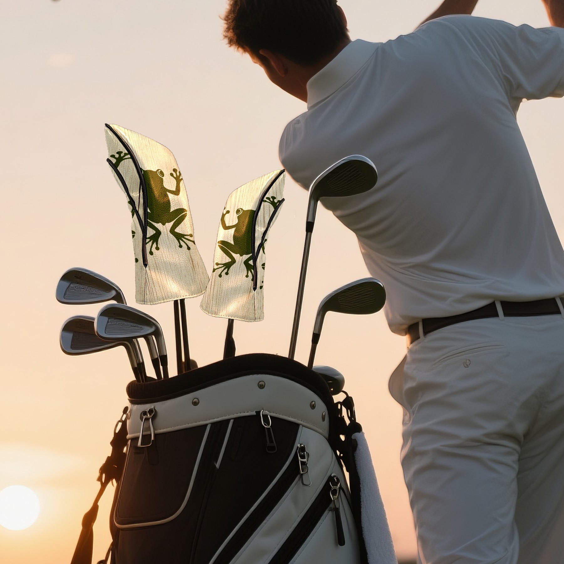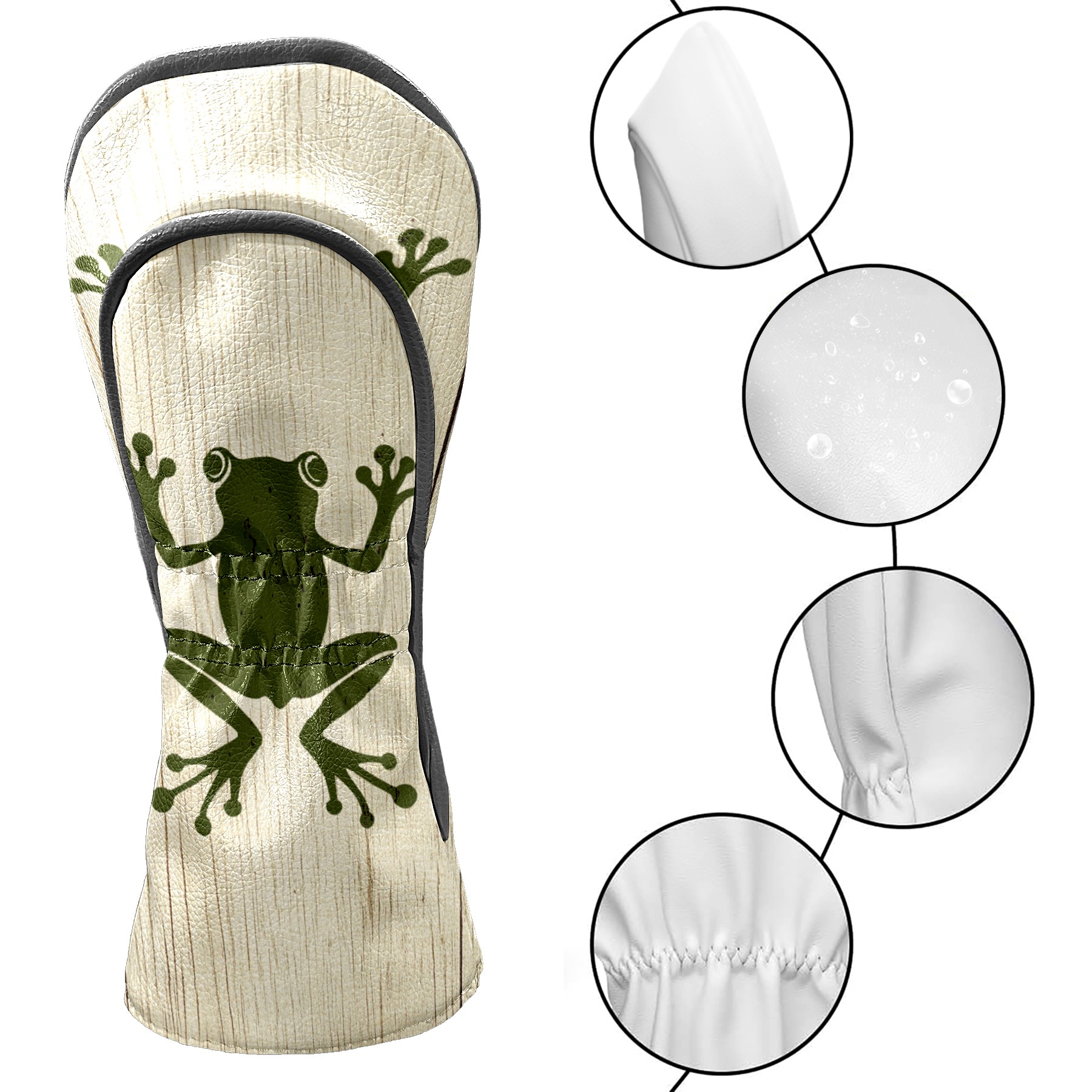 PU Leather Golf Head Covers Set – Fits Drivers/Fairway Woods/Hybrids, Ideal Gifts for Male & Female Golfers Striped Frog Pattern4