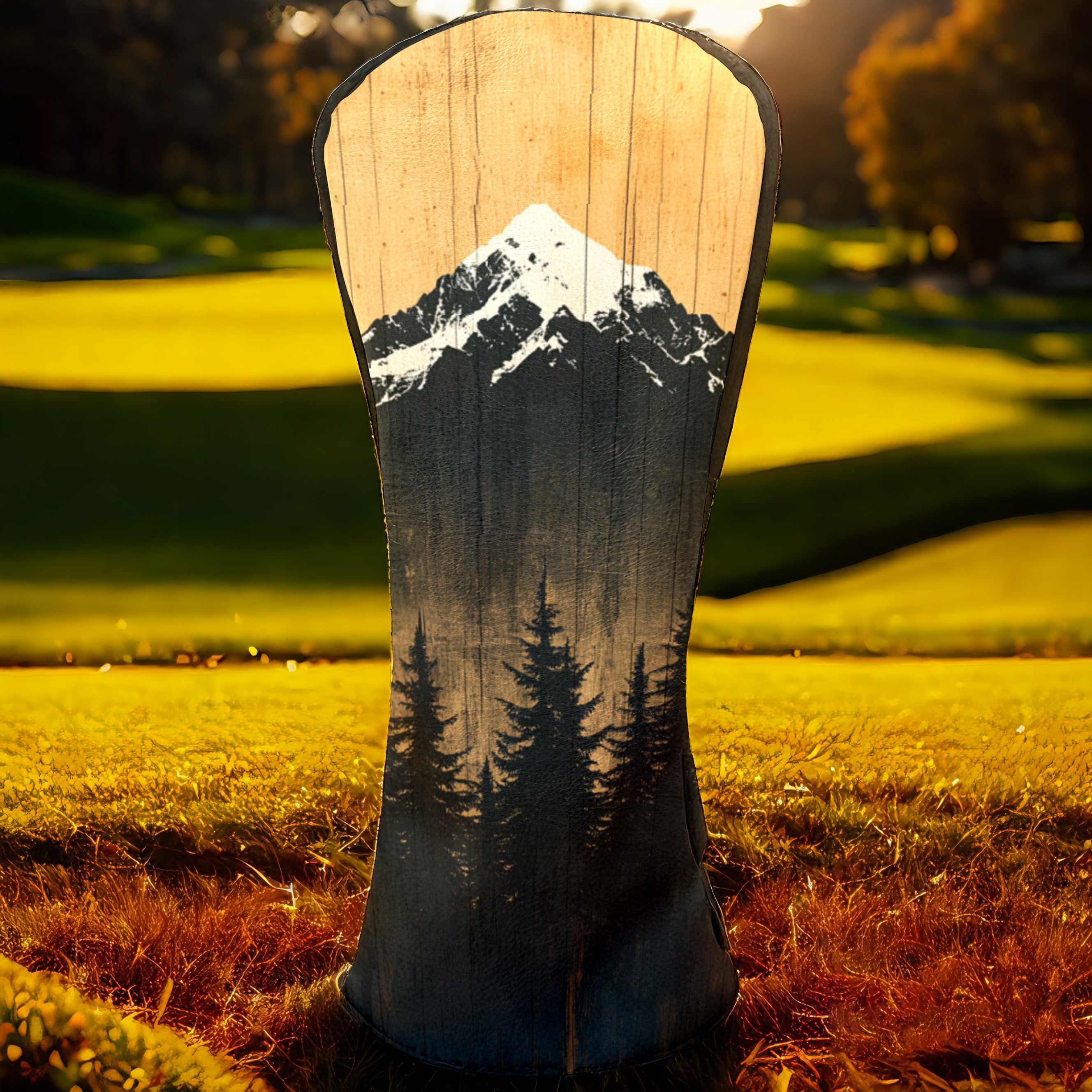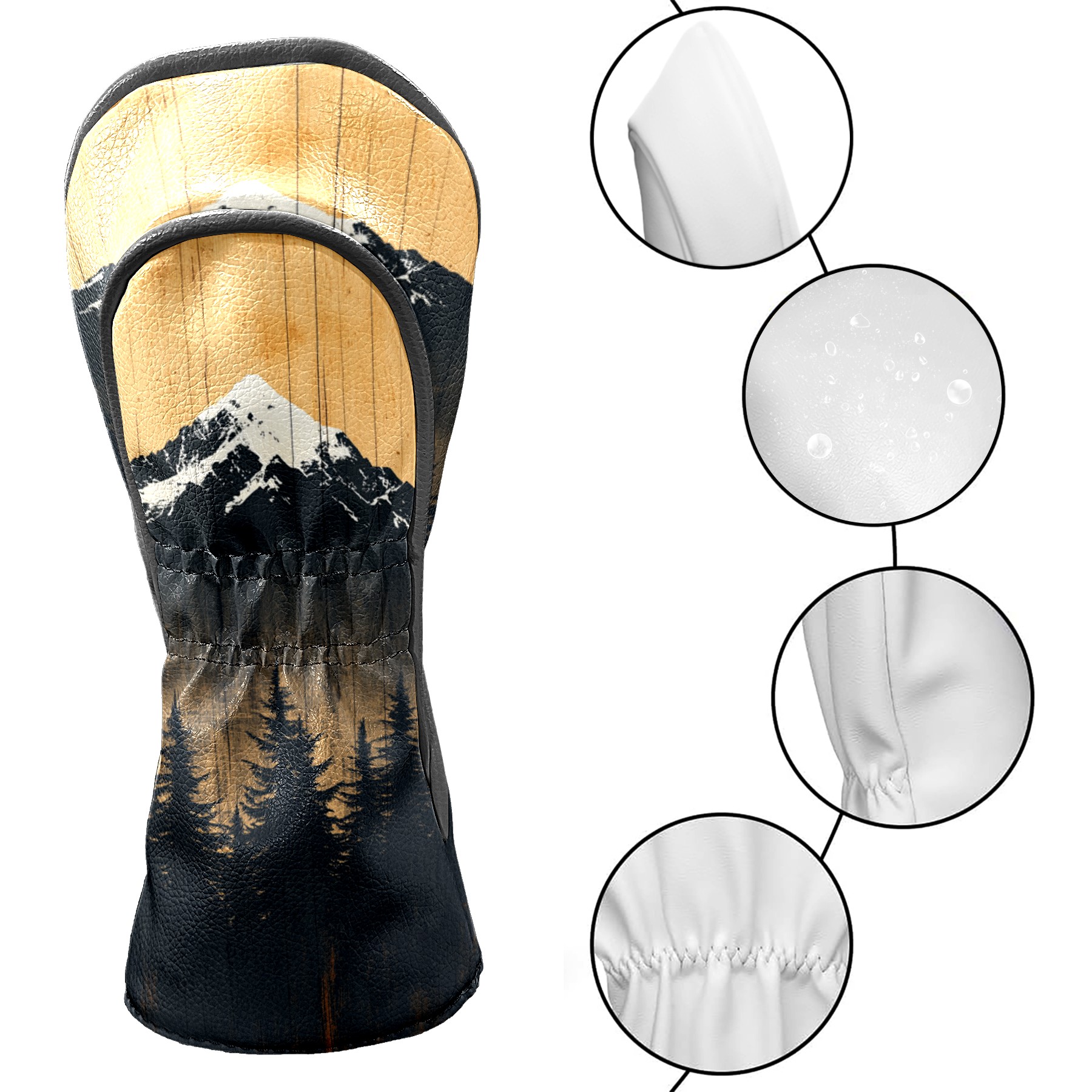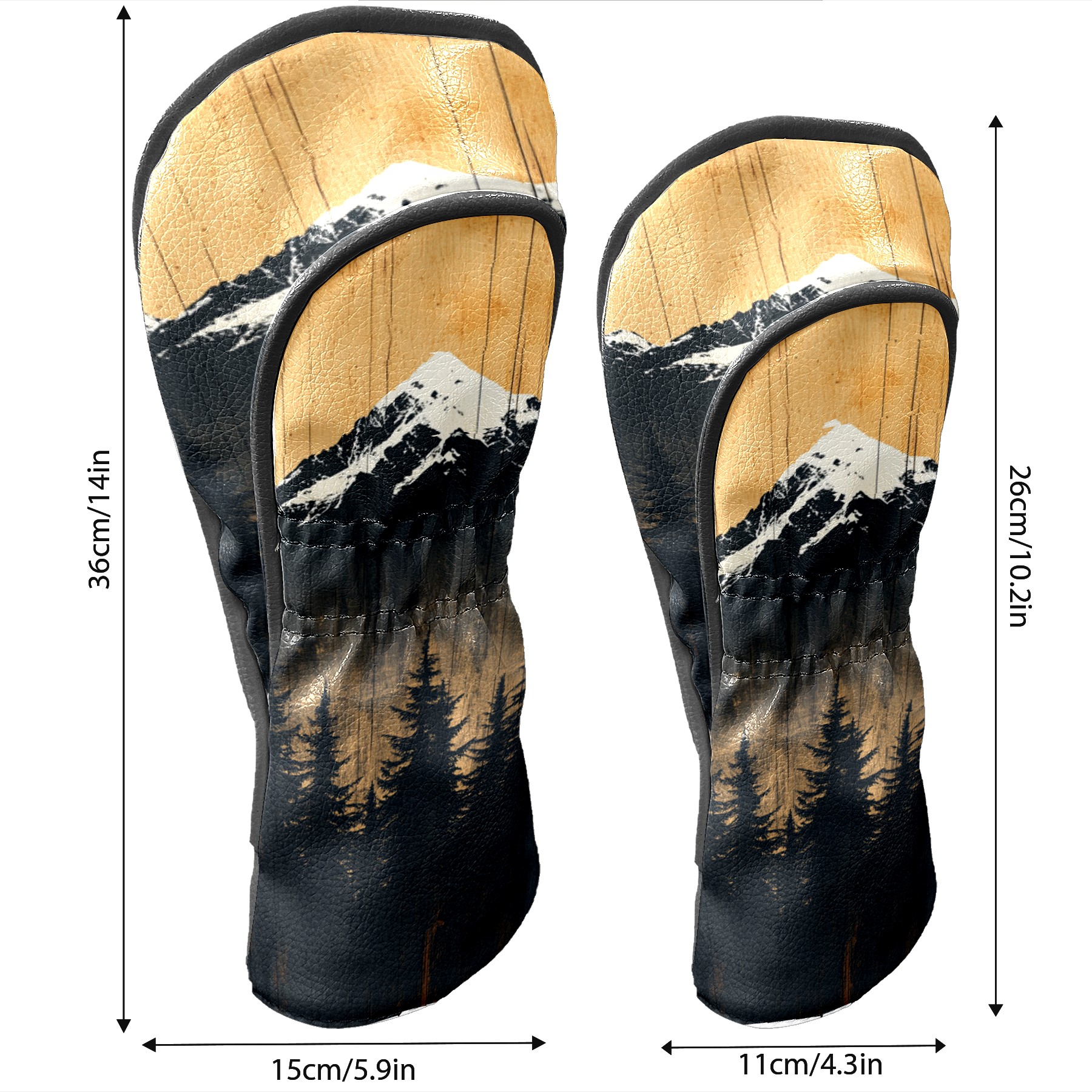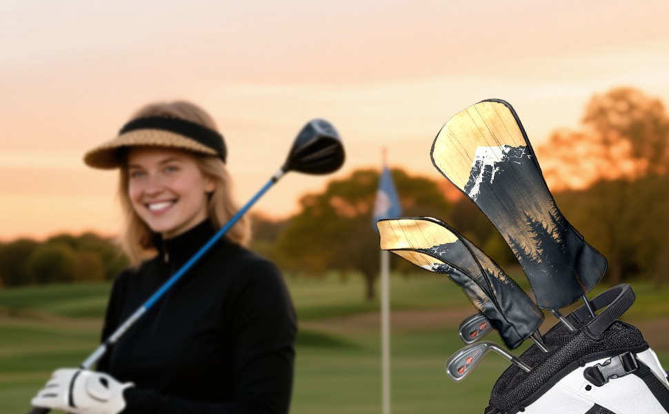 PU Leather Golf Head Covers Set – Fits Drivers/Fairway Woods/Hybrids, Ideal Gifts for Male & Female Golfers Mountain Forest Pattern