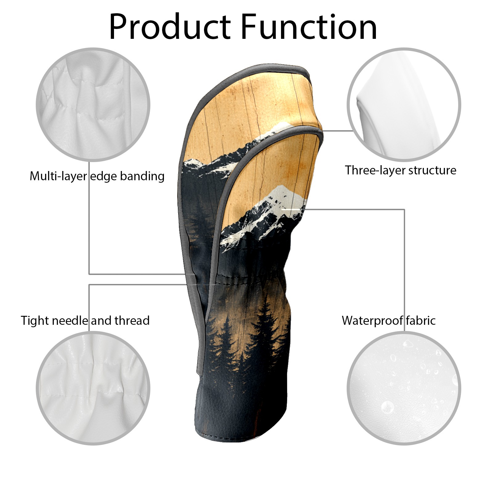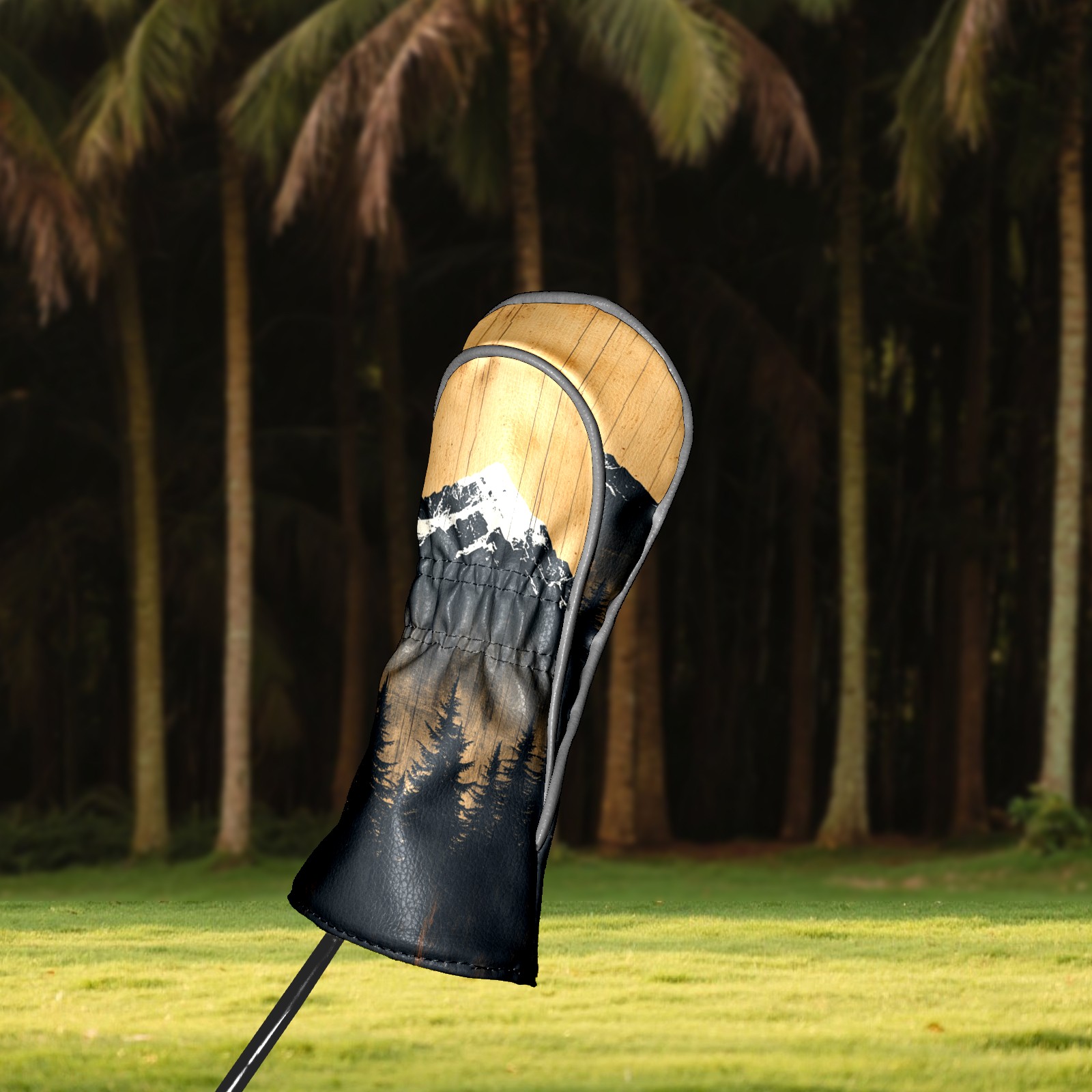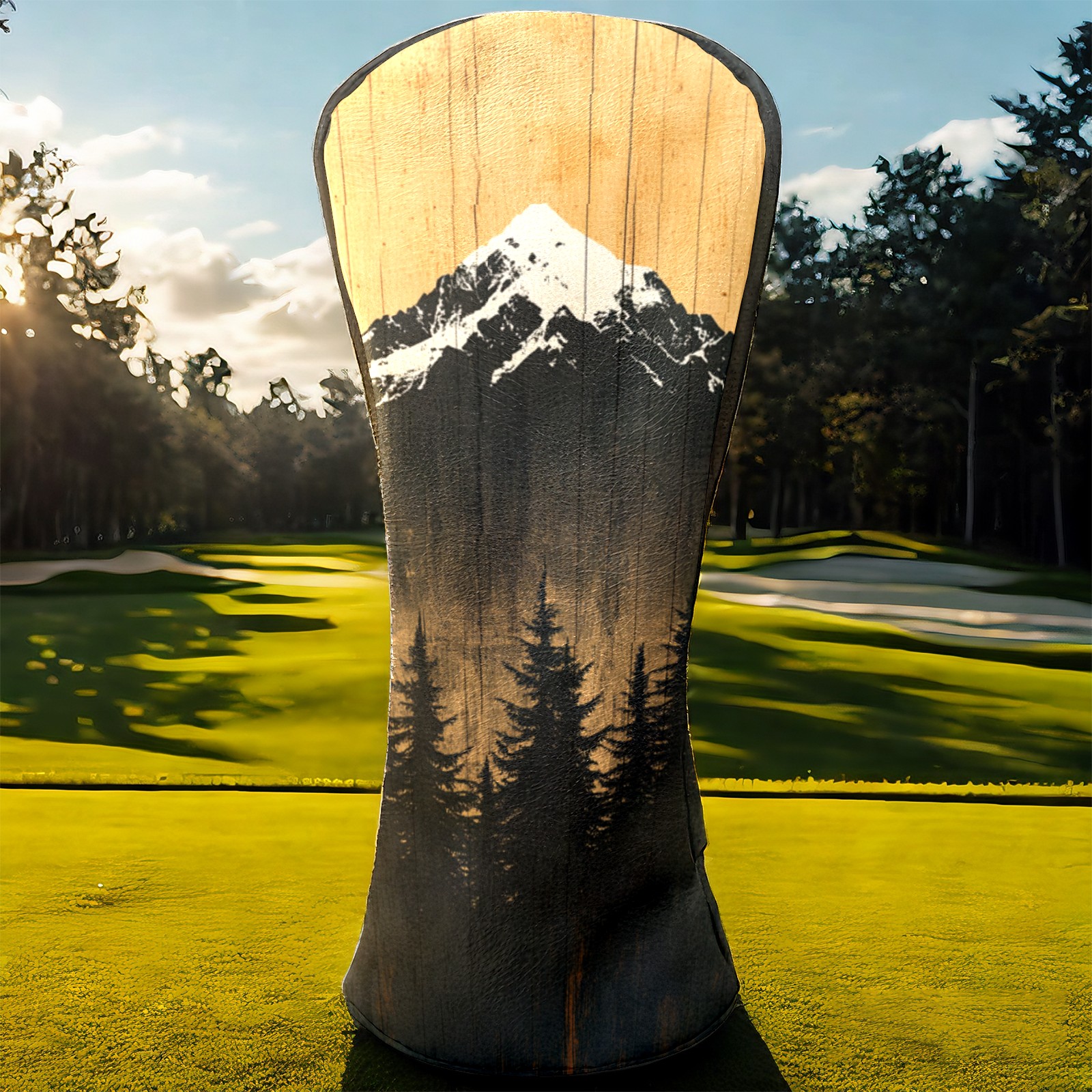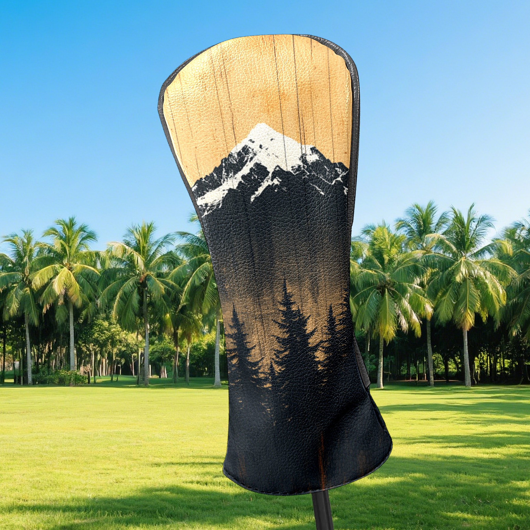 PU Leather Golf Head Covers Set – Fits Drivers/Fairway Woods/Hybrids, Ideal Gifts for Male & Female Golfers Mountain Forest Pattern