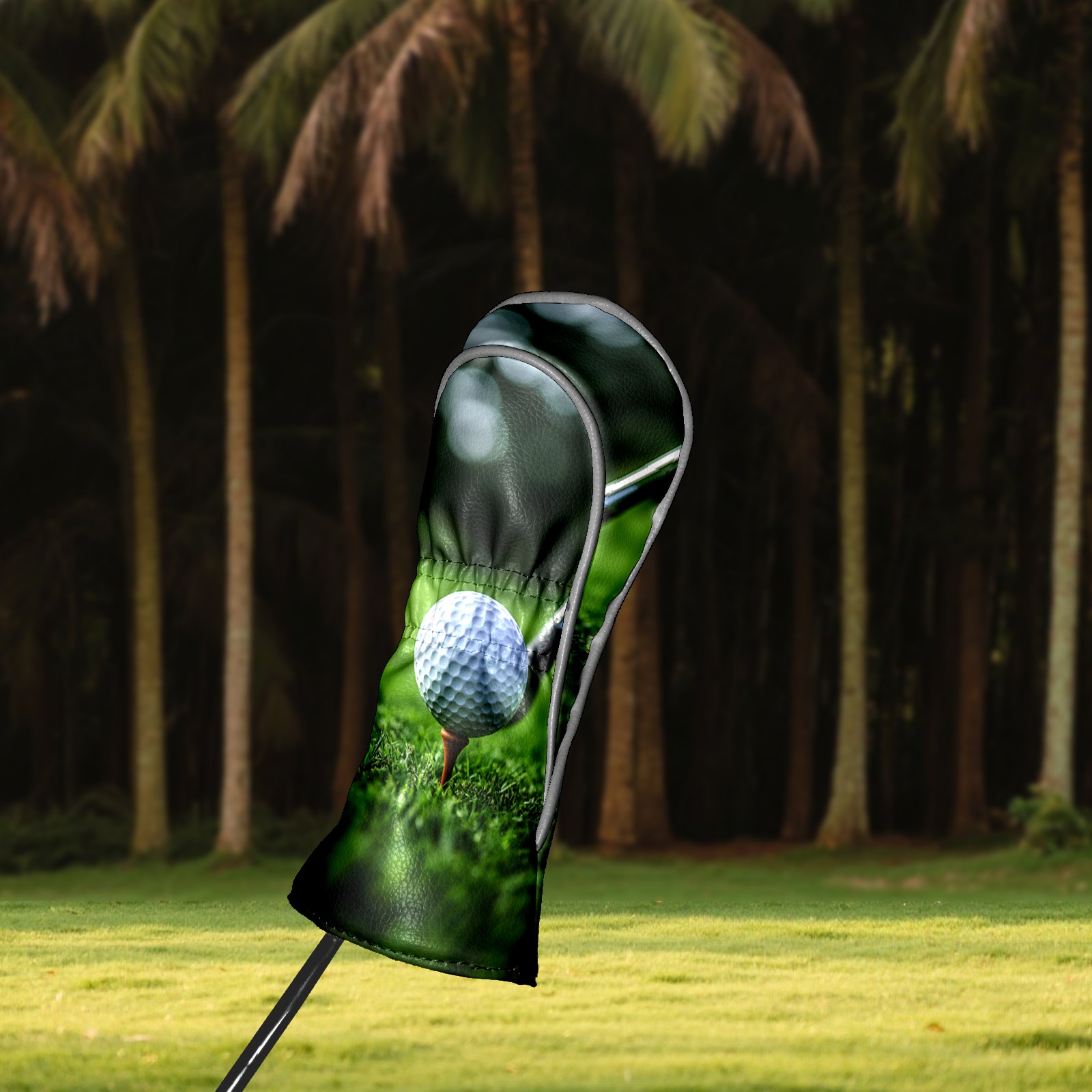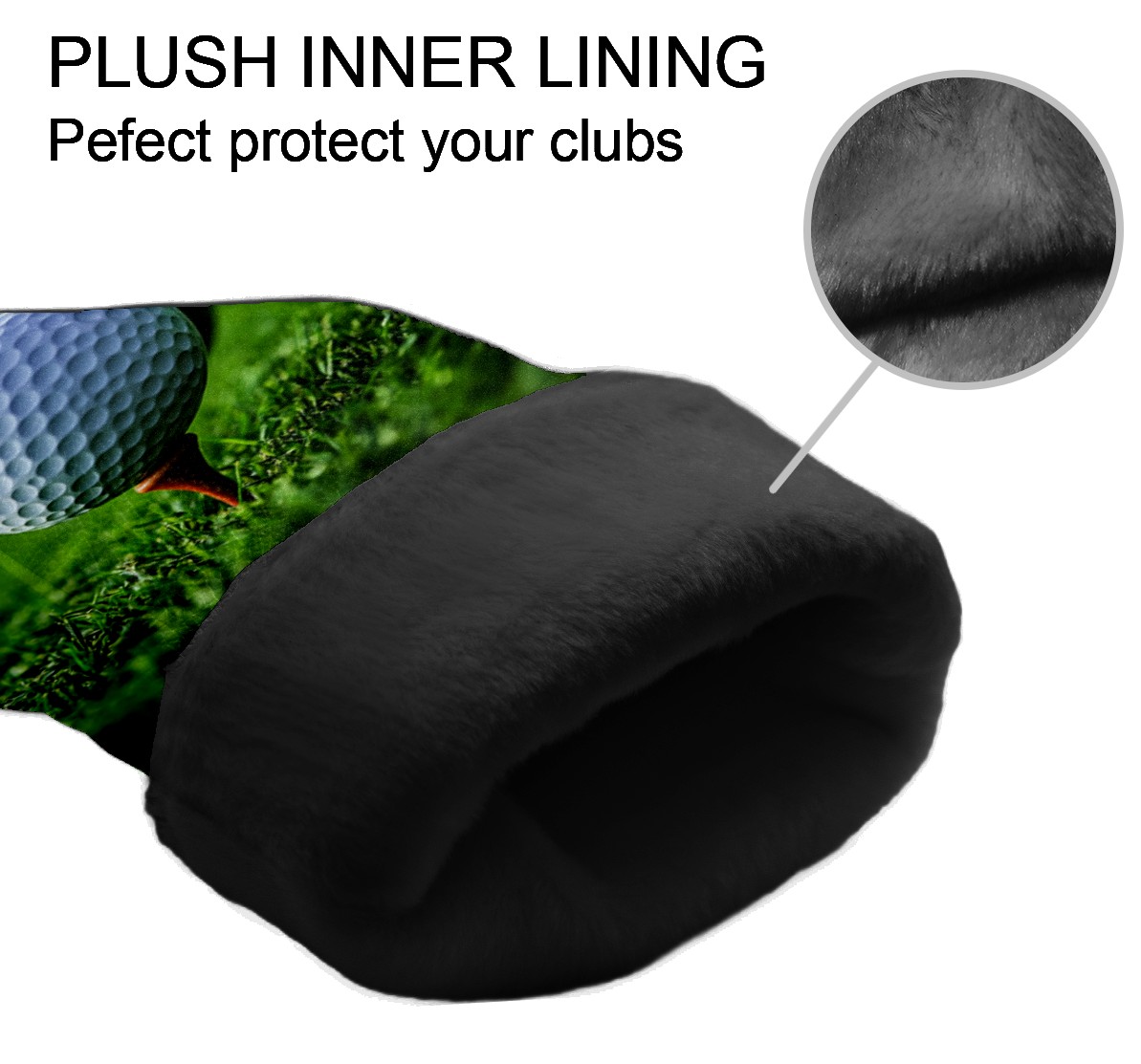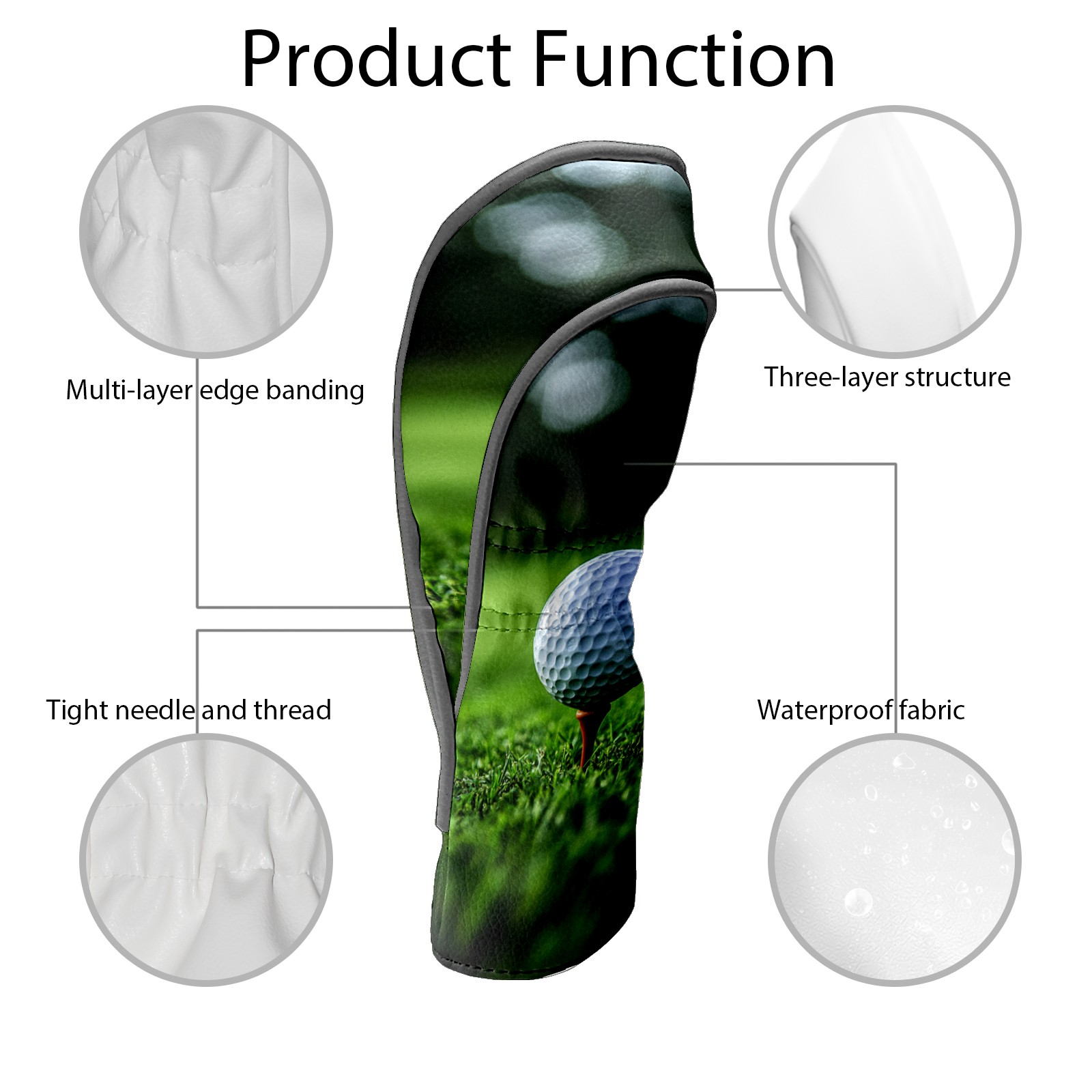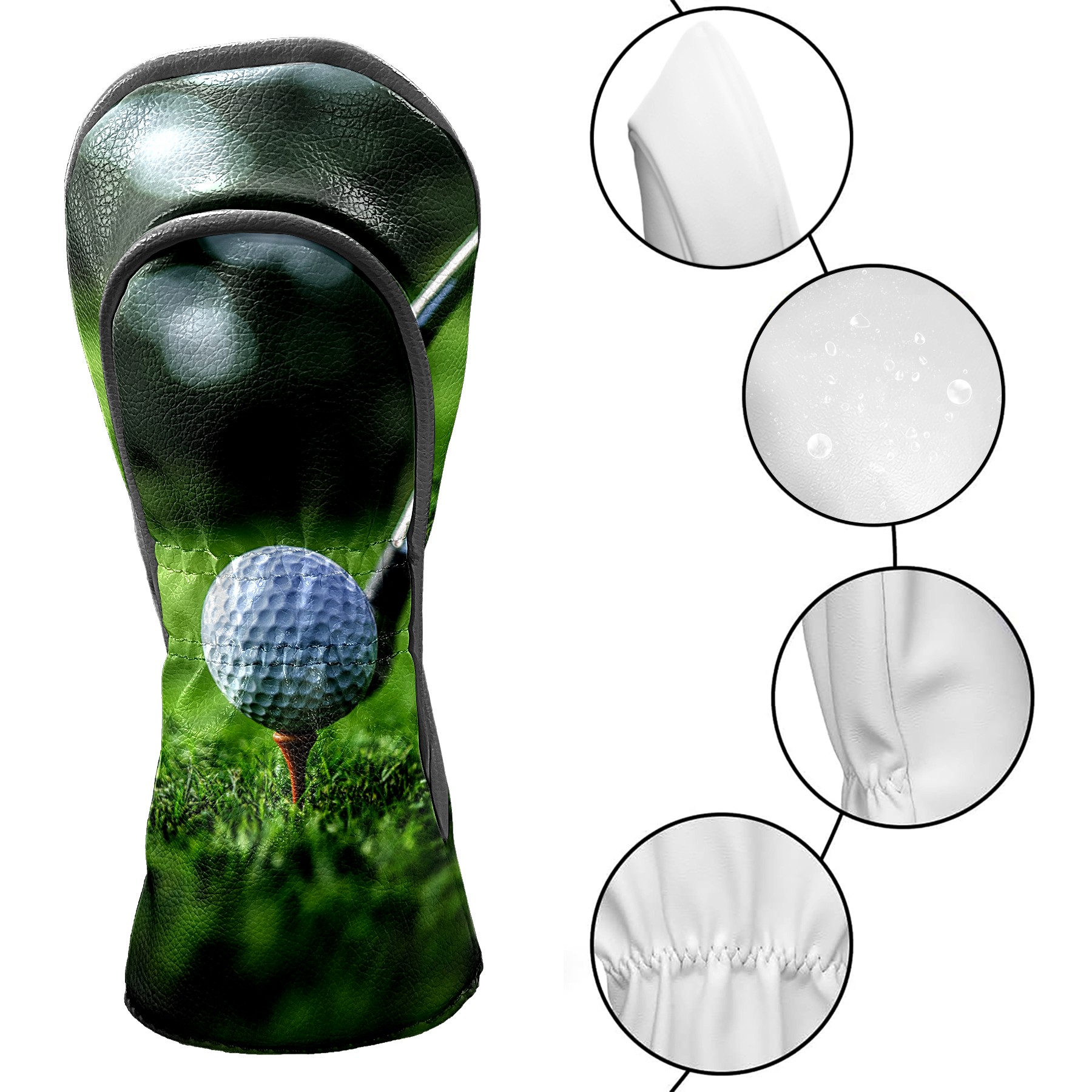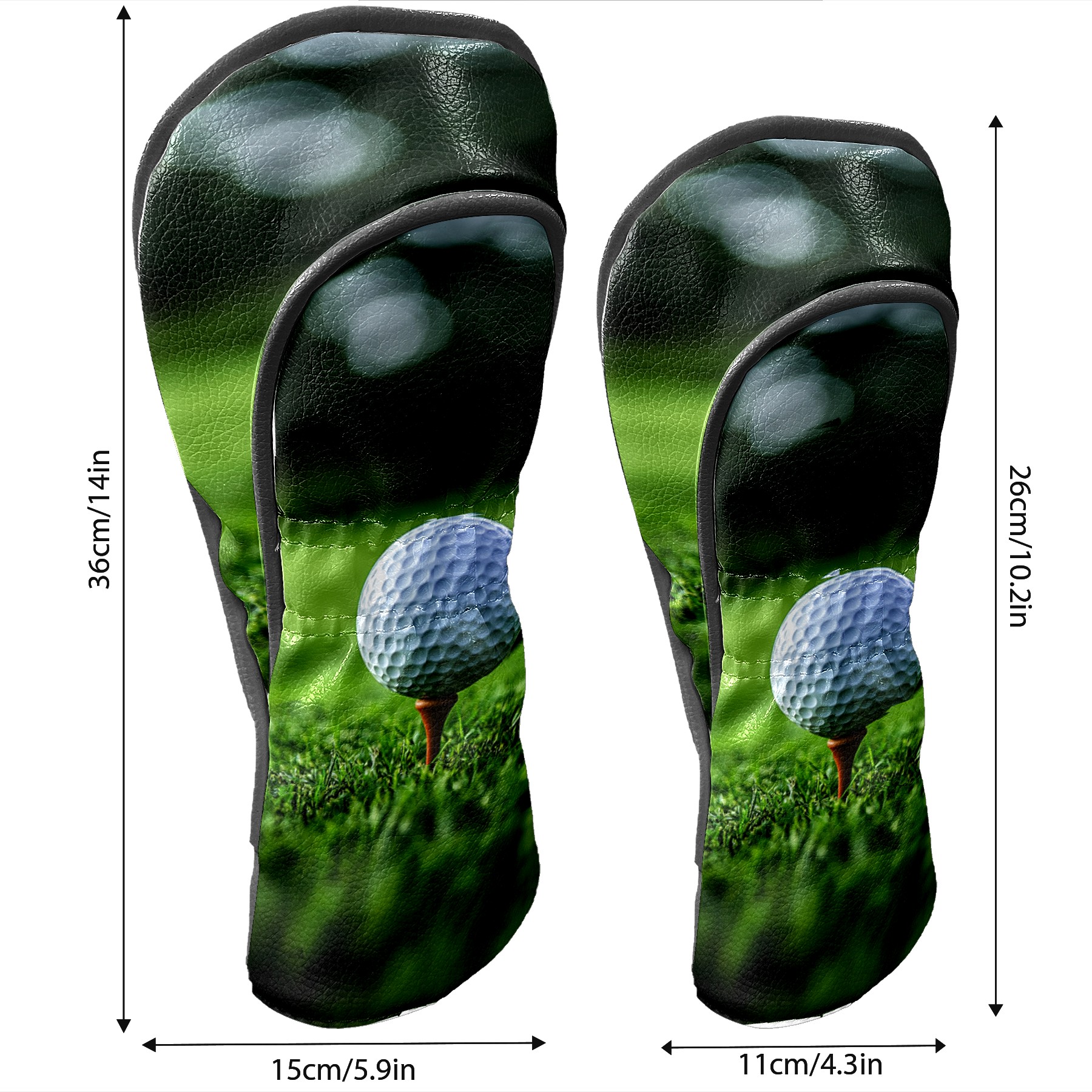 PU Leather Golf Head Covers Set – Fits Drivers/Fairway Woods/Hybrids, Ideal Gifts for Male & Female Golfers Golf Ball Pattern