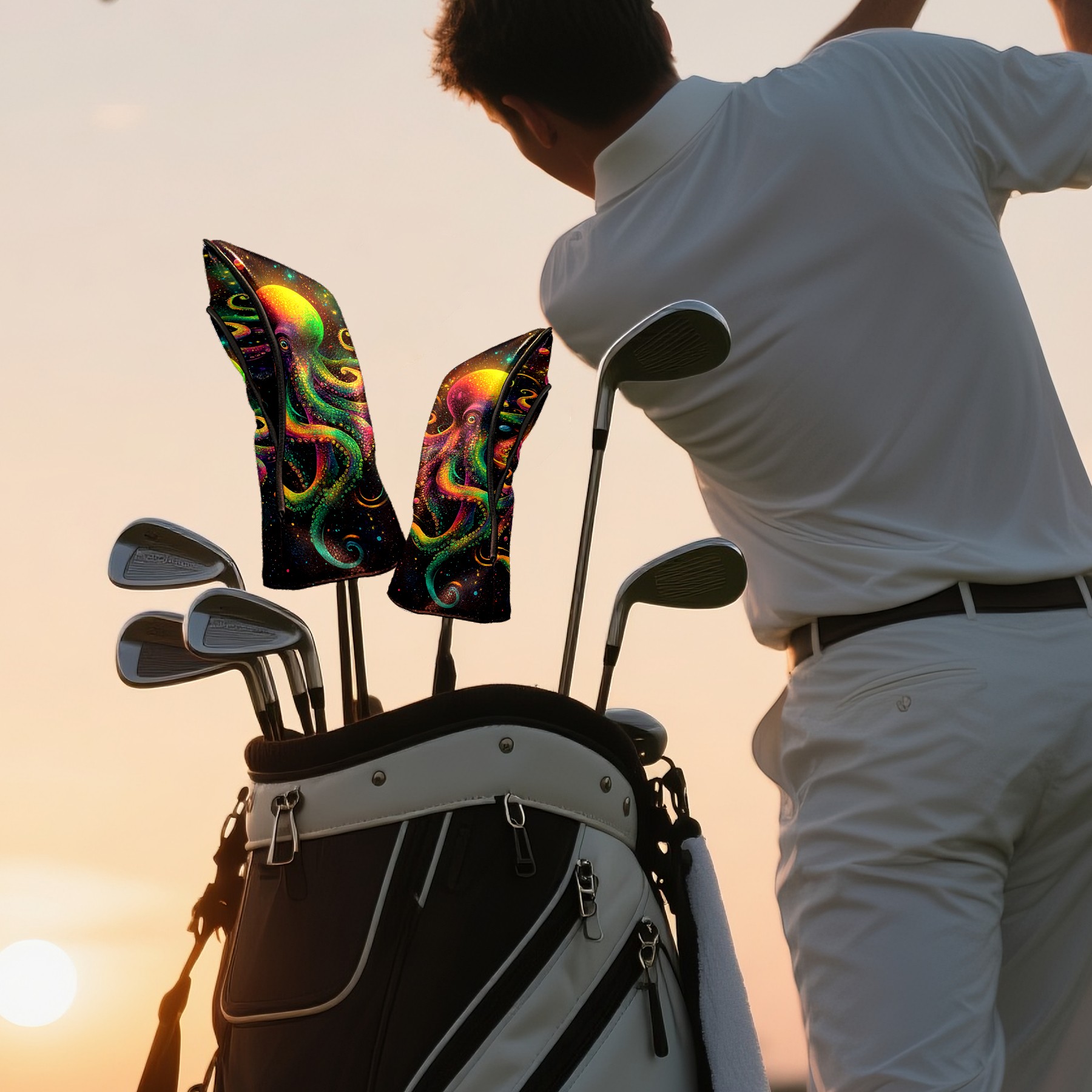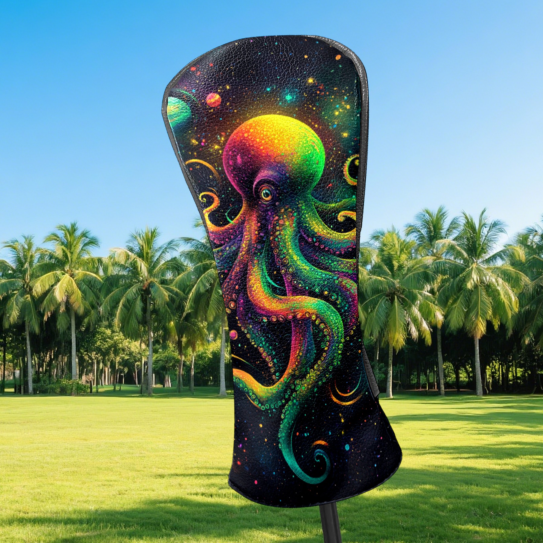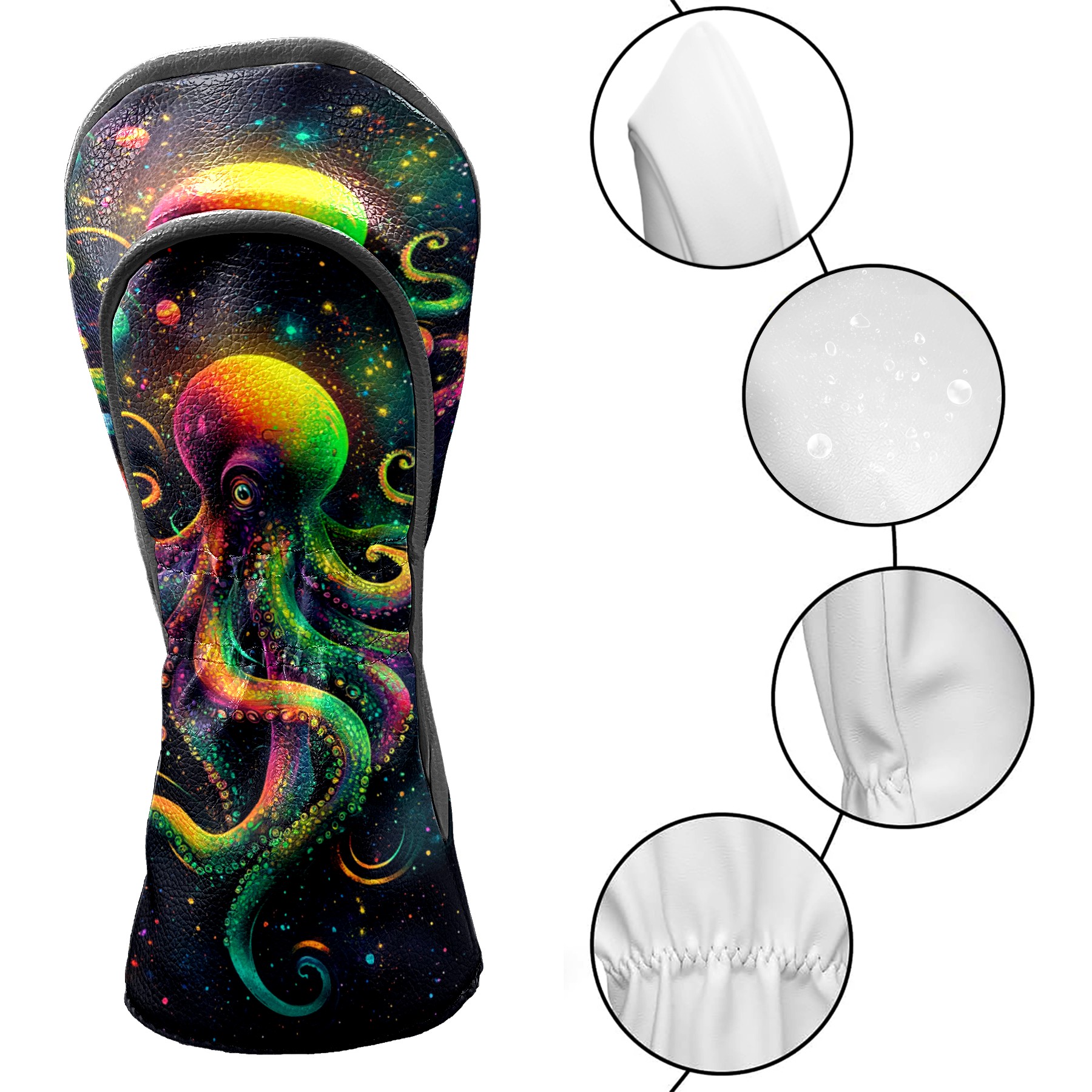 PU Leather Golf Head Covers Set – Fits Drivers/Fairway Woods/Hybrids, Ideal Gifts for Male & Female Golfers Green Octopus Pattern