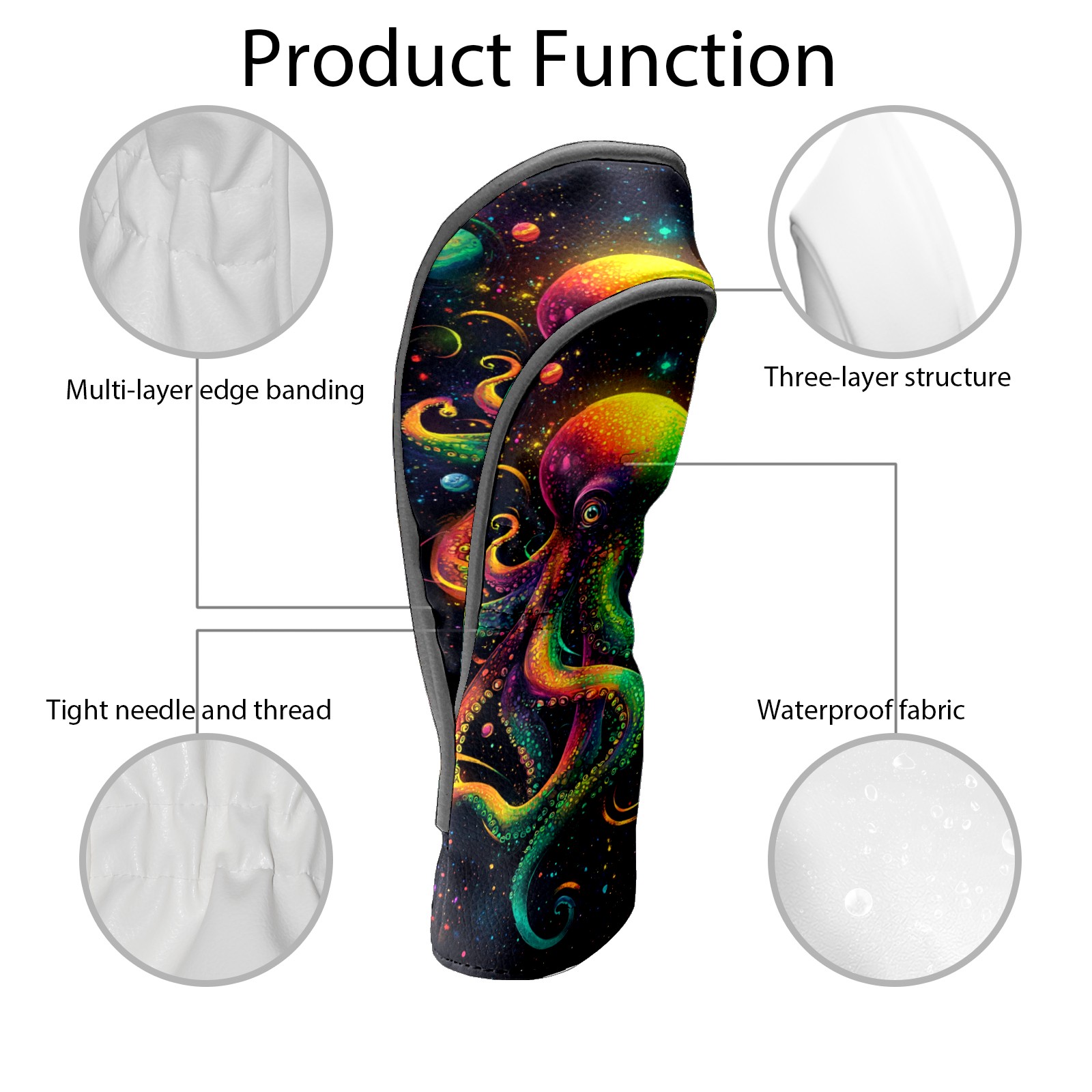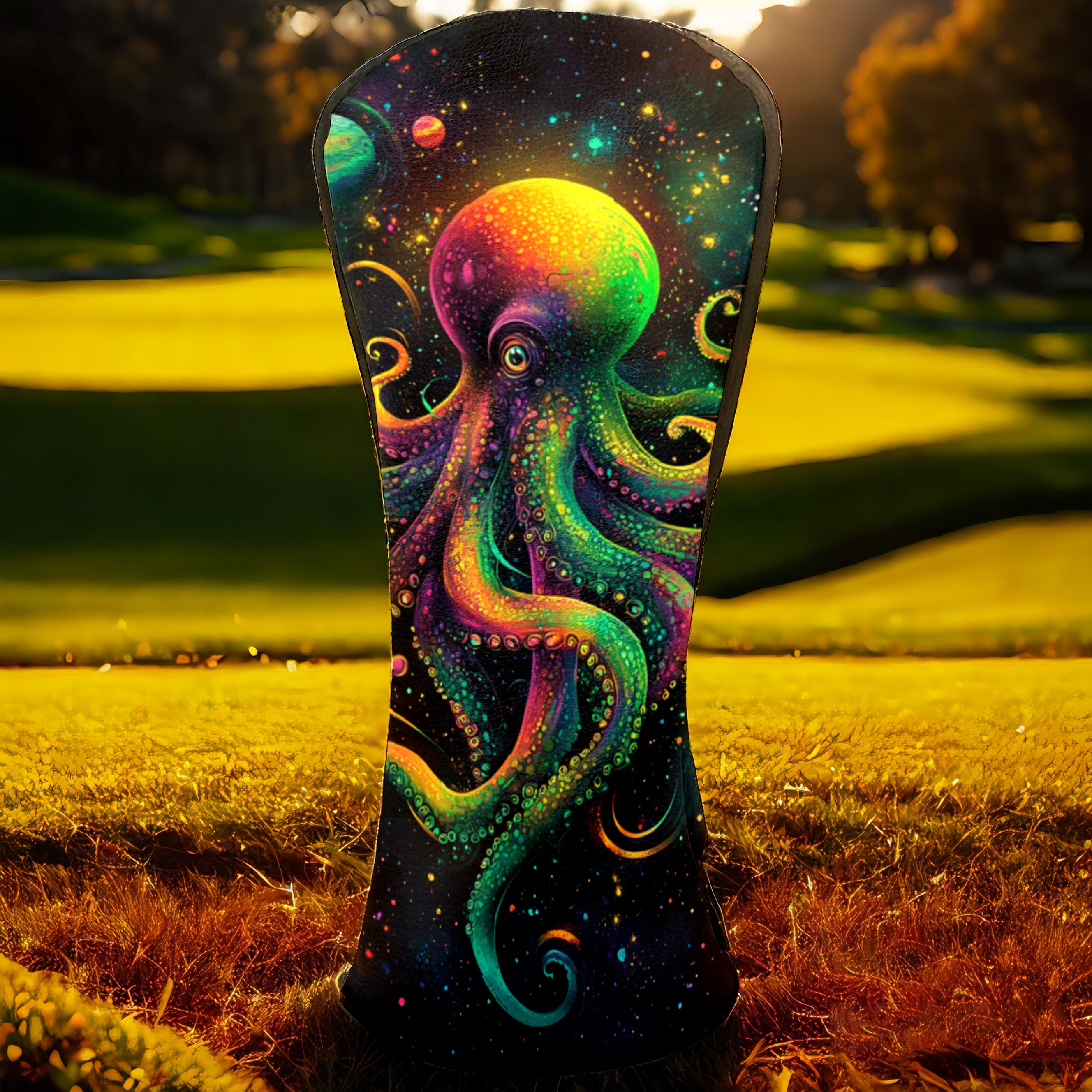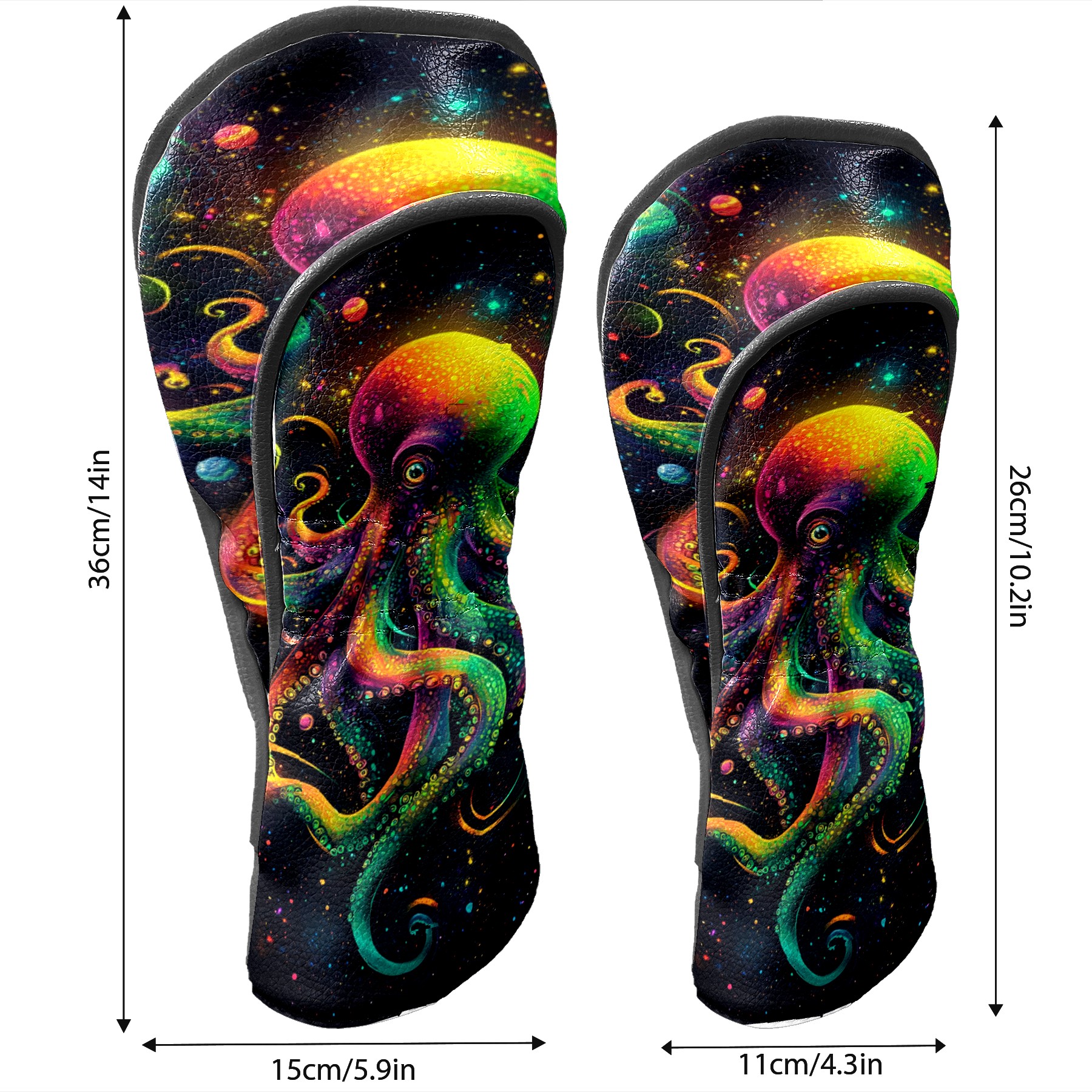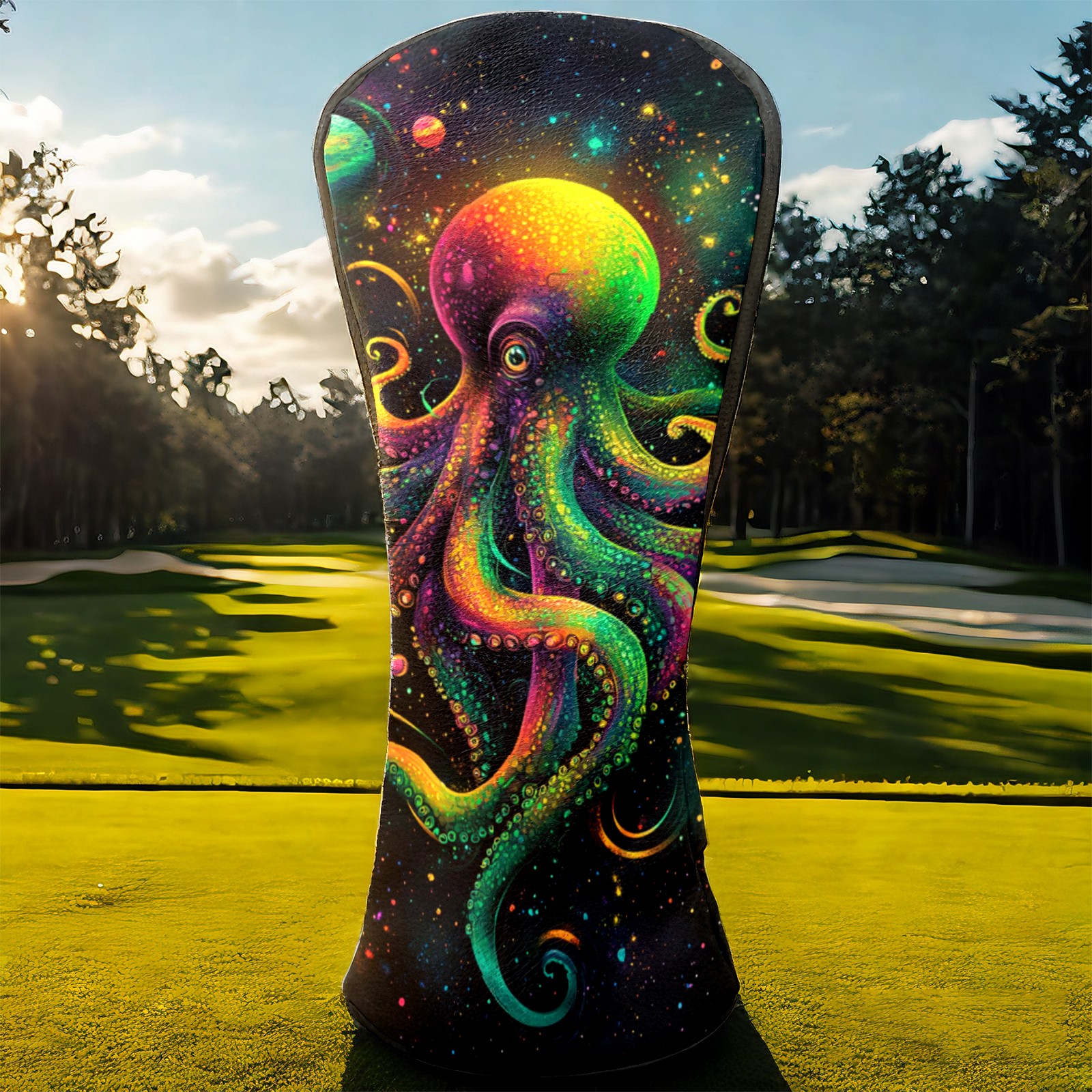 PU Leather Golf Head Covers Set – Fits Drivers/Fairway Woods/Hybrids, Ideal Gifts for Male & Female Golfers Green Octopus Pattern