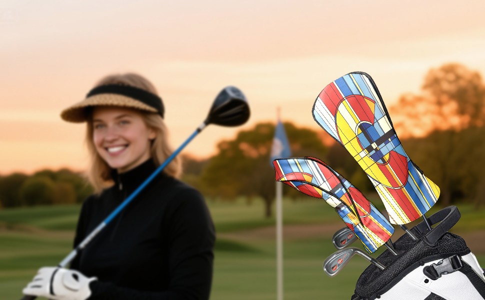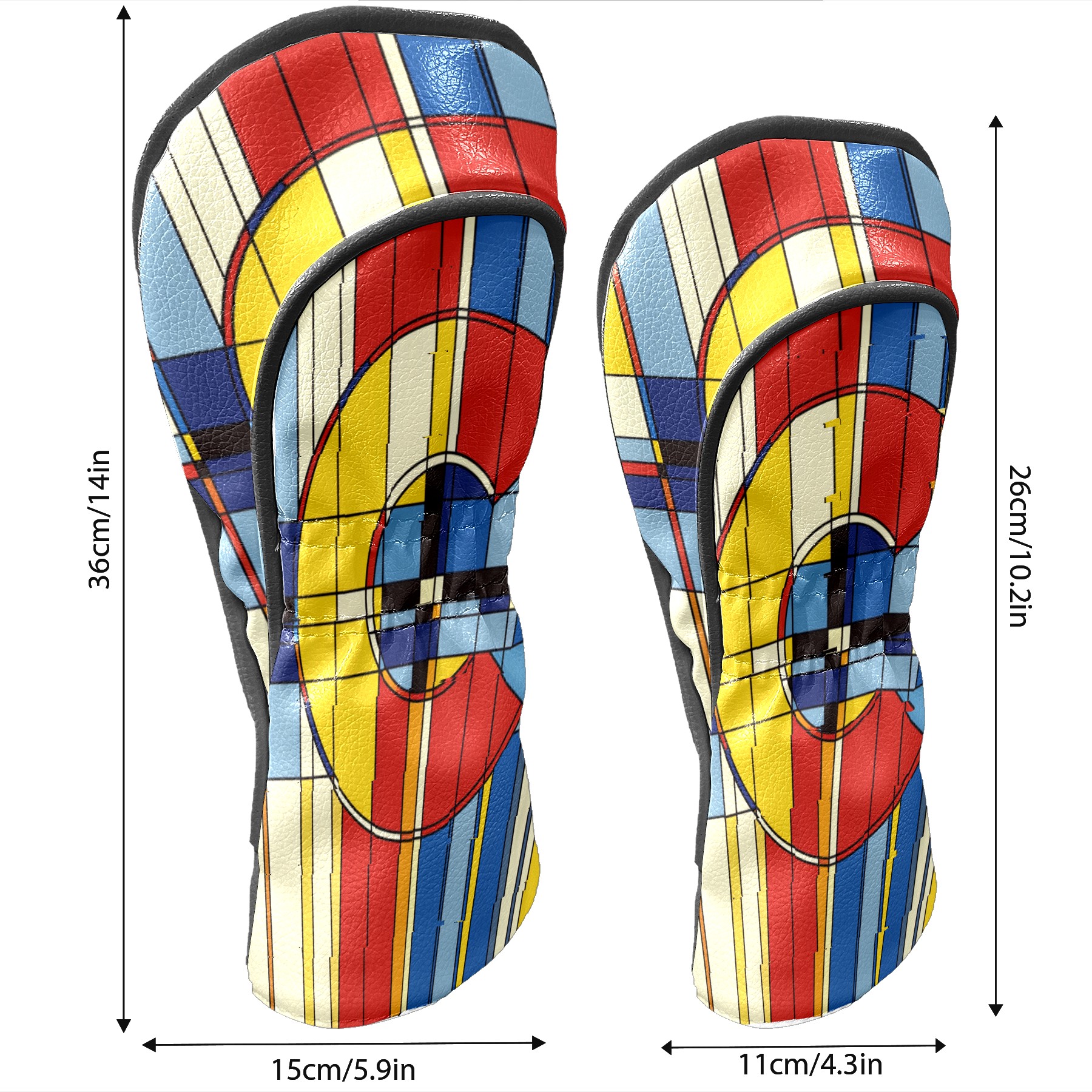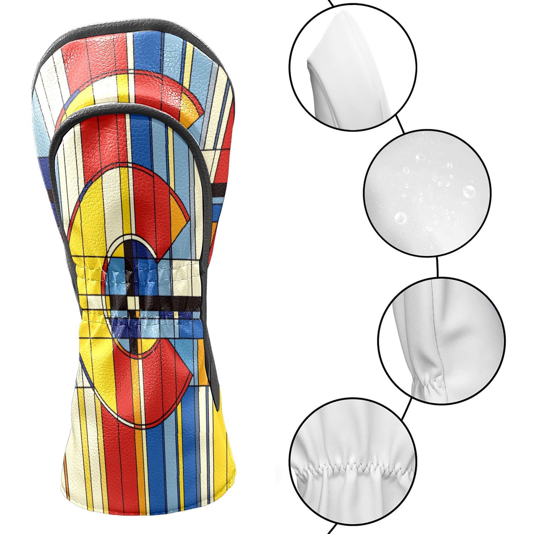 PU Leather Golf Head Covers Set – Fits Drivers/Fairway Woods/Hybrids, Ideal Gifts for Male & Female Golfers Colorful pattern