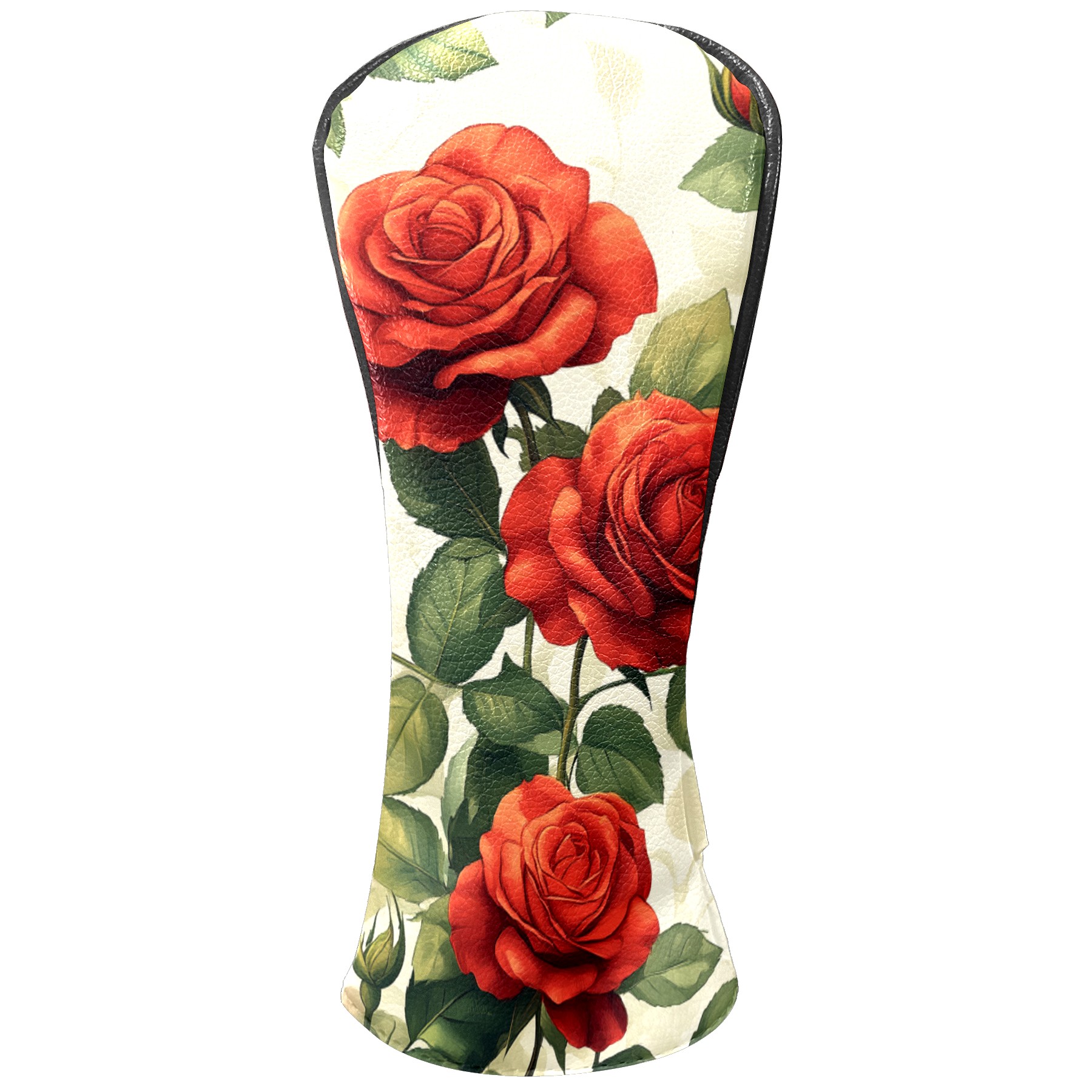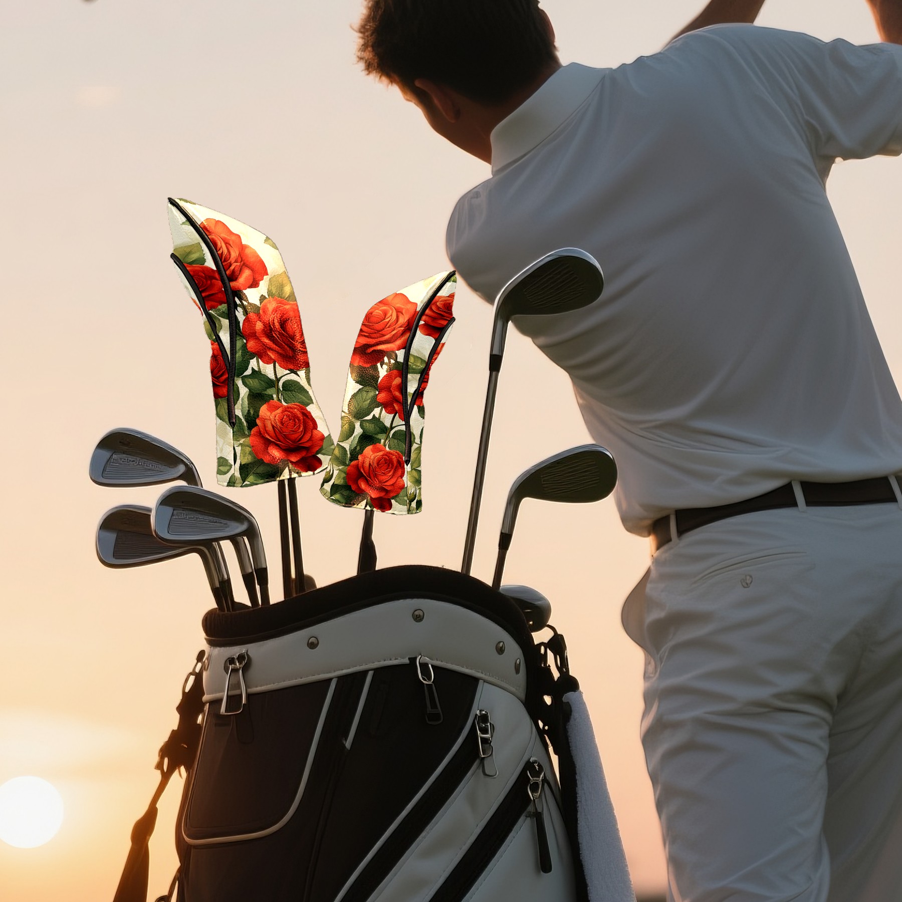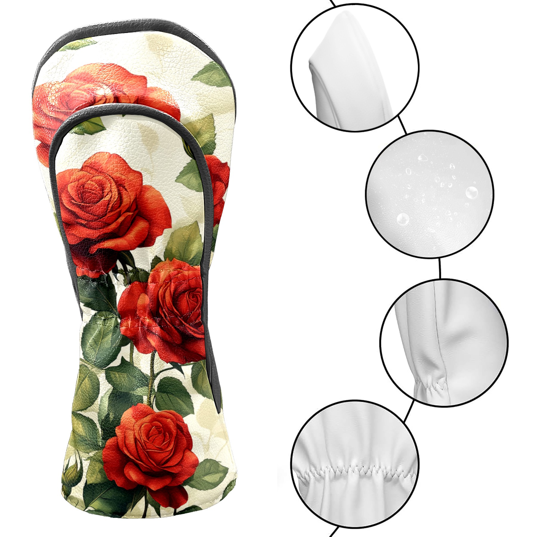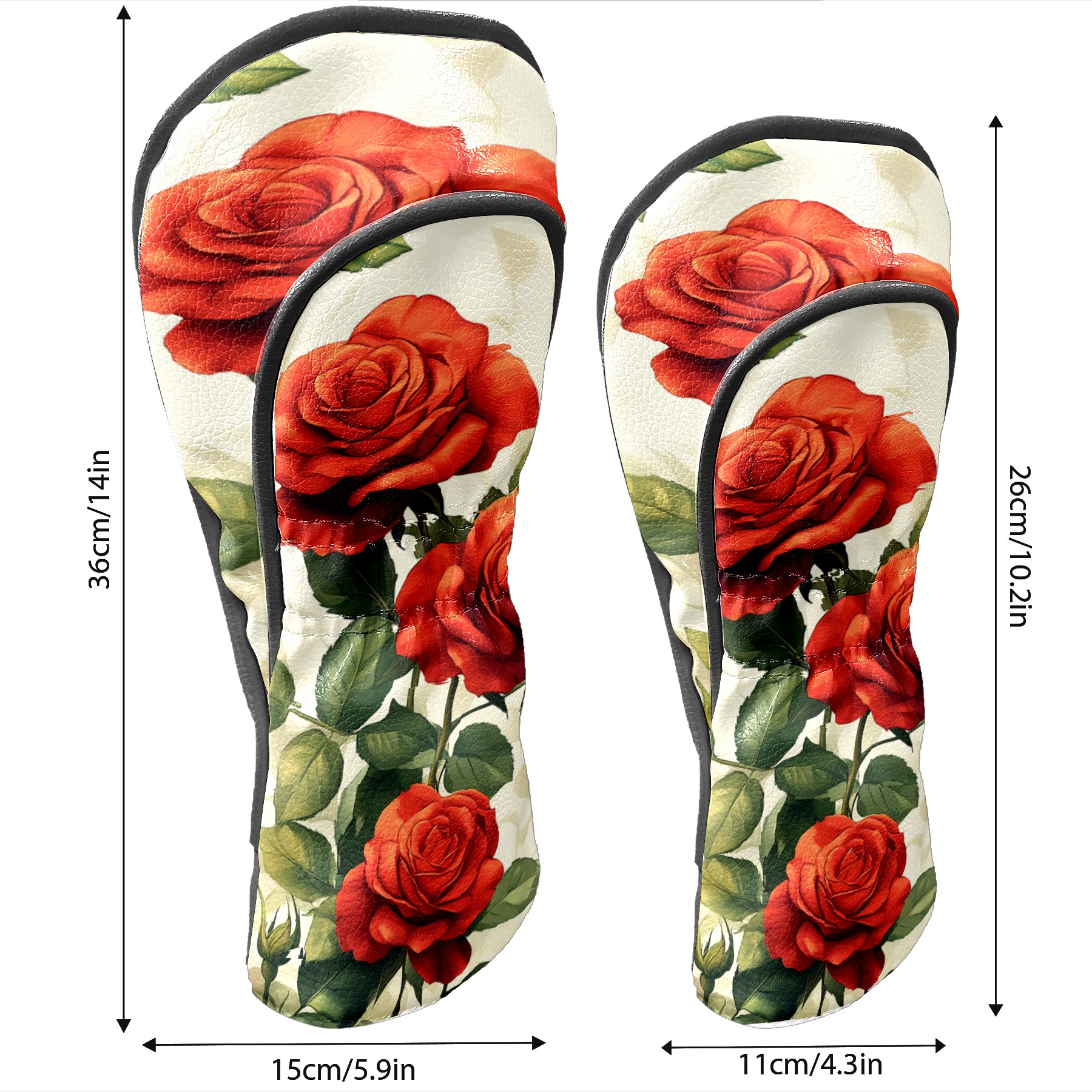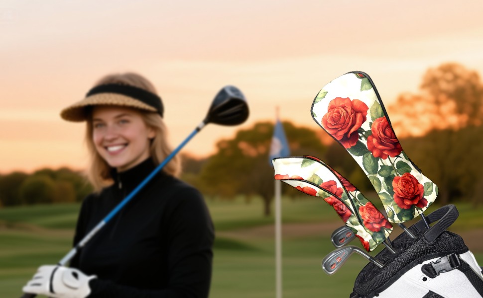 PU Leather Golf Head Covers Set – Fits Drivers/Fairway Woods/Hybrids, Ideal Gifts for Male & Female Golfers Red Rose Pattern