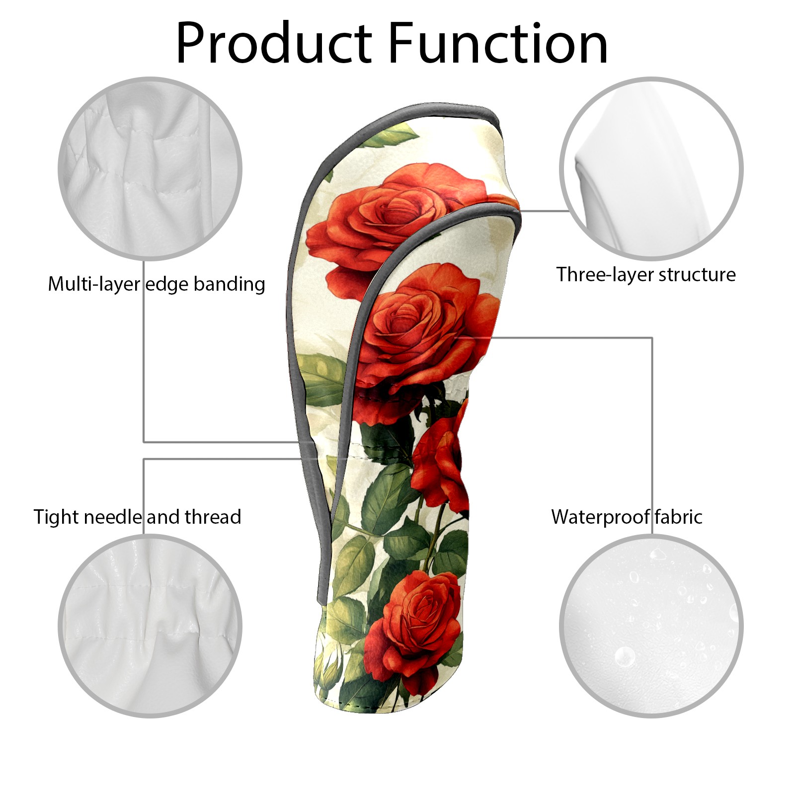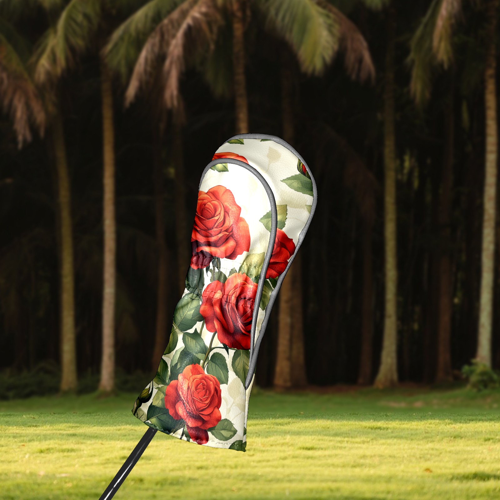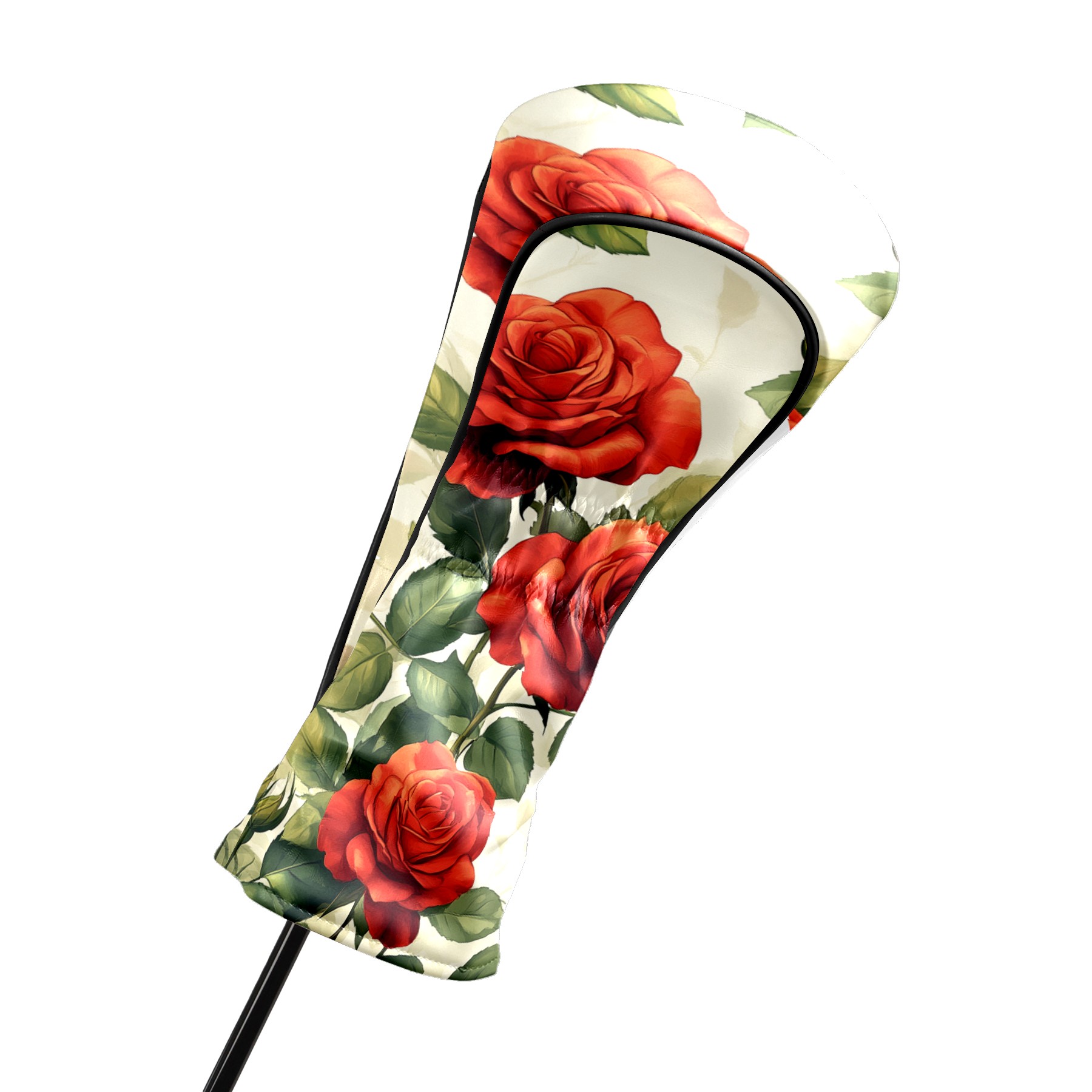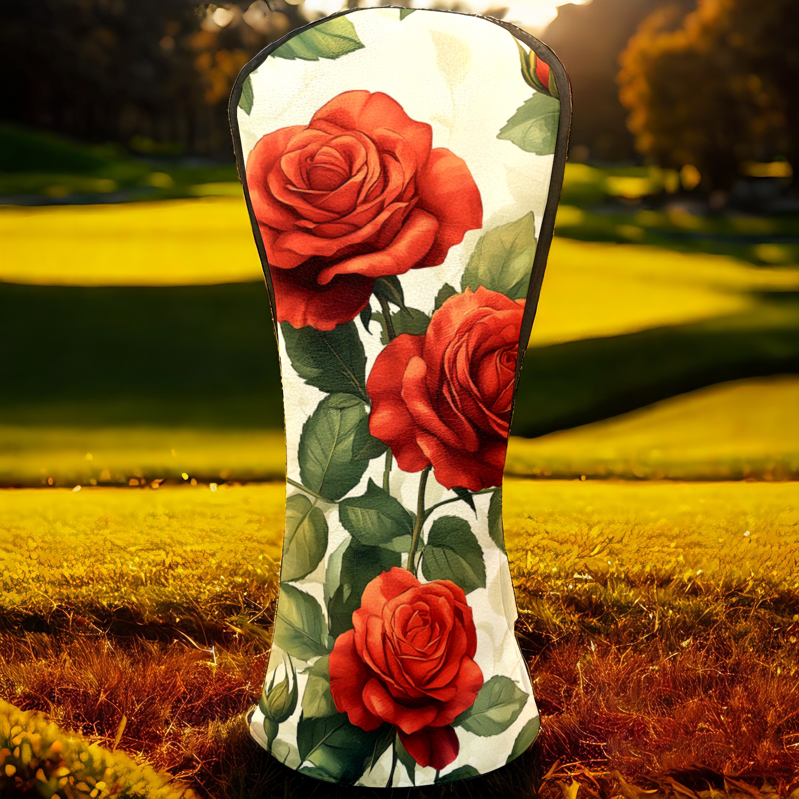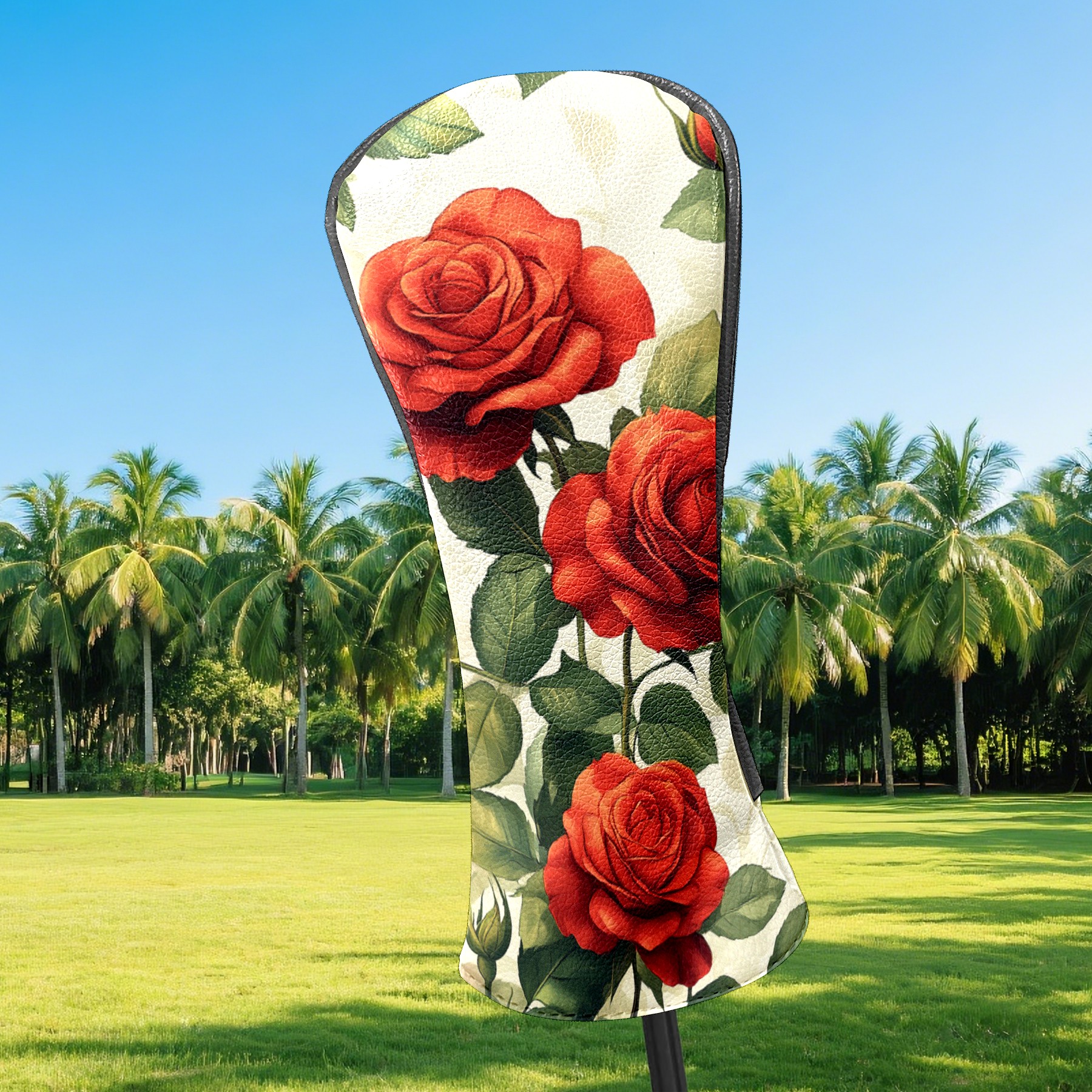 PU Leather Golf Head Covers Set – Fits Drivers/Fairway Woods/Hybrids, Ideal Gifts for Male & Female Golfers Red Rose Pattern