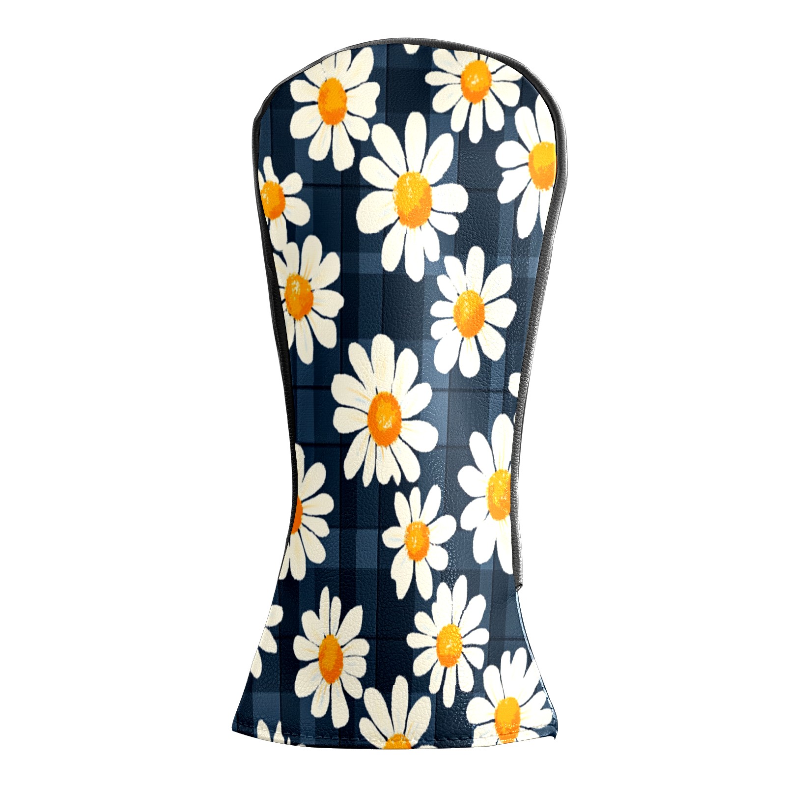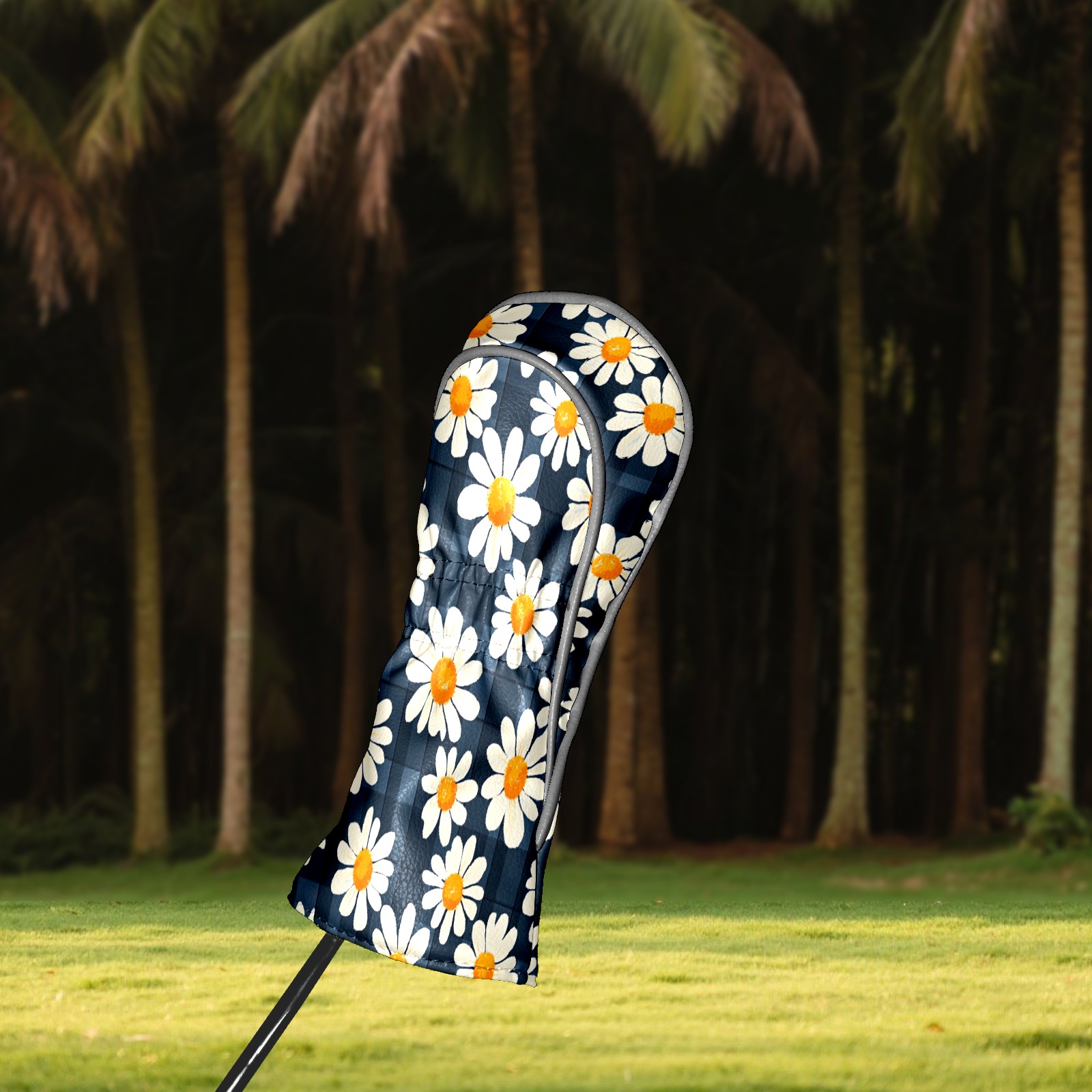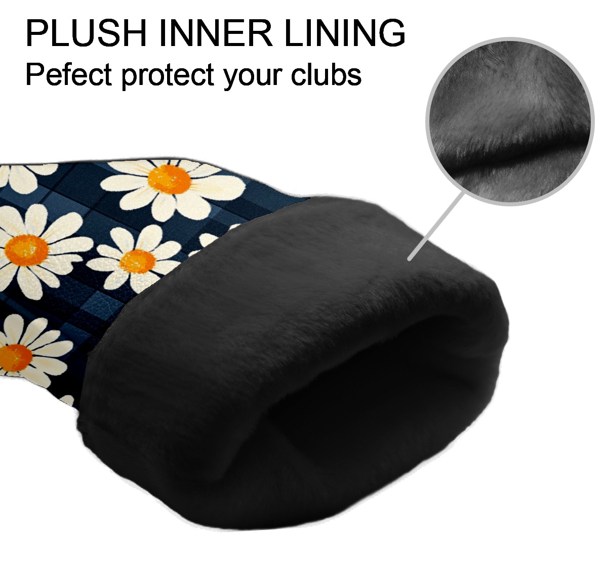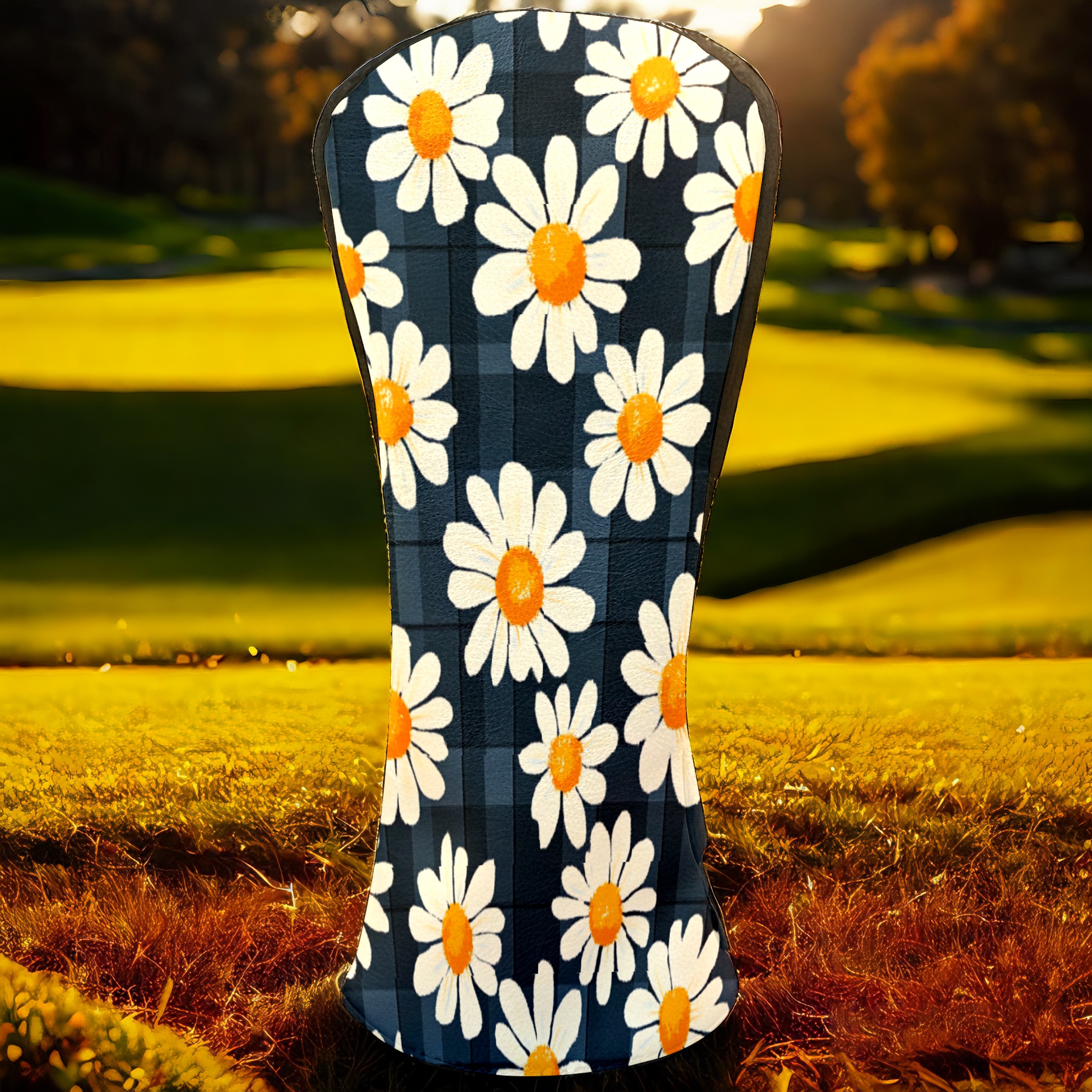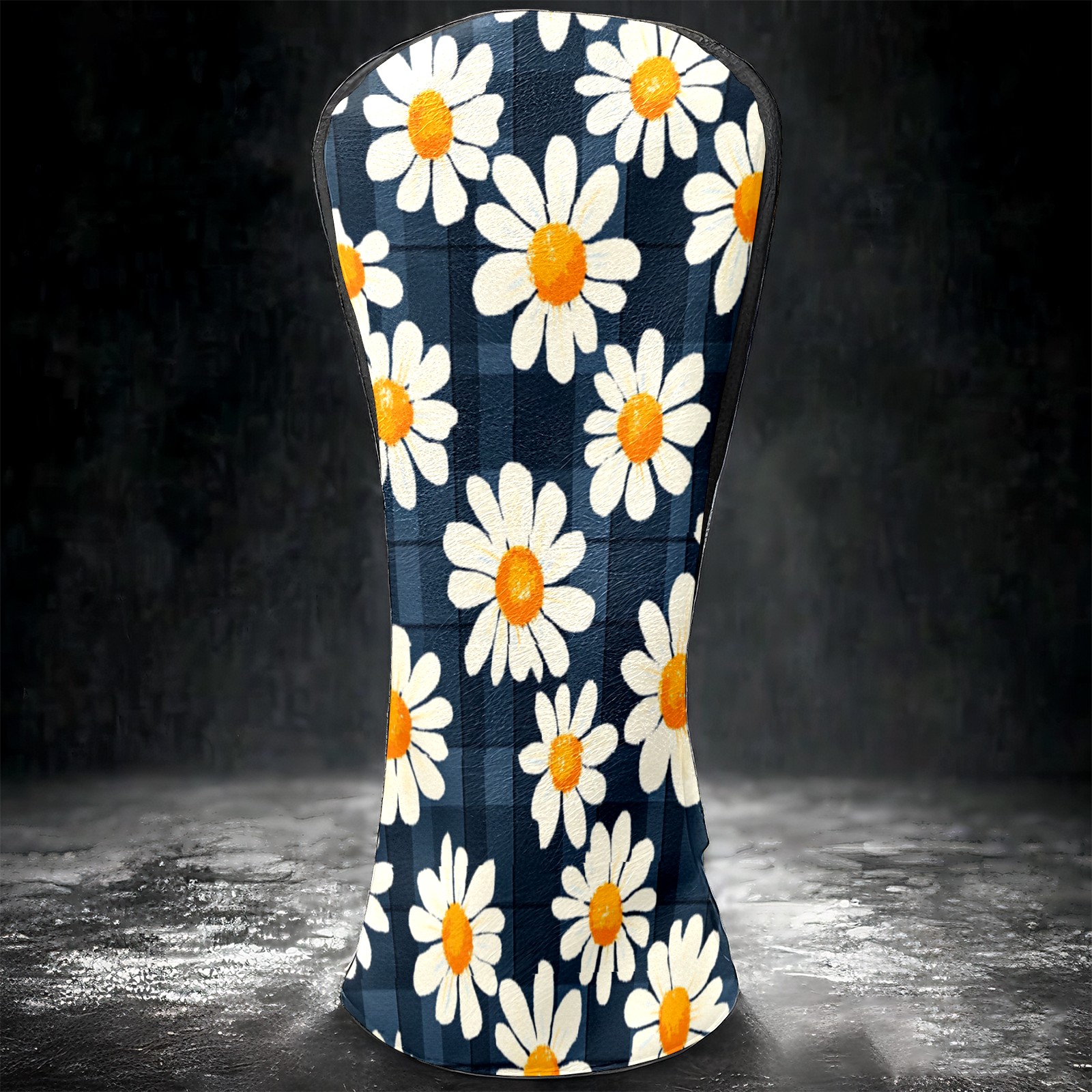 PU Leather Golf Head Covers Set – Fits Drivers/Fairway Woods/Hybrids, Ideal Gifts for Male & Female Golfers Retro Daisies Checkered Pattern