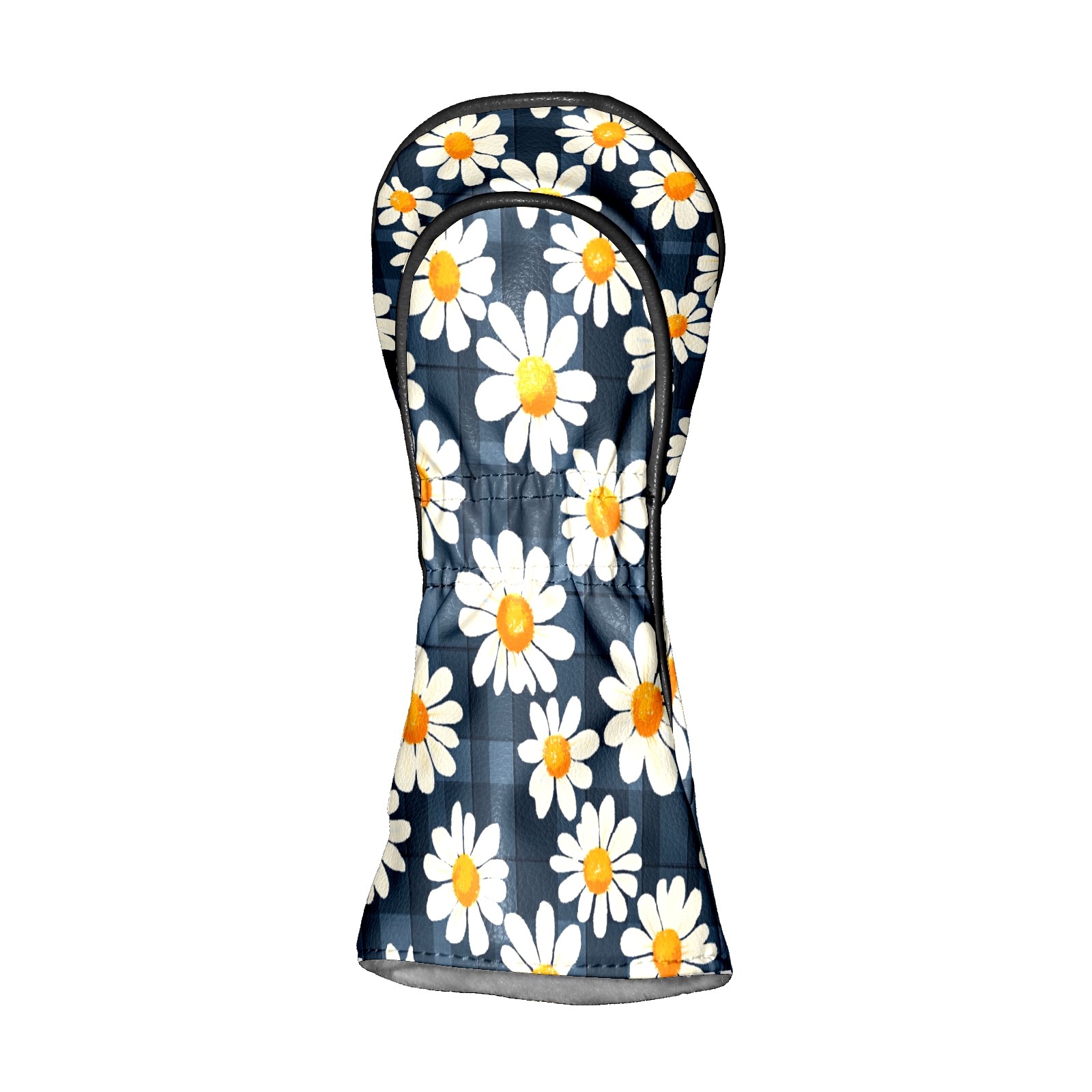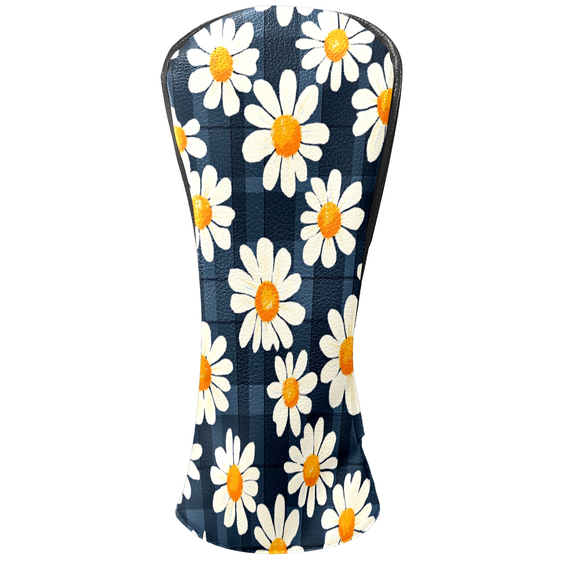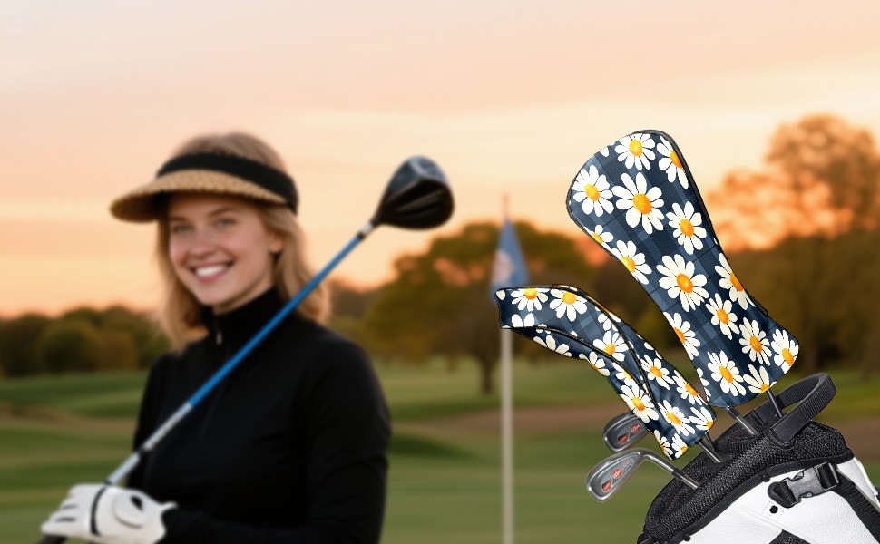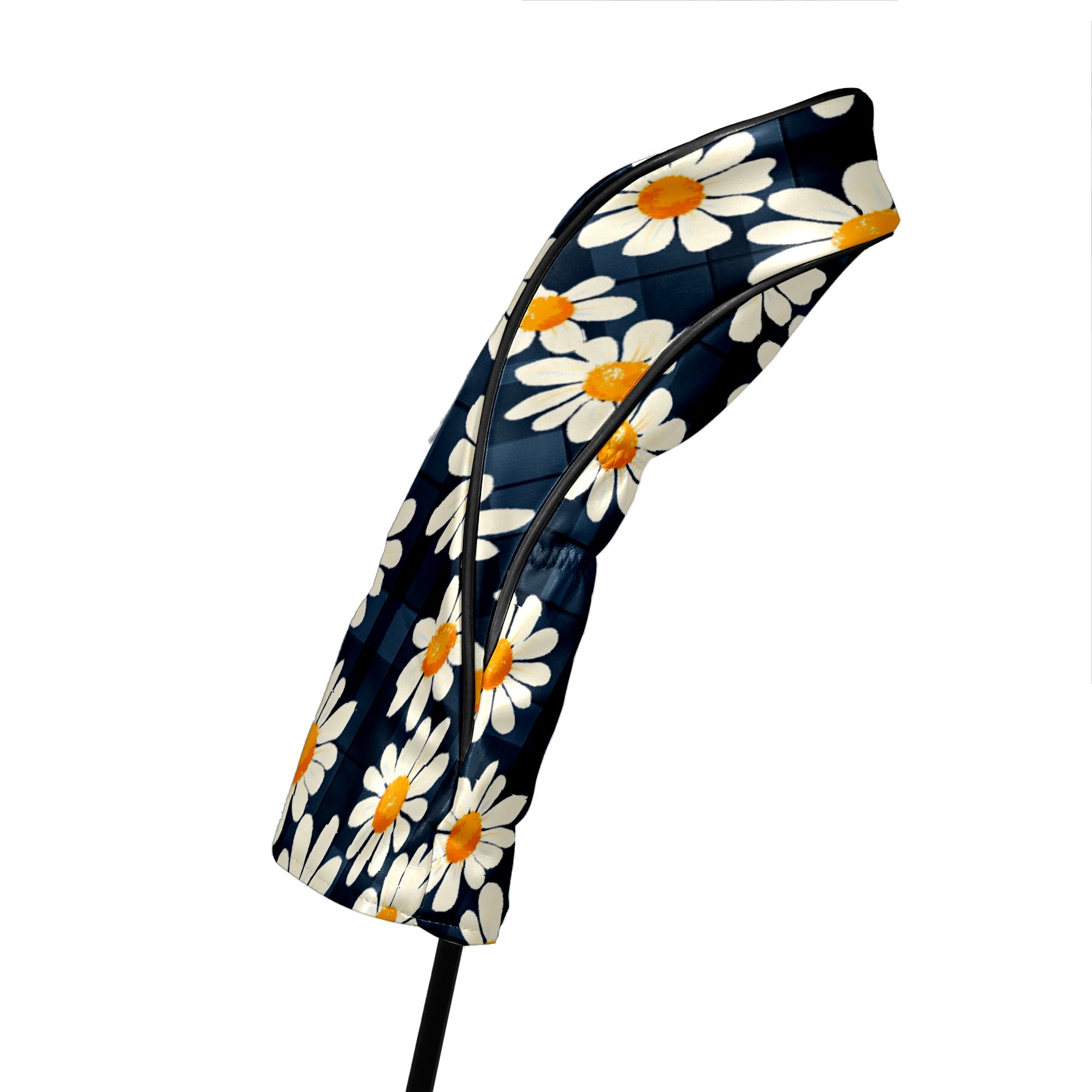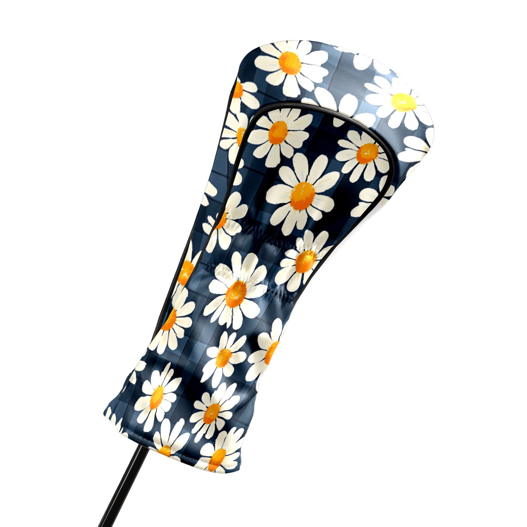 PU Leather Golf Head Covers Set – Fits Drivers/Fairway Woods/Hybrids, Ideal Gifts for Male & Female Golfers Retro Daisies Checkered Pattern