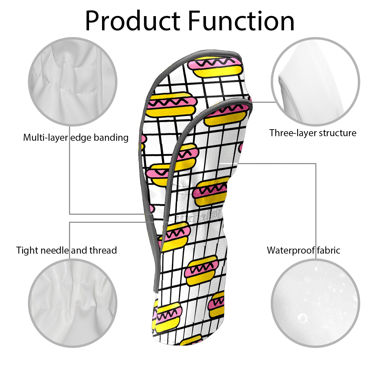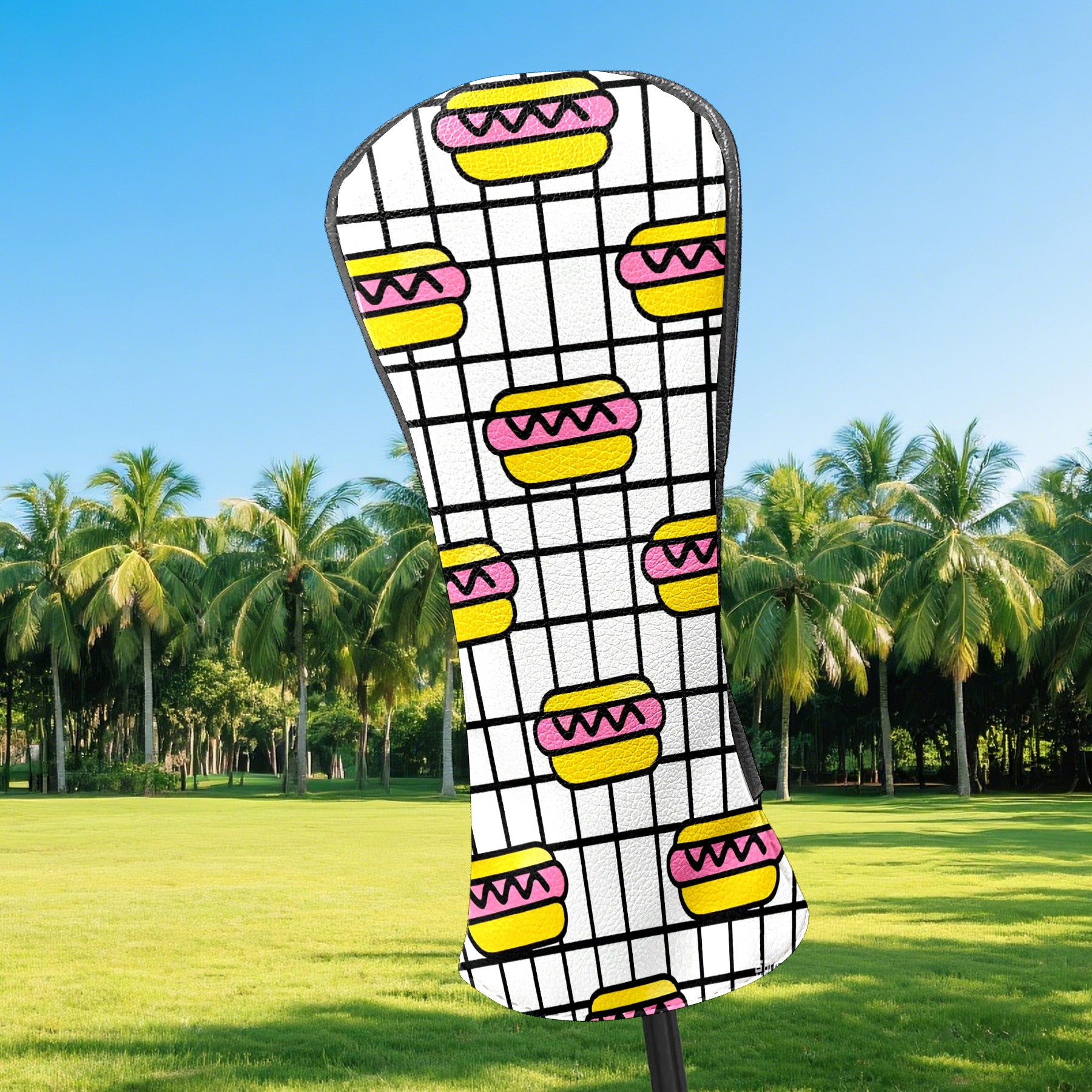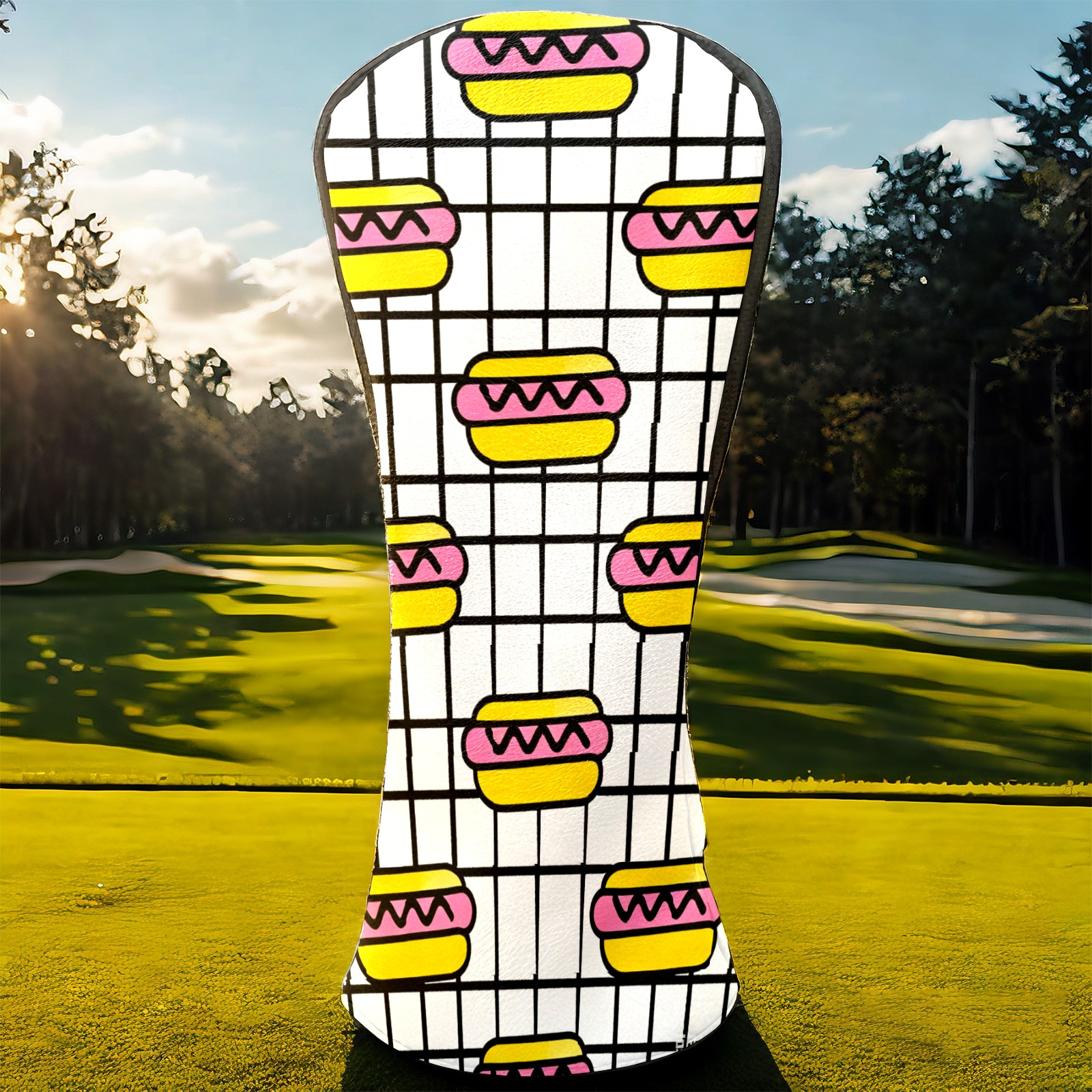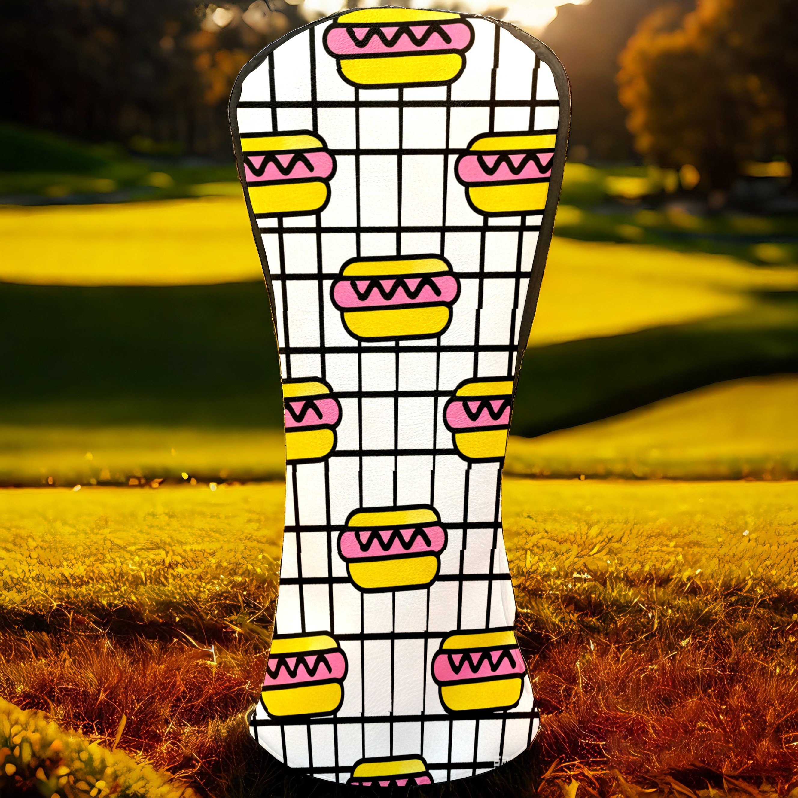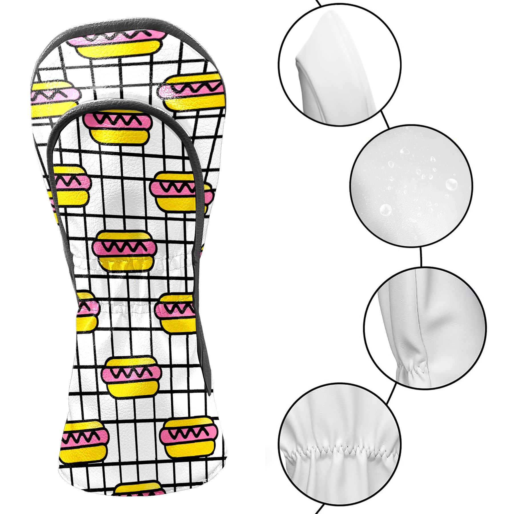 PU Leather Golf Head Covers Set – Fits Drivers/Fairway Woods/Hybrids, Ideal Gifts for Male & Female Golfers Hot Dog Pattern