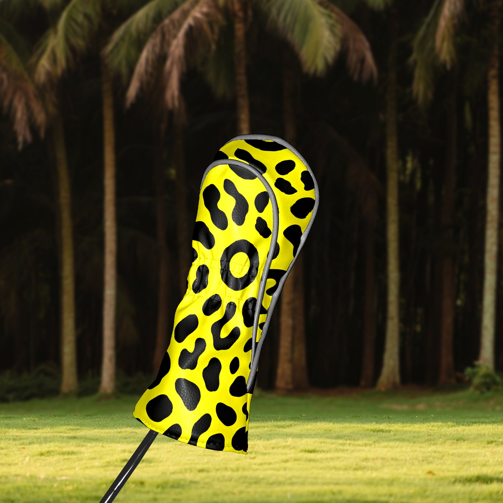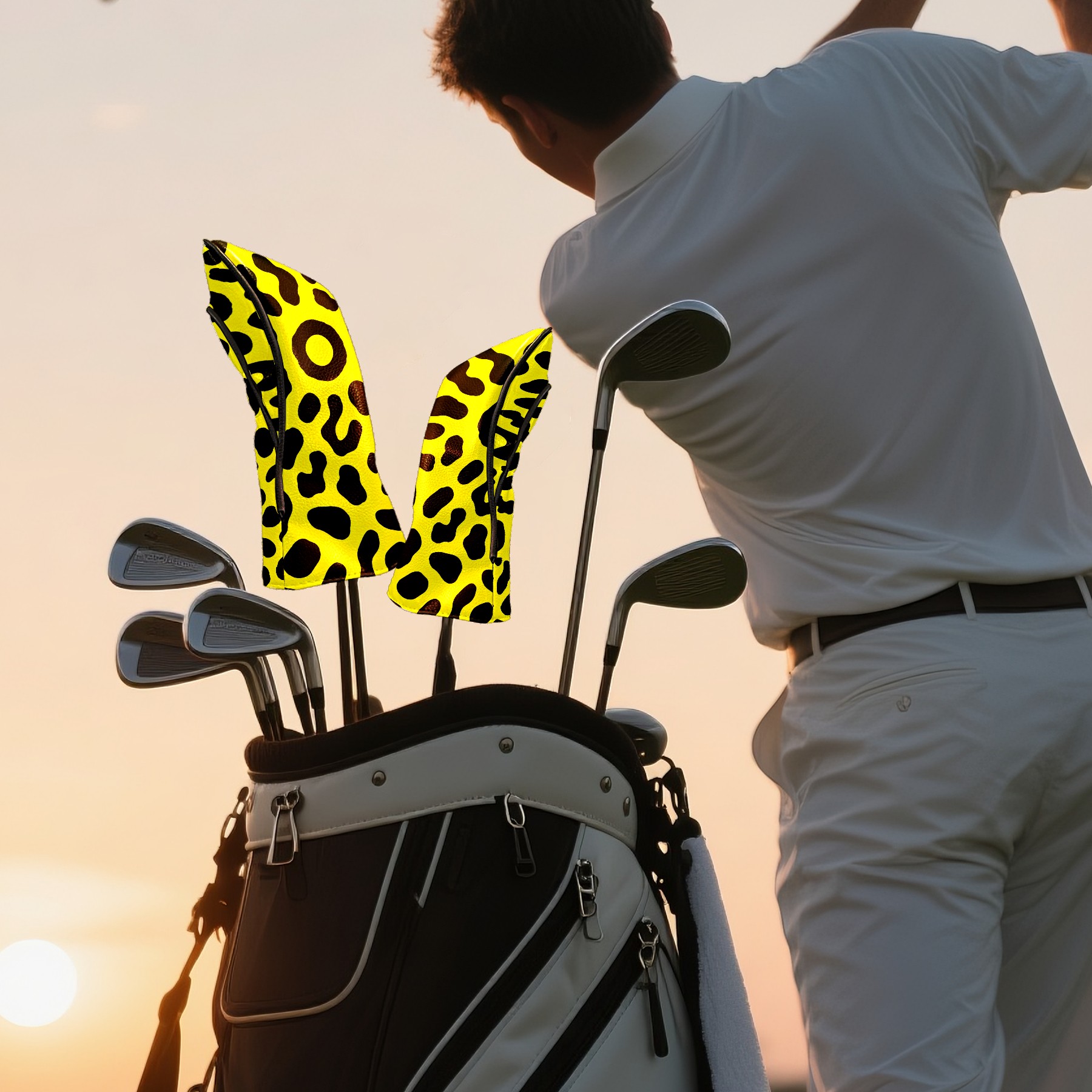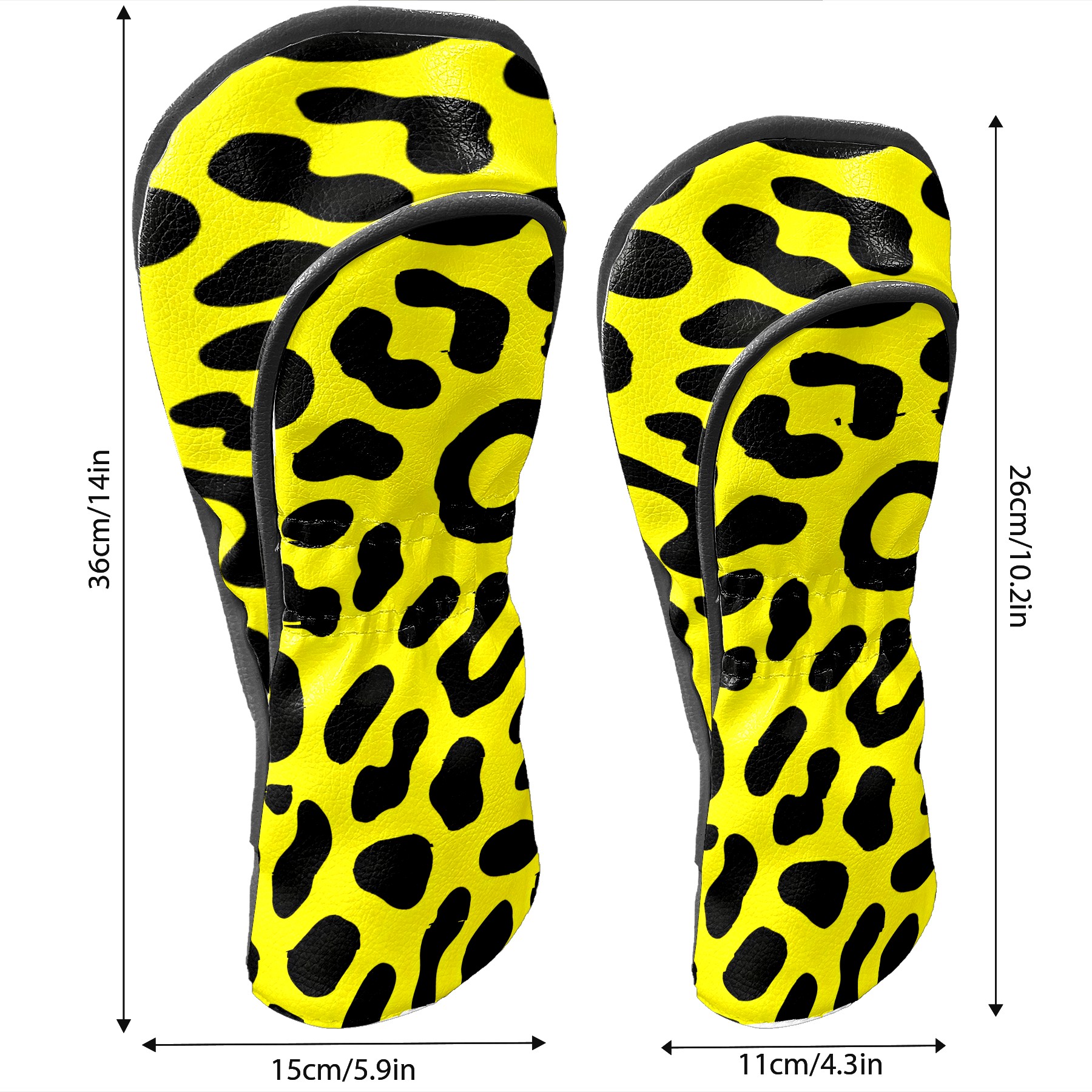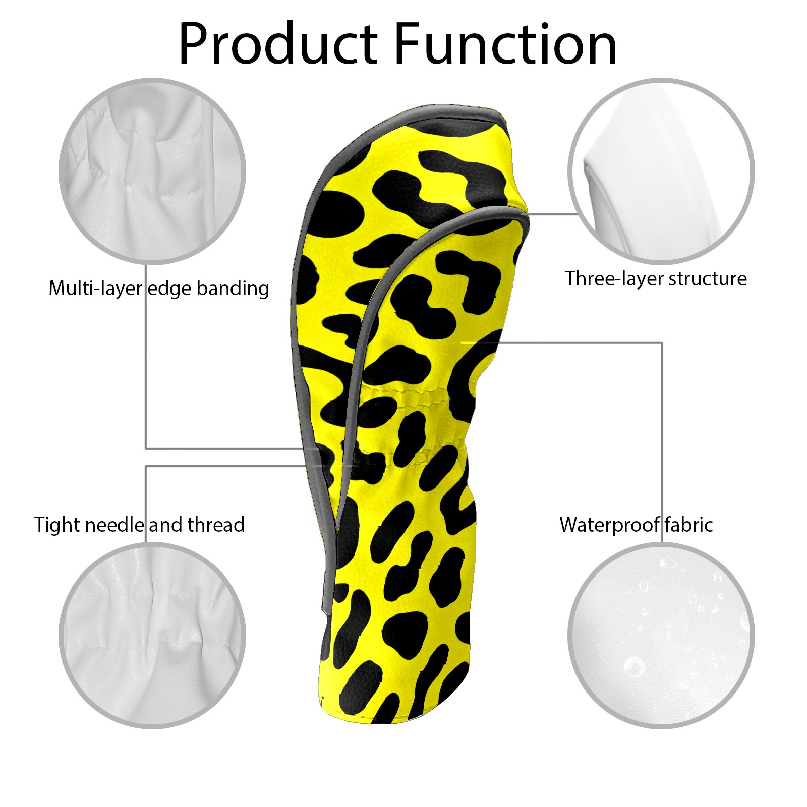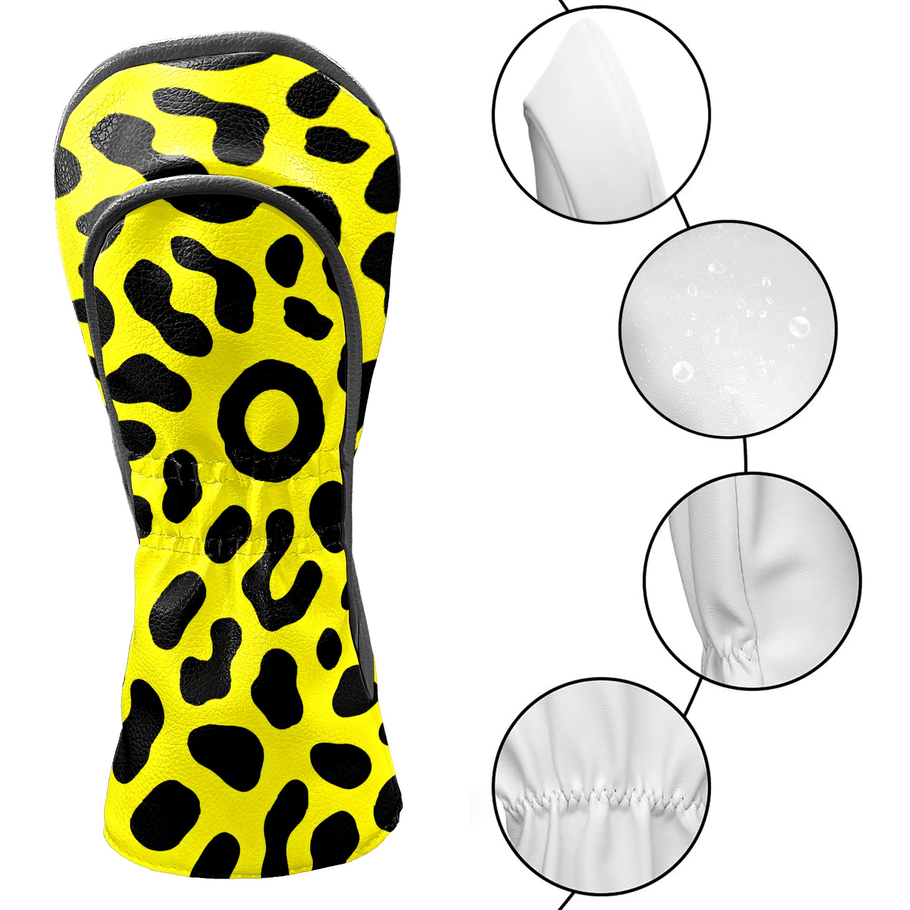 PU Leather Golf Head Covers Set – Fits Drivers/Fairway Woods/Hybrids, Ideal Gifts for Male & Female Golfers Black Yellow Leopard Print Pattern