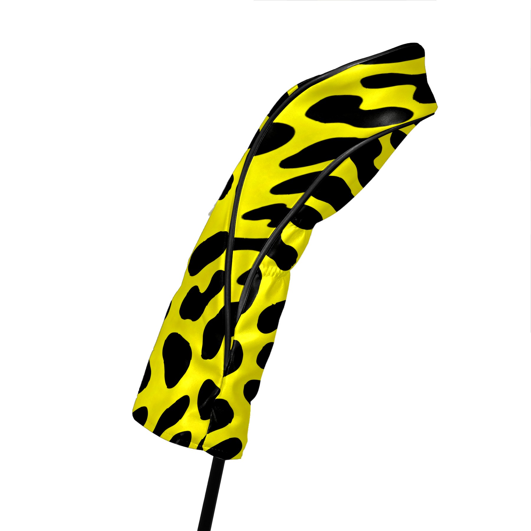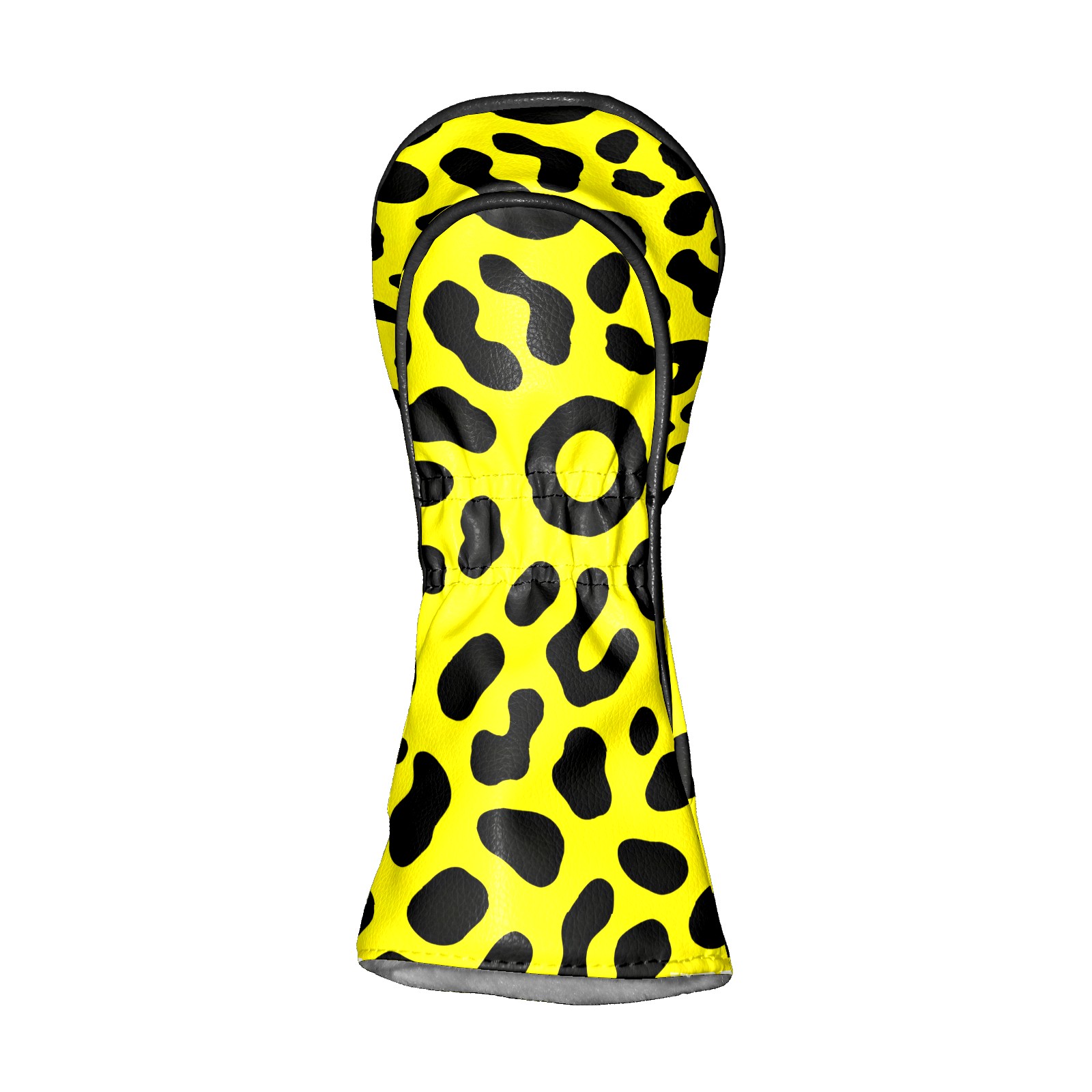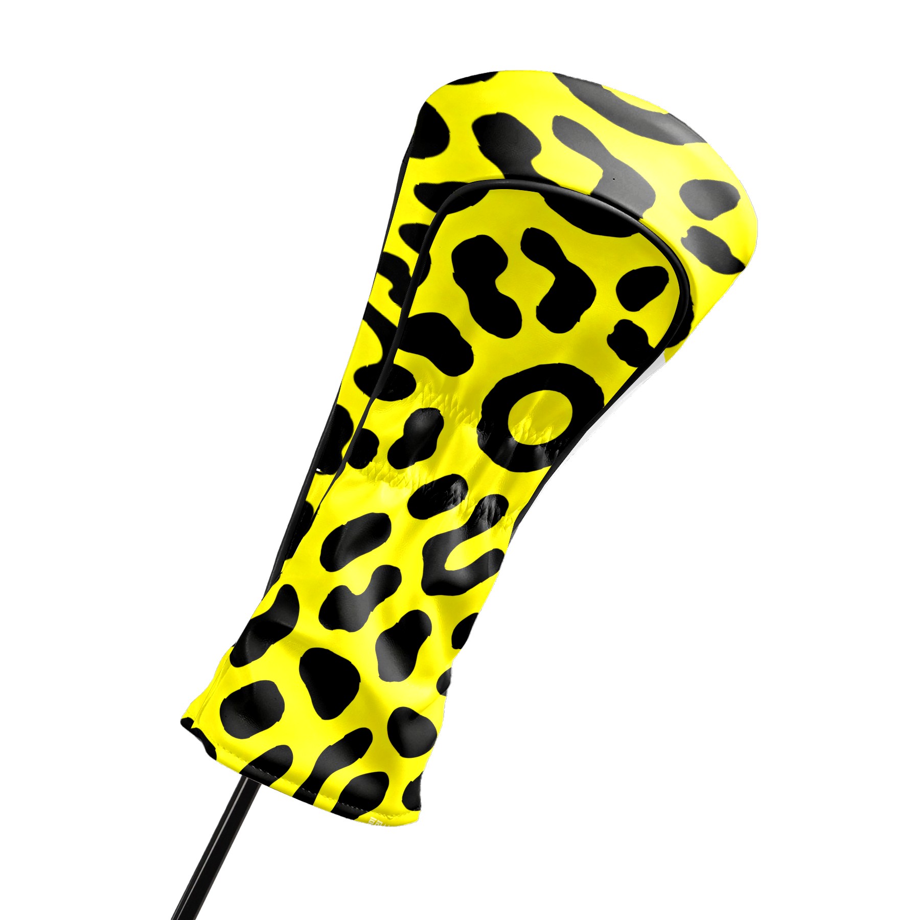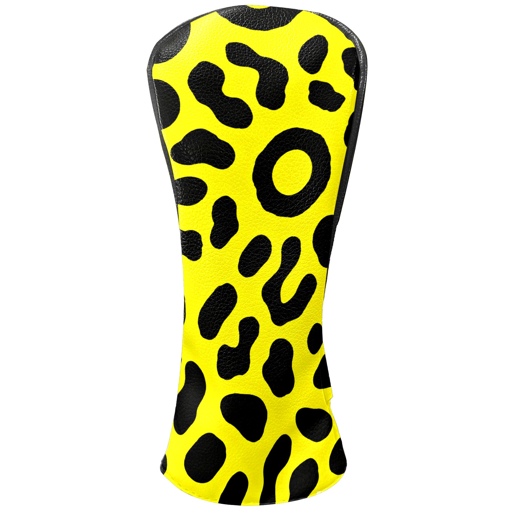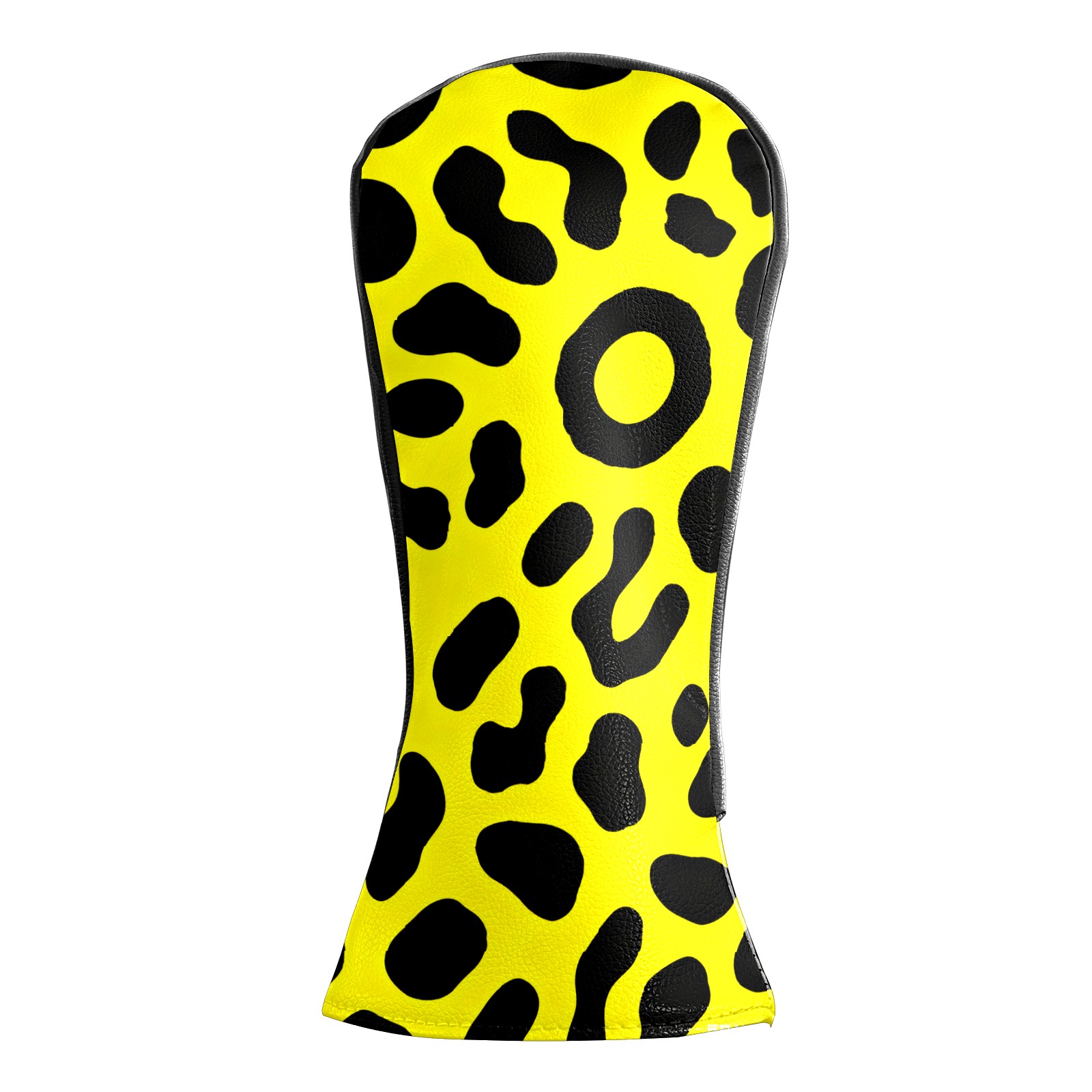 PU Leather Golf Head Covers Set – Fits Drivers/Fairway Woods/Hybrids, Ideal Gifts for Male & Female Golfers Black Yellow Leopard Print Pattern
