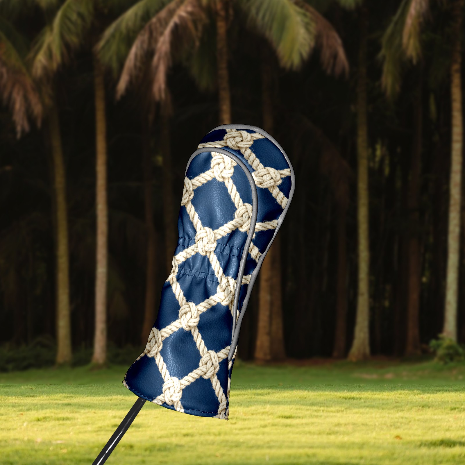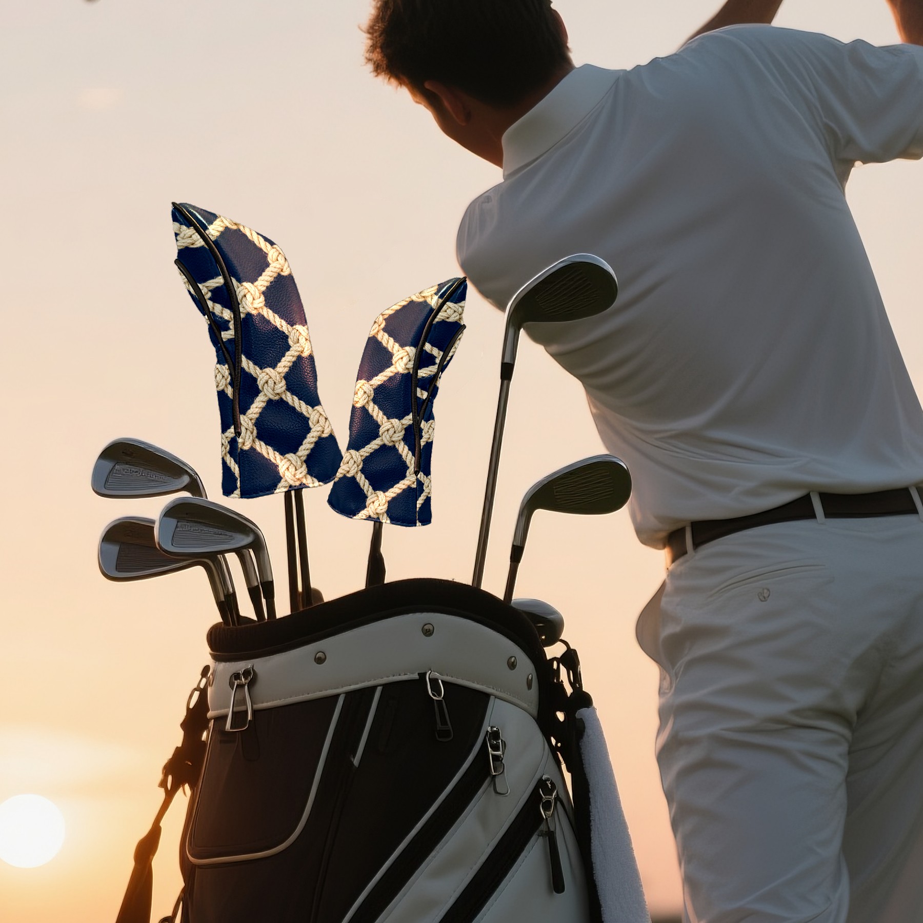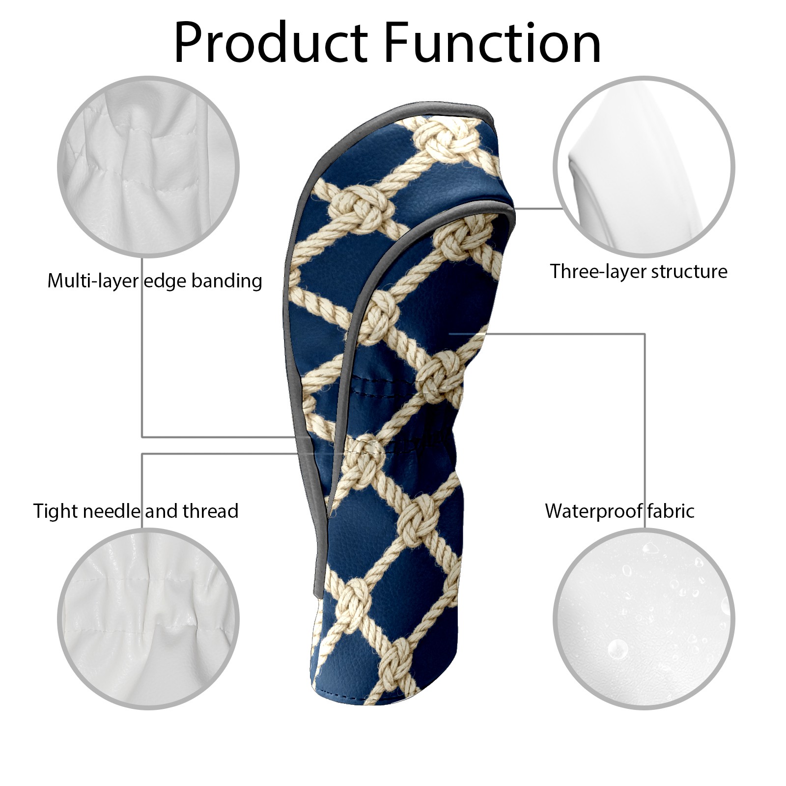 PU Leather Golf Head Covers Set – Fits Drivers/Fairway Woods/Hybrids, Ideal Gifts for Male & Female Golfers Beige Rope Texture