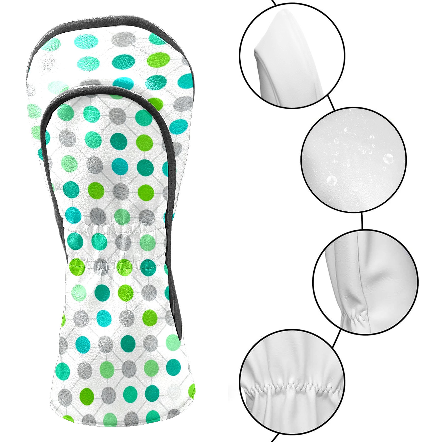 PU Leather Golf Head Covers Set – Fits Drivers/Fairway Woods/Hybrids, Ideal Gifts for Male & Female Golfers Polka Dot Pattern