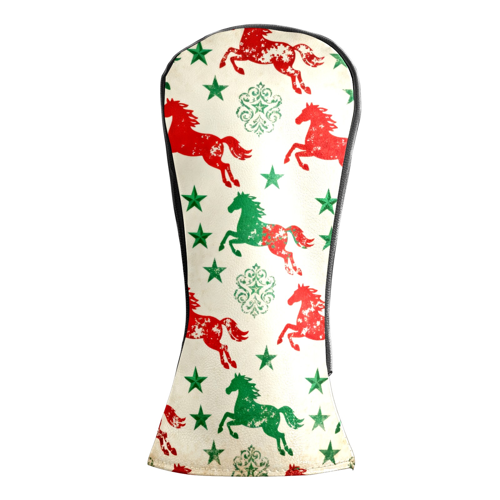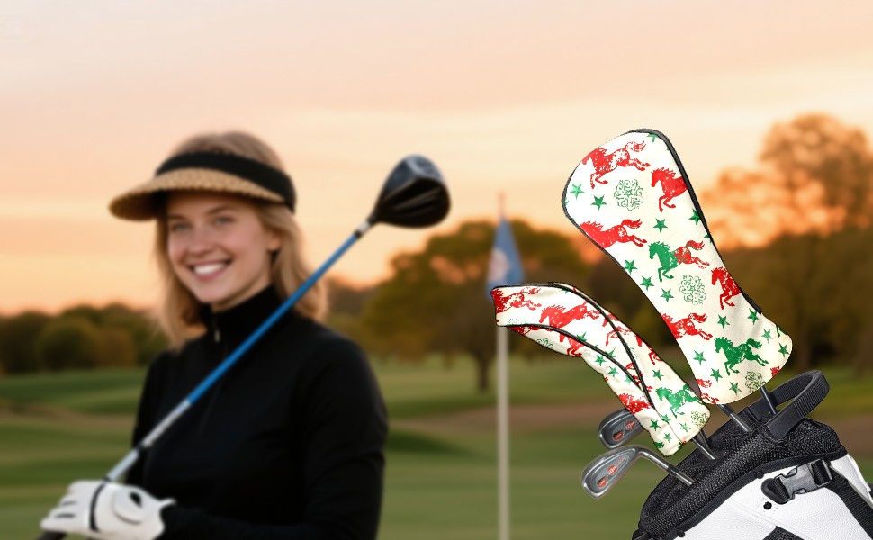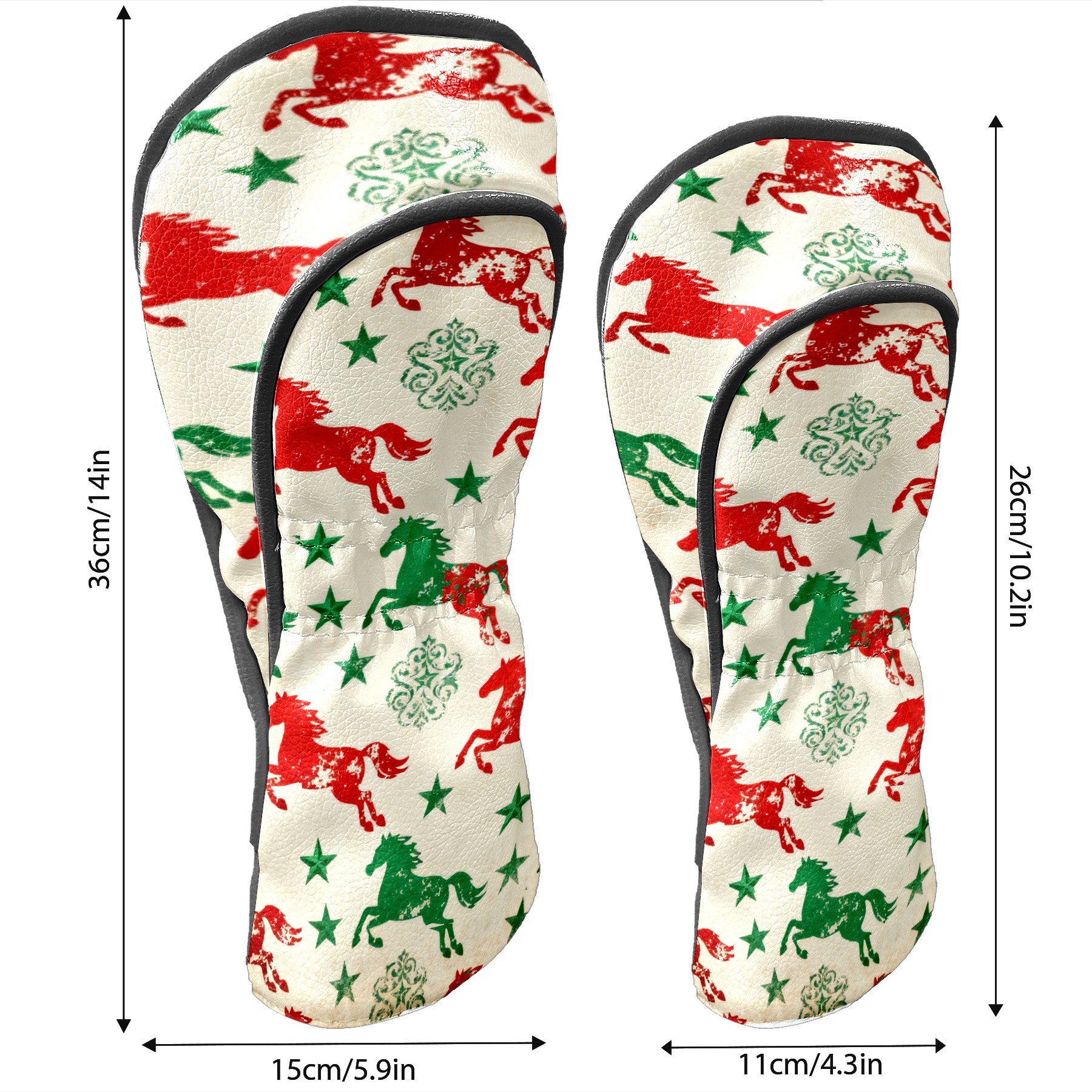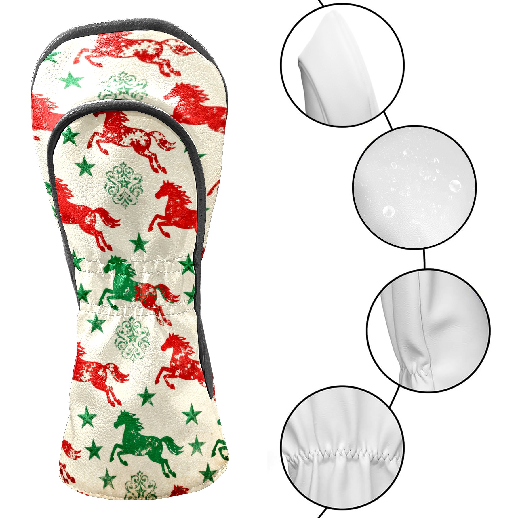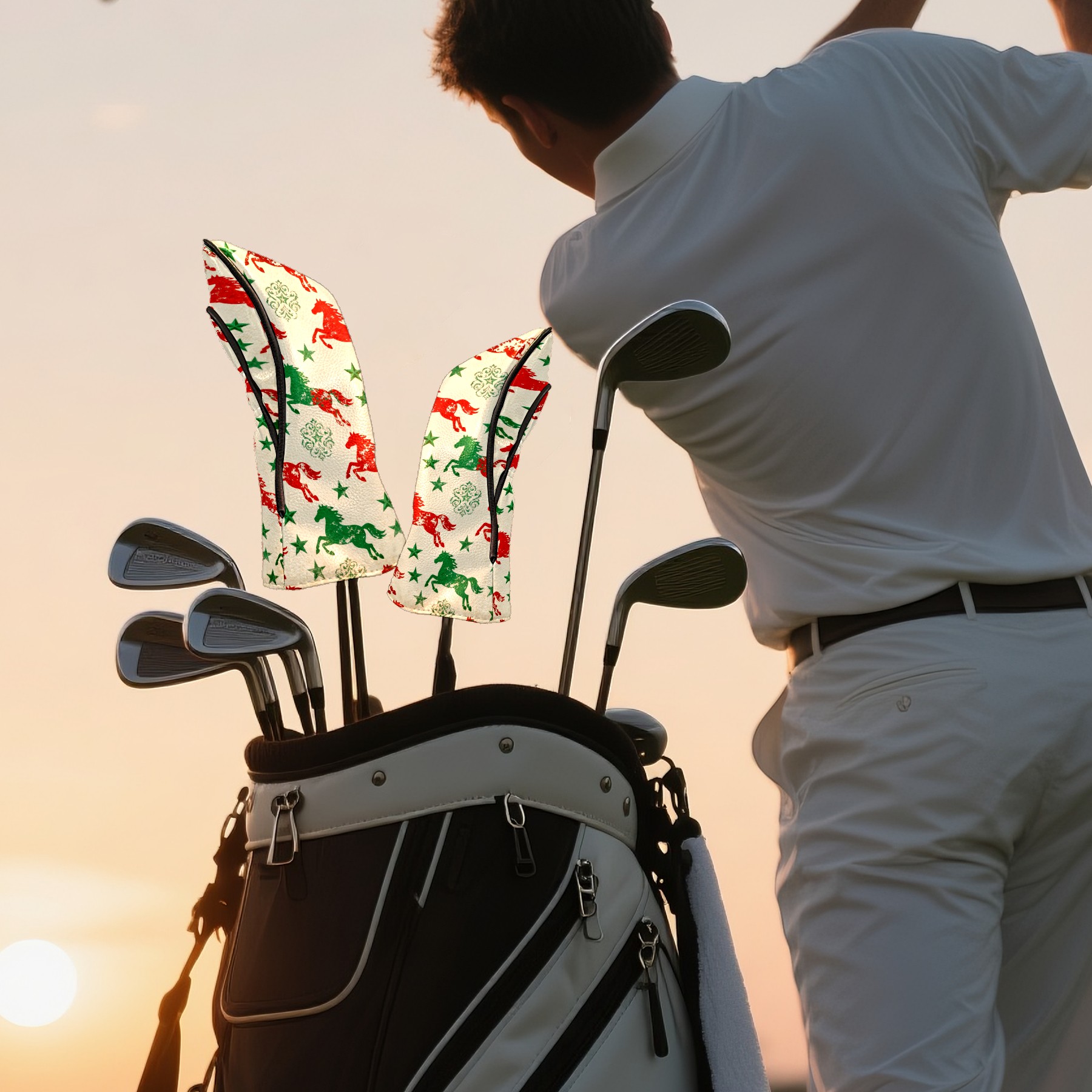 PU Leather Golf Head Covers Set – Fits Drivers/Fairway Woods/Hybrids, Ideal Gifts for Male & Female Golfers Red And Green Galloping Horses