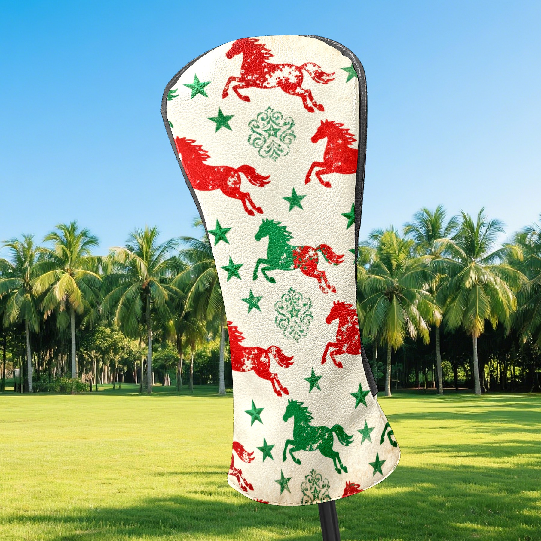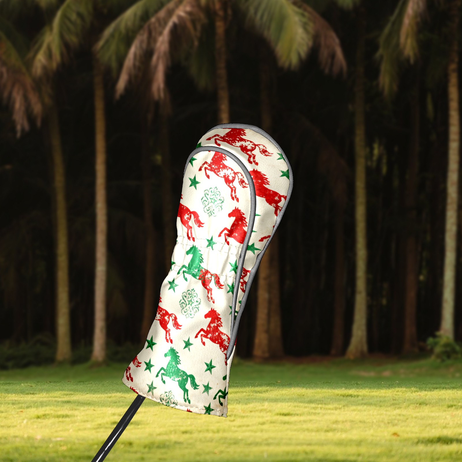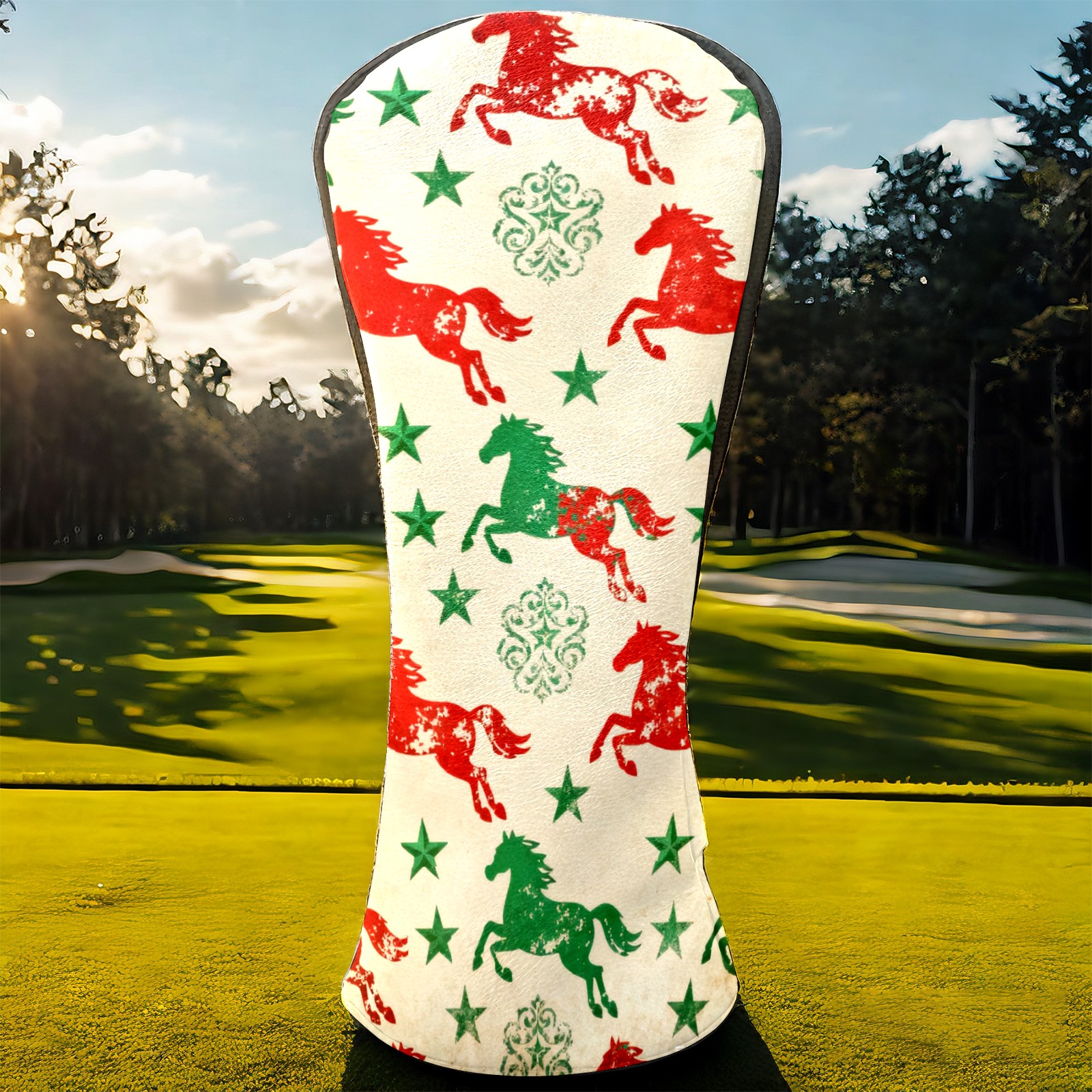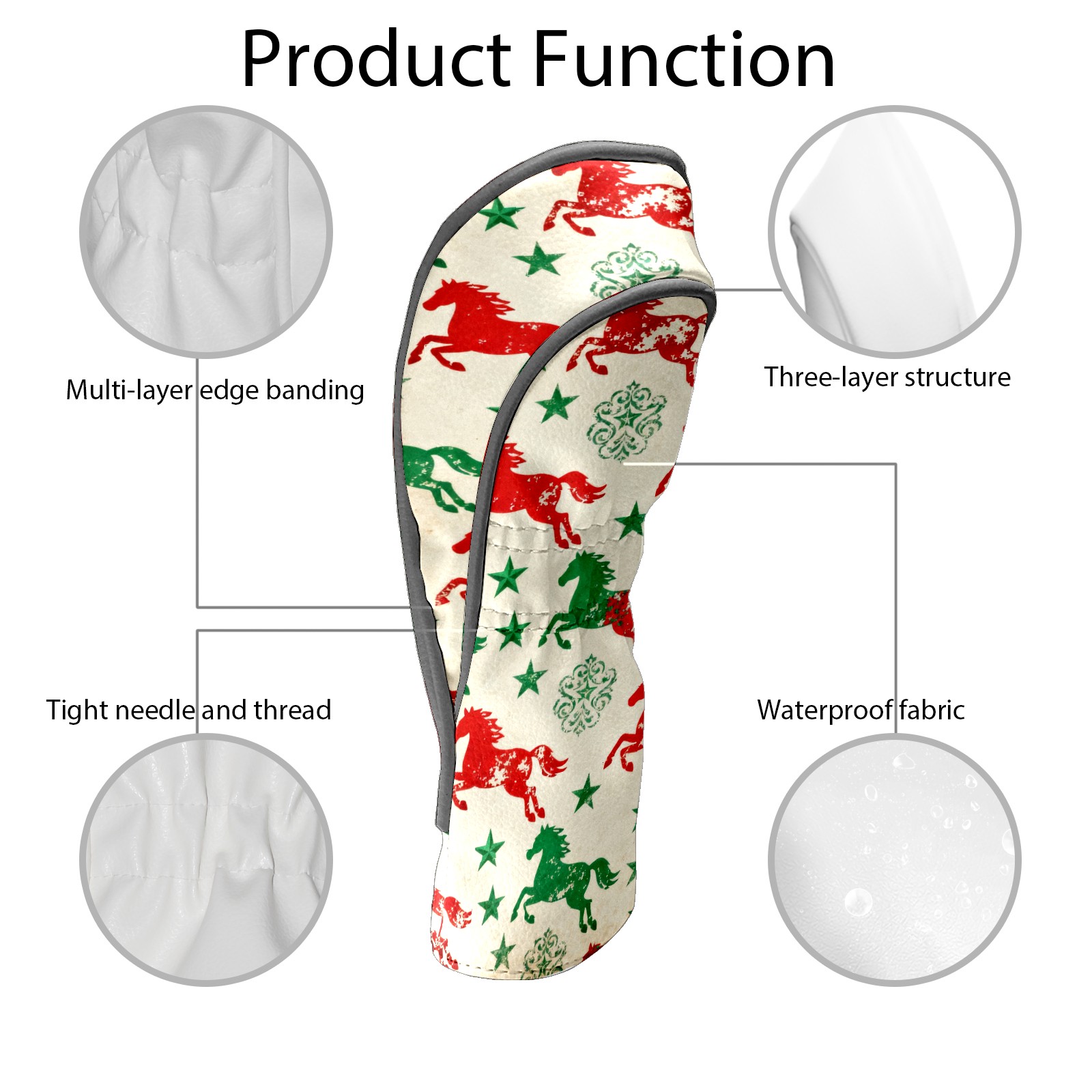 PU Leather Golf Head Covers Set – Fits Drivers/Fairway Woods/Hybrids, Ideal Gifts for Male & Female Golfers Red And Green Galloping Horses