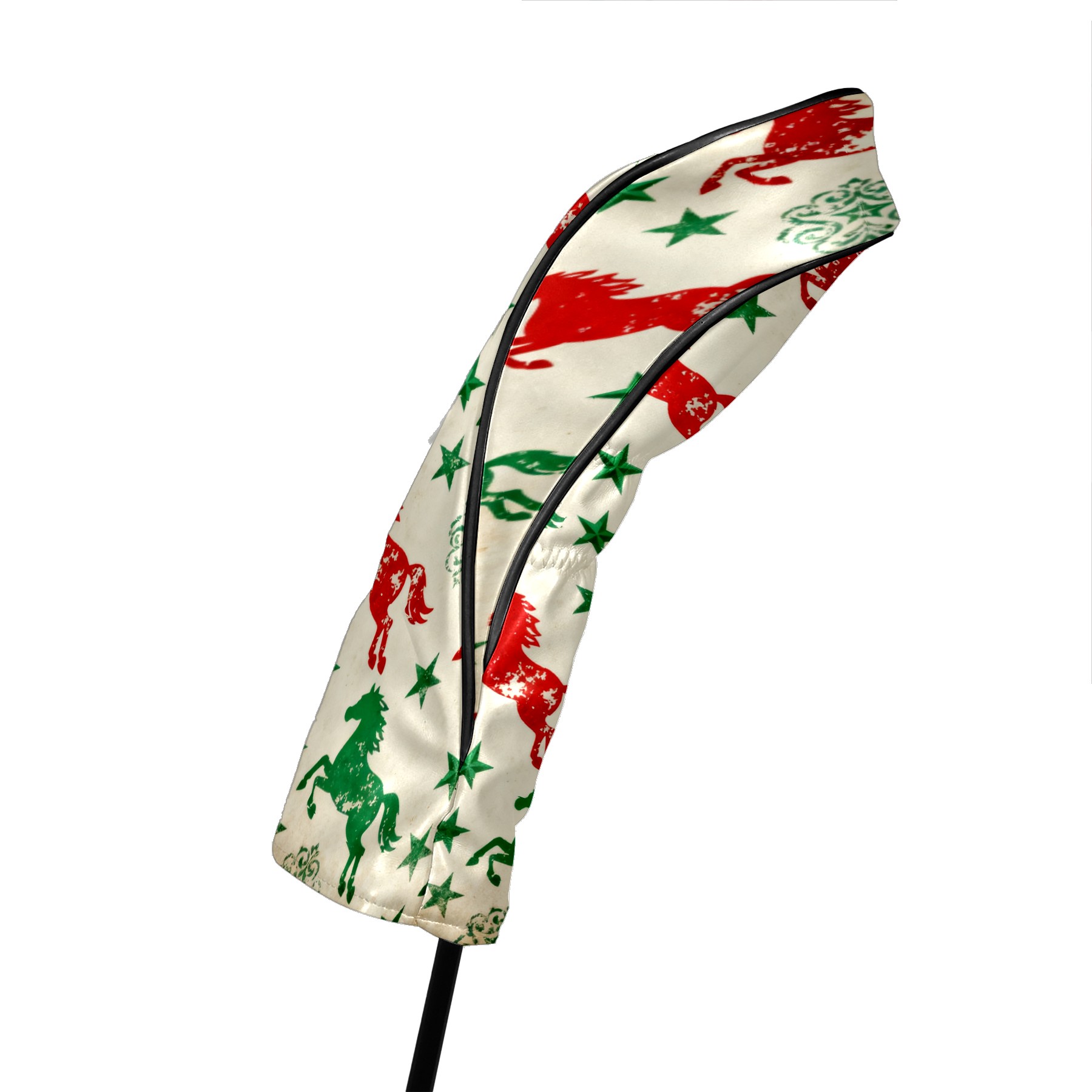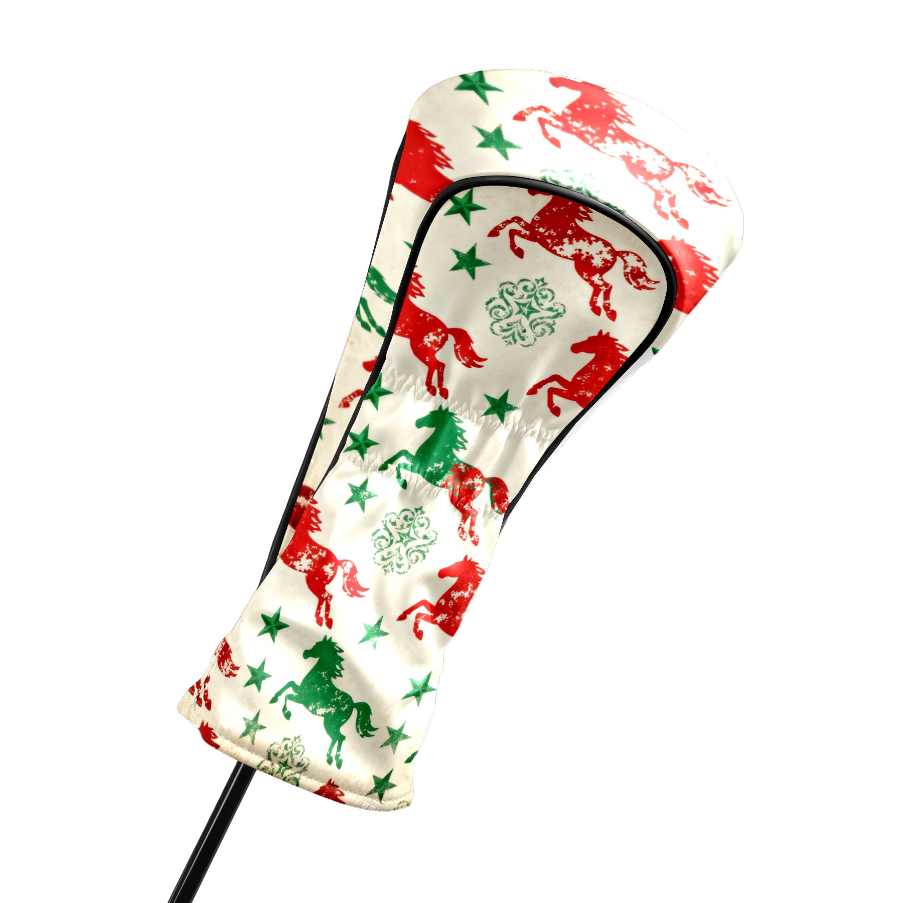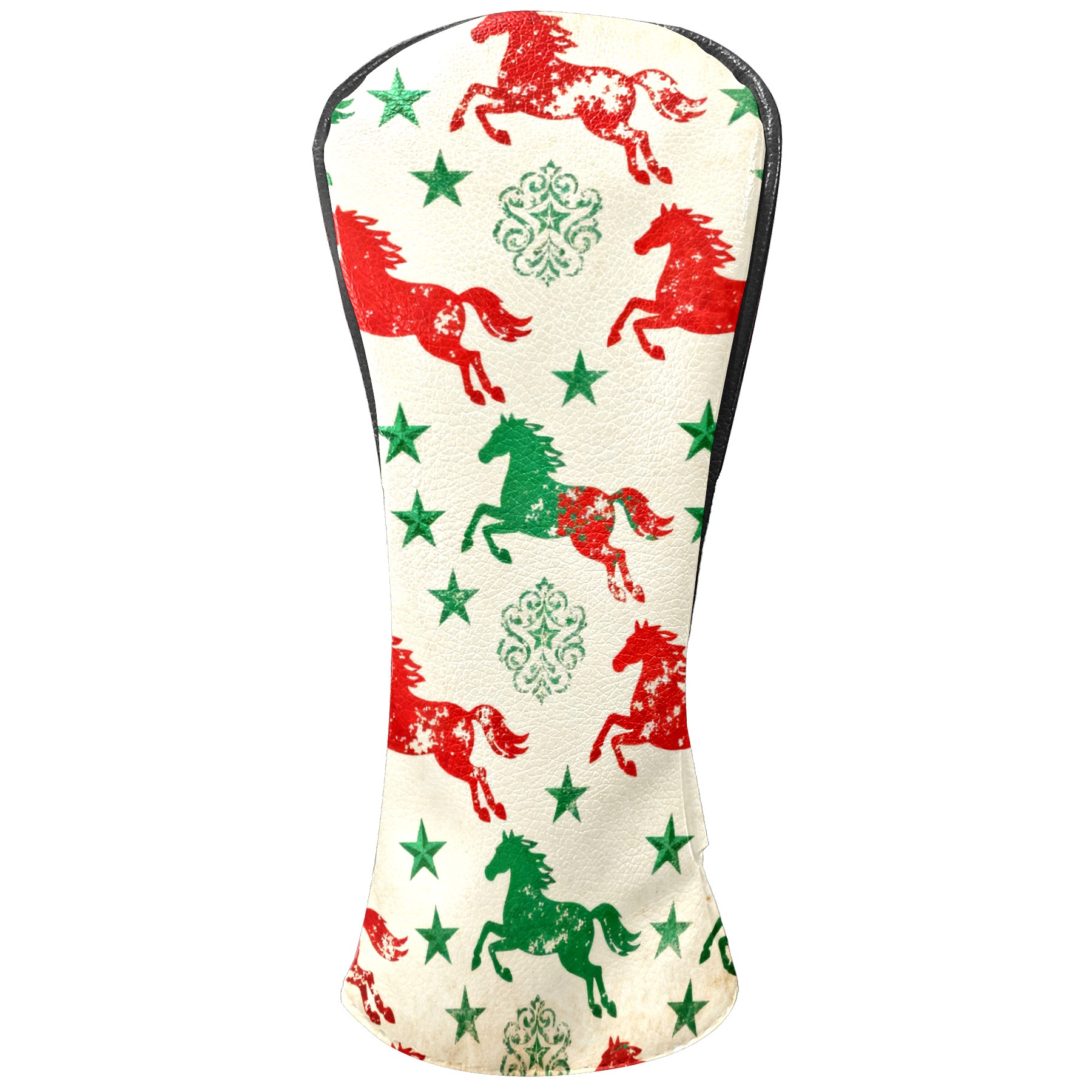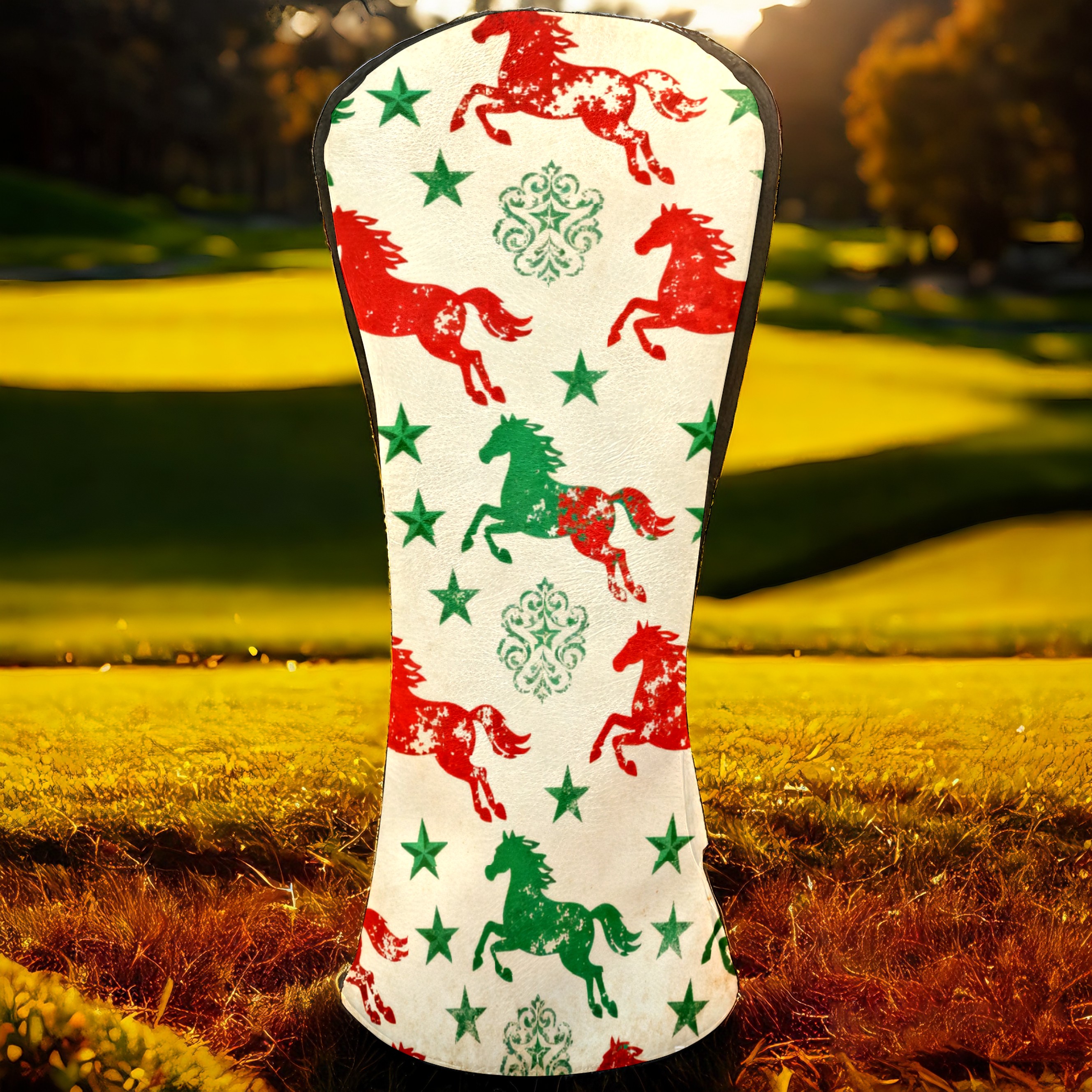PU Leather Golf Head Covers Set – Fits Drivers/Fairway Woods/Hybrids, Ideal Gifts for Male & Female Golfers Red And Green Galloping Horses