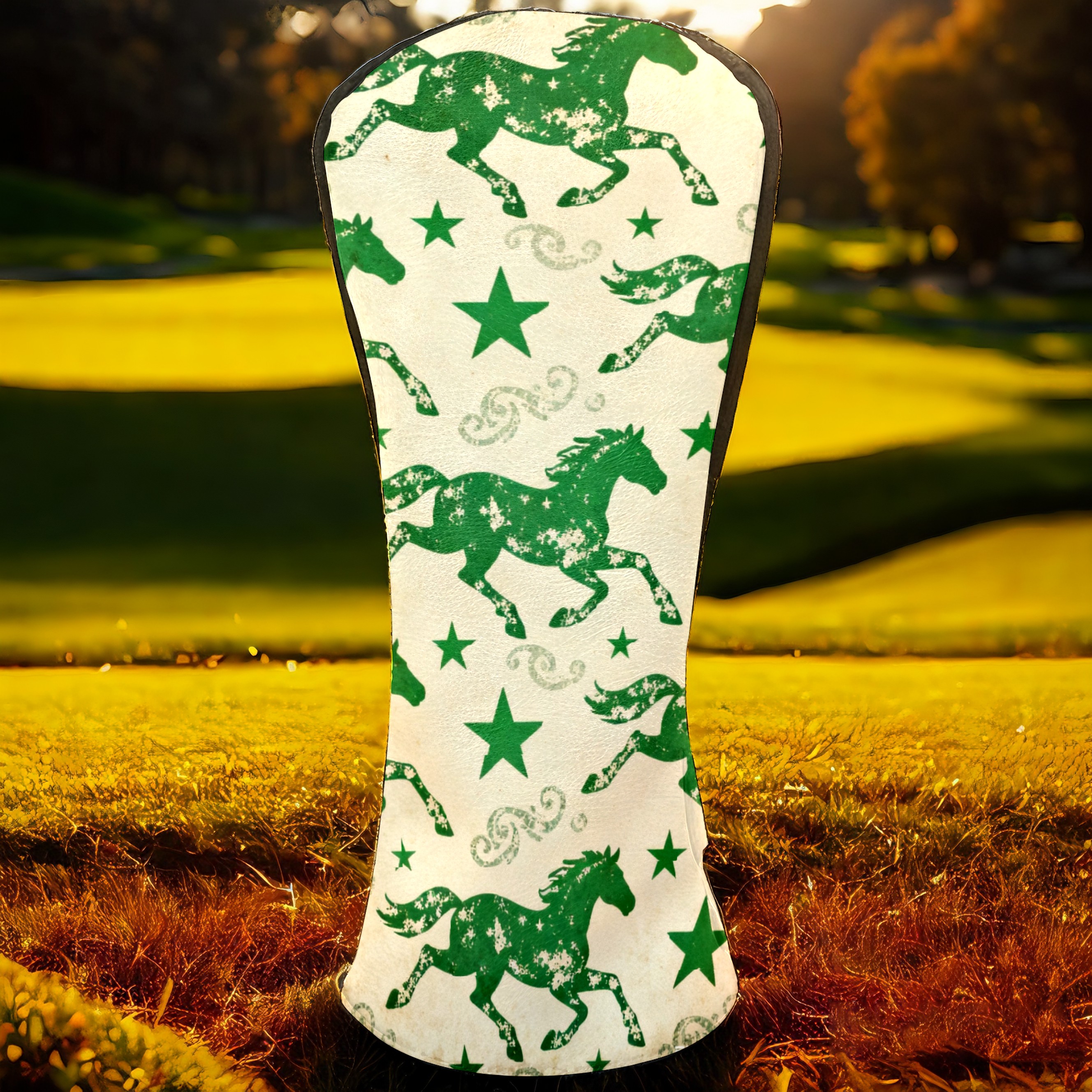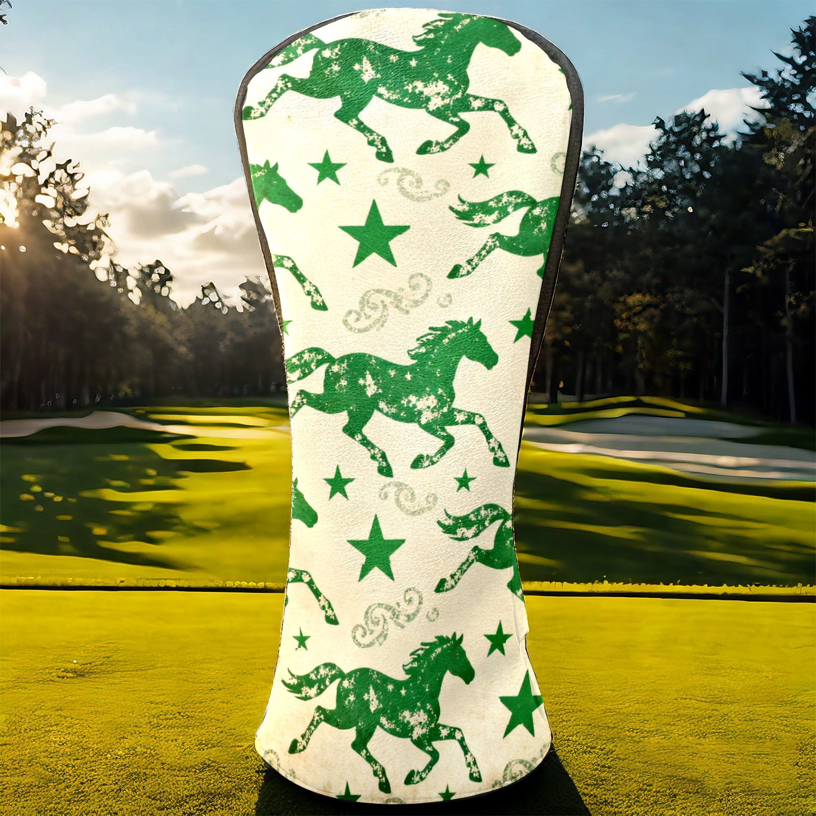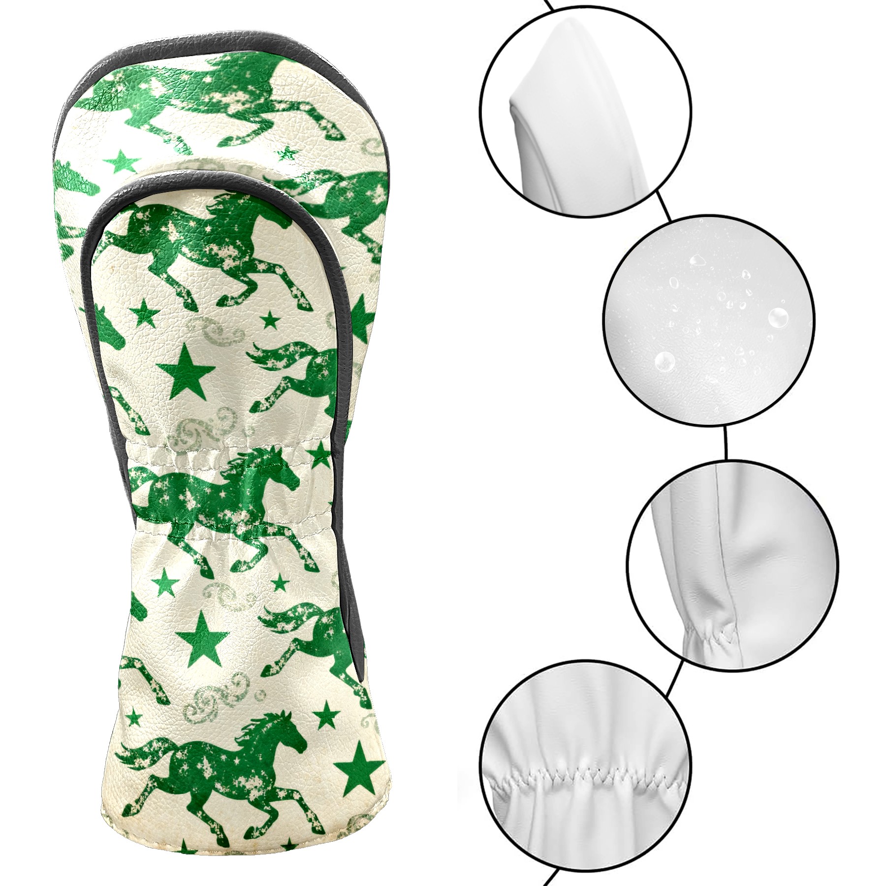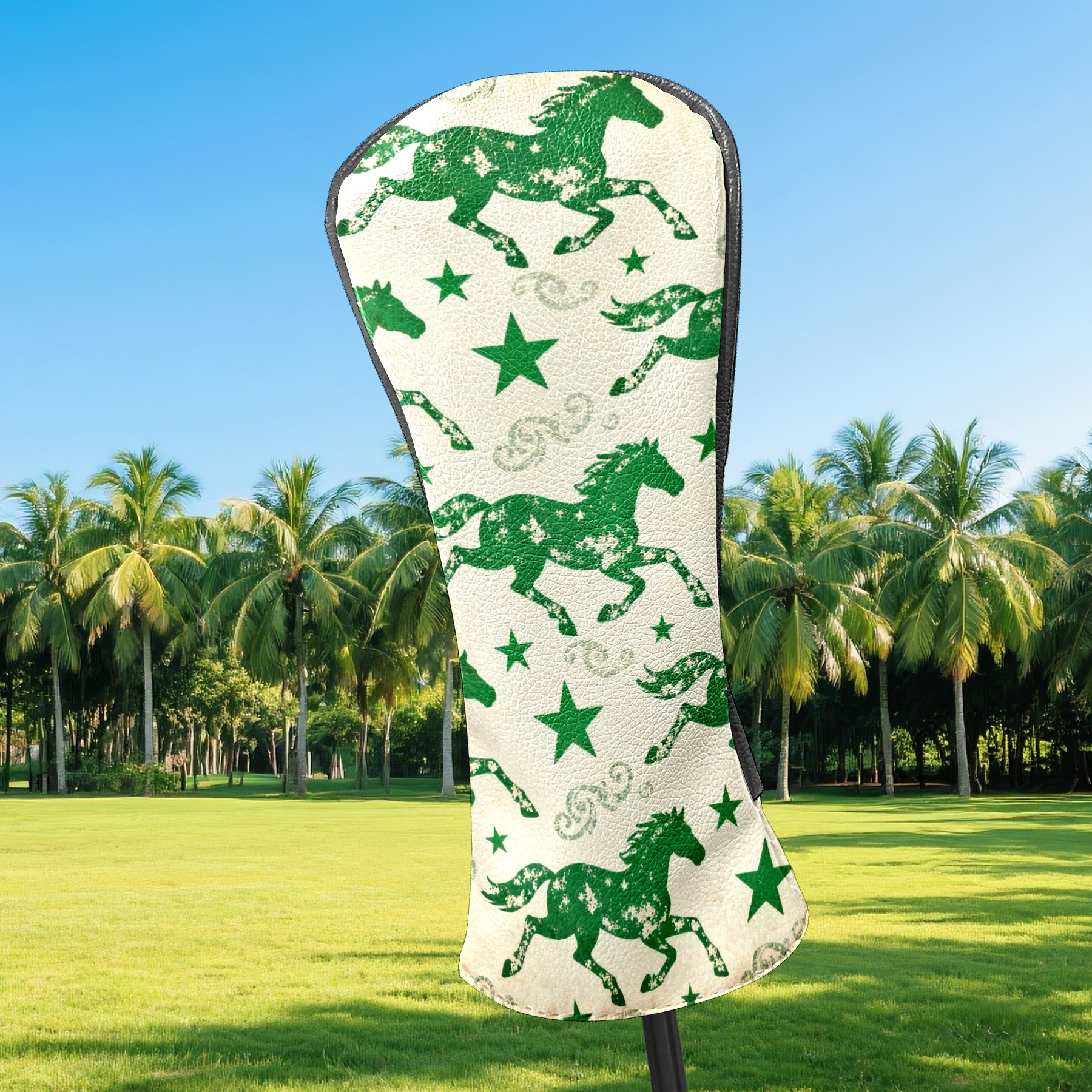 PU Leather Golf Head Covers Set – Fits Drivers/Fairway Woods/Hybrids, Ideal Gifts for Male & Female Golfers Green Galloping Horses