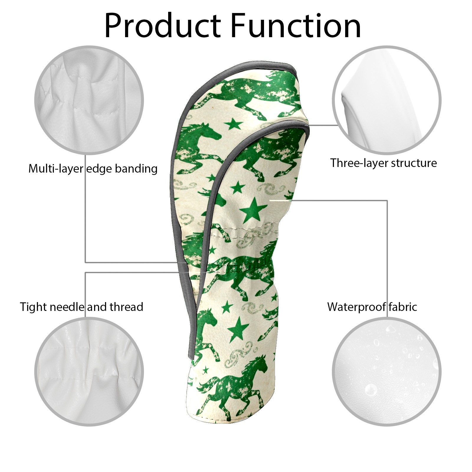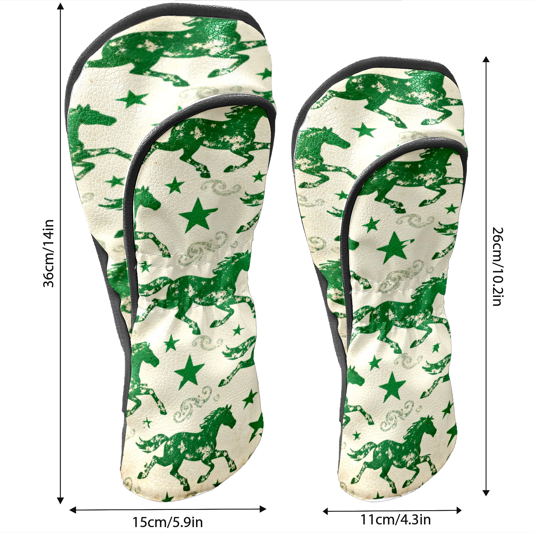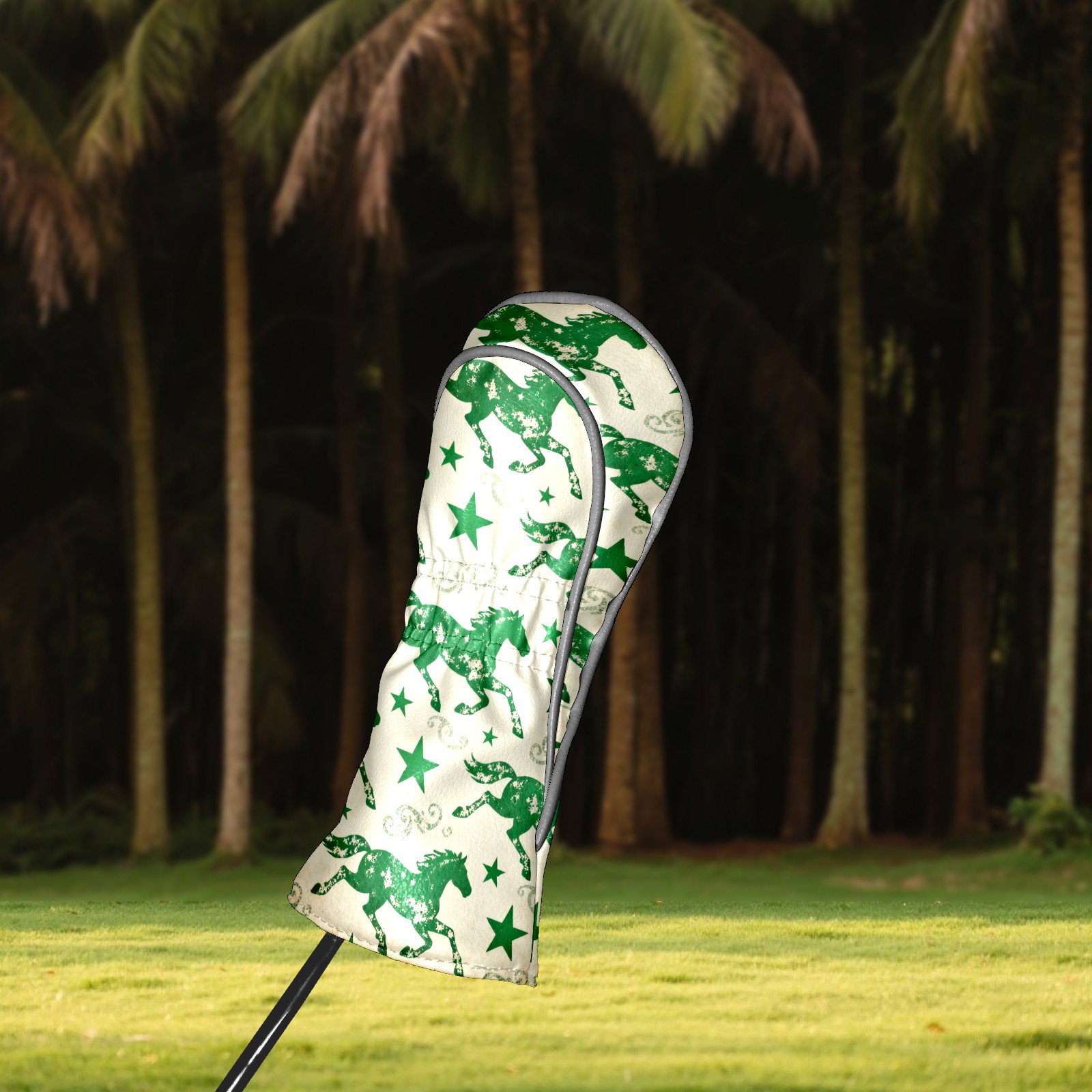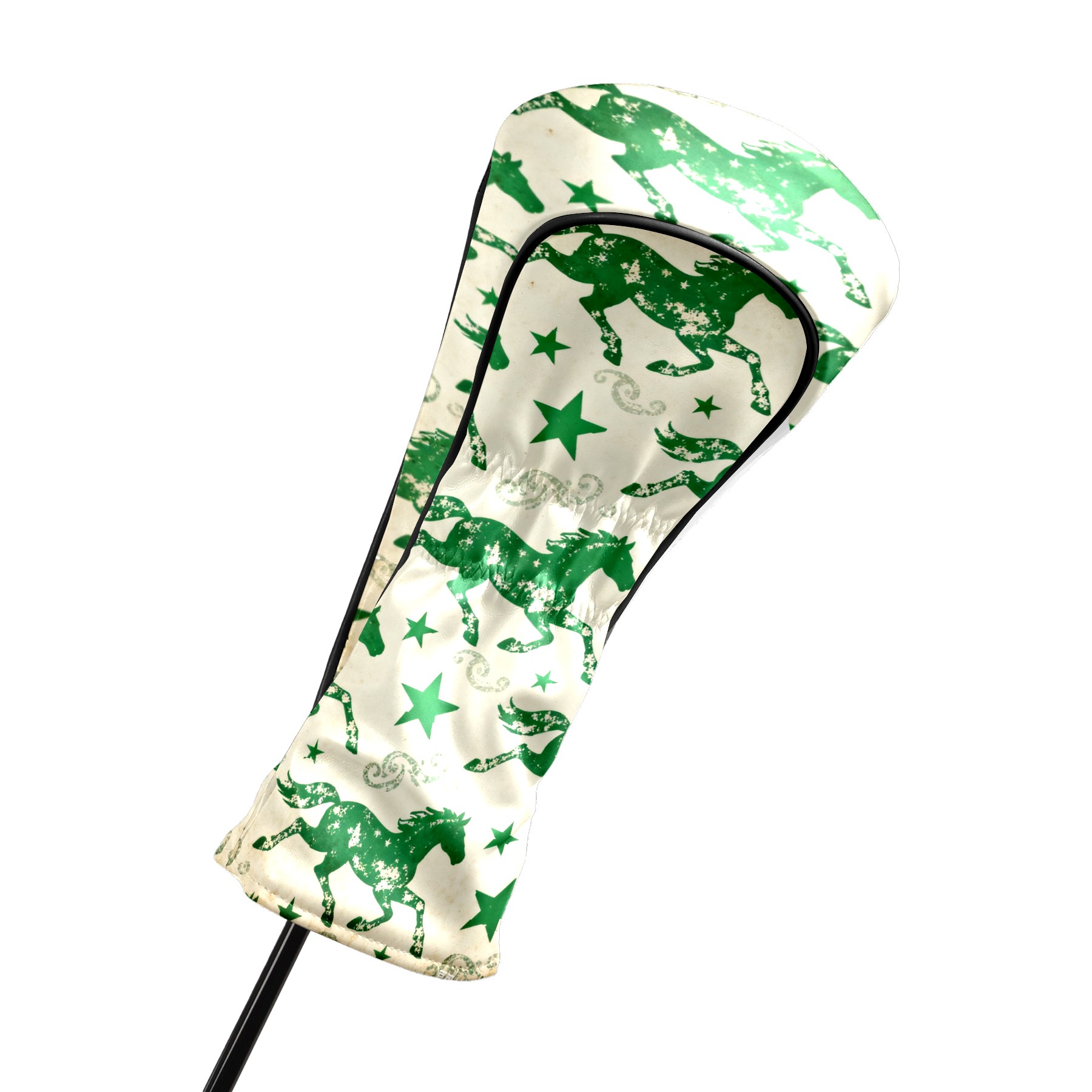 PU Leather Golf Head Covers Set – Fits Drivers/Fairway Woods/Hybrids, Ideal Gifts for Male & Female Golfers Green Galloping Horses
