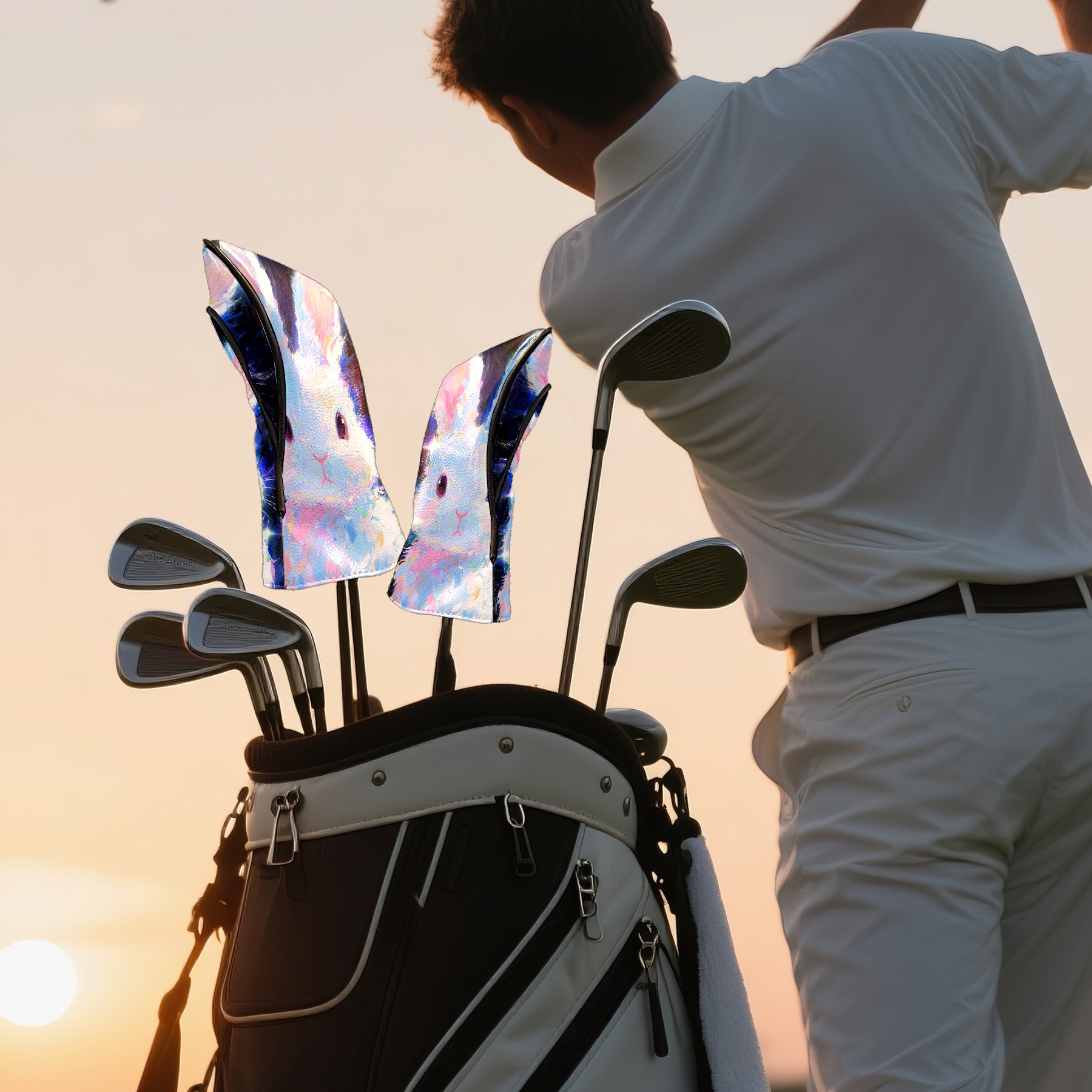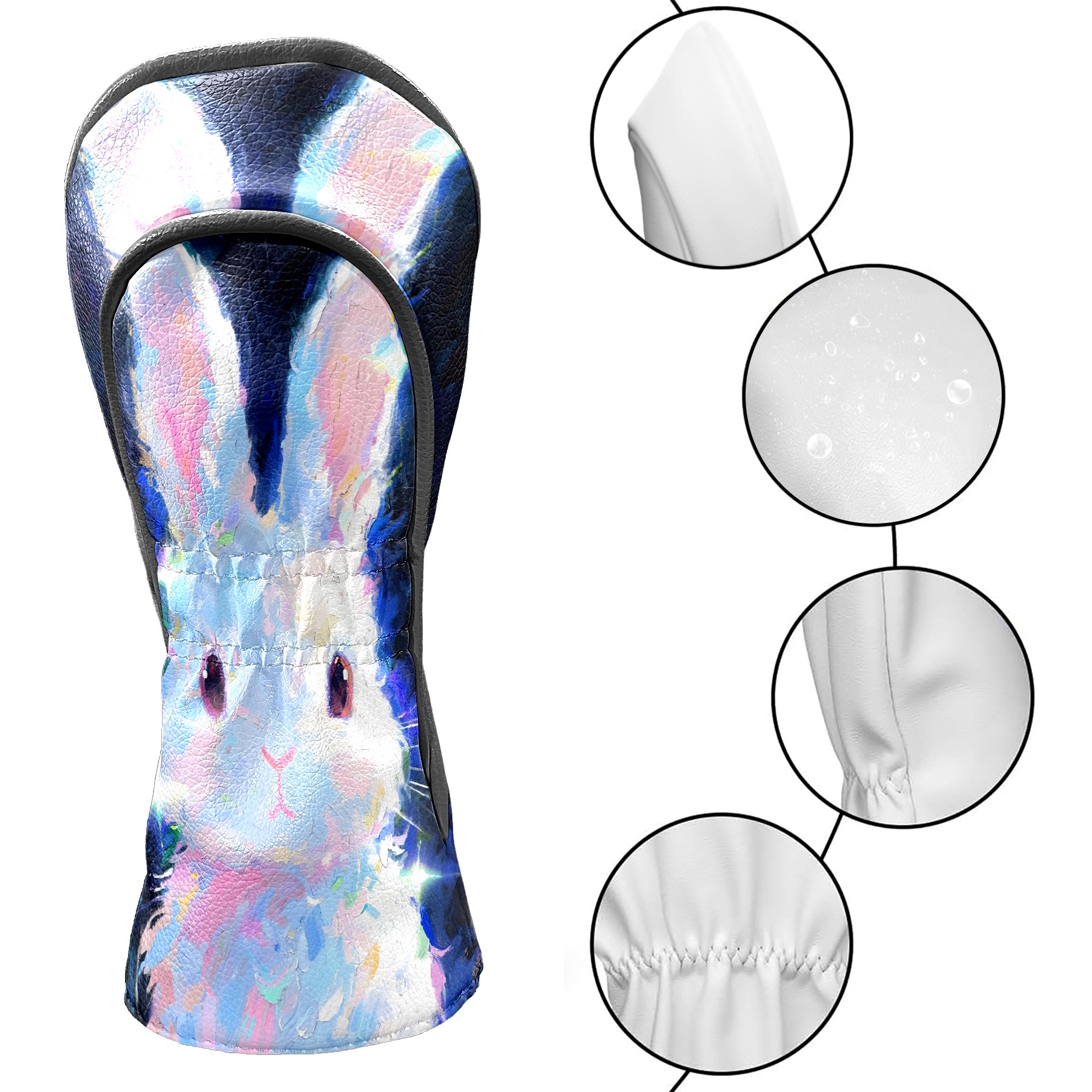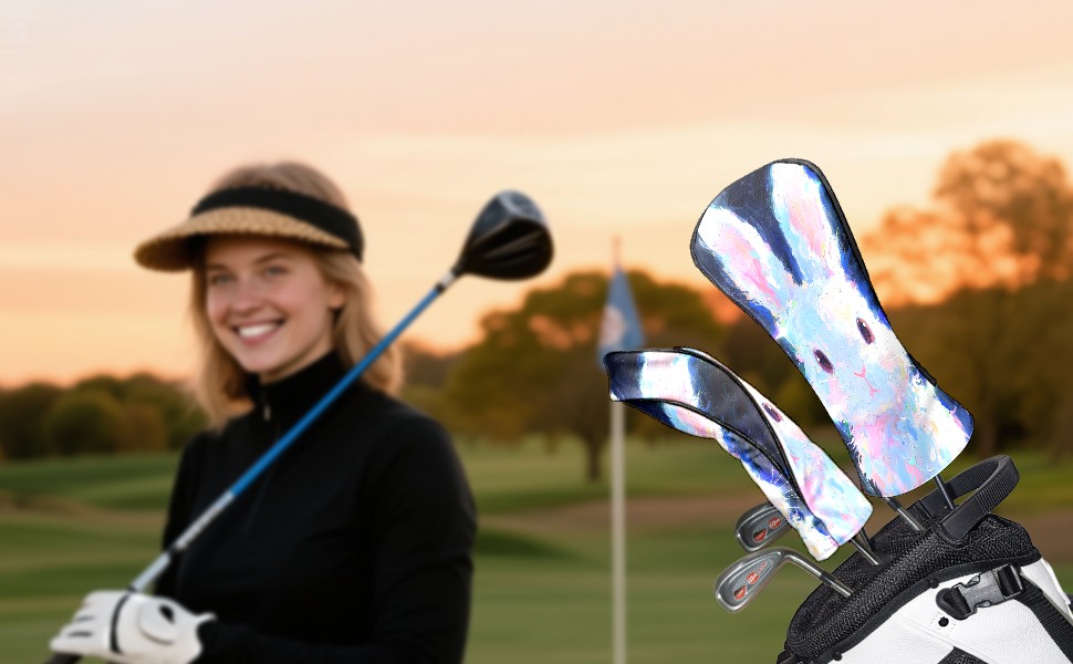 Golf Club Head Covers Cute Rabbit Driver Fairway Headcover - Water Resistant PU Leather Golf Club Covers Plush Lined Golf Head Covers for Woods and Driver Ideal Gift for Men Women
