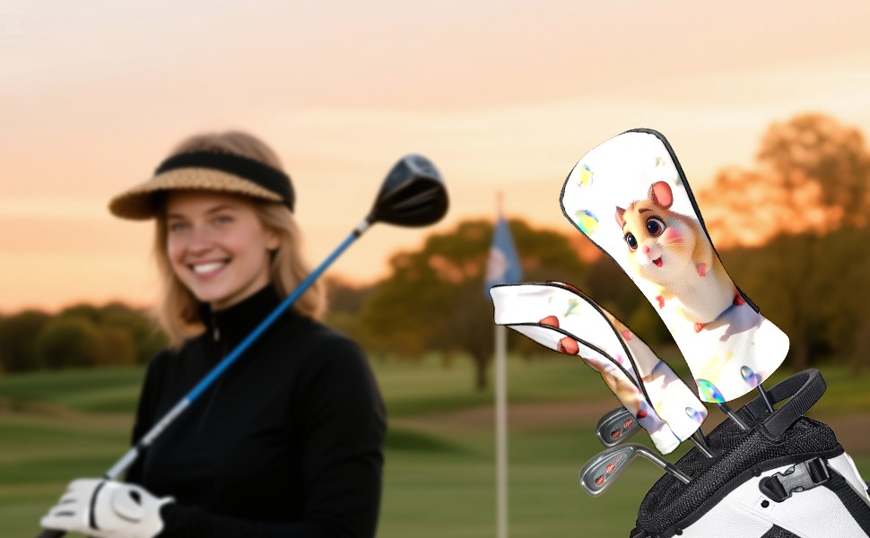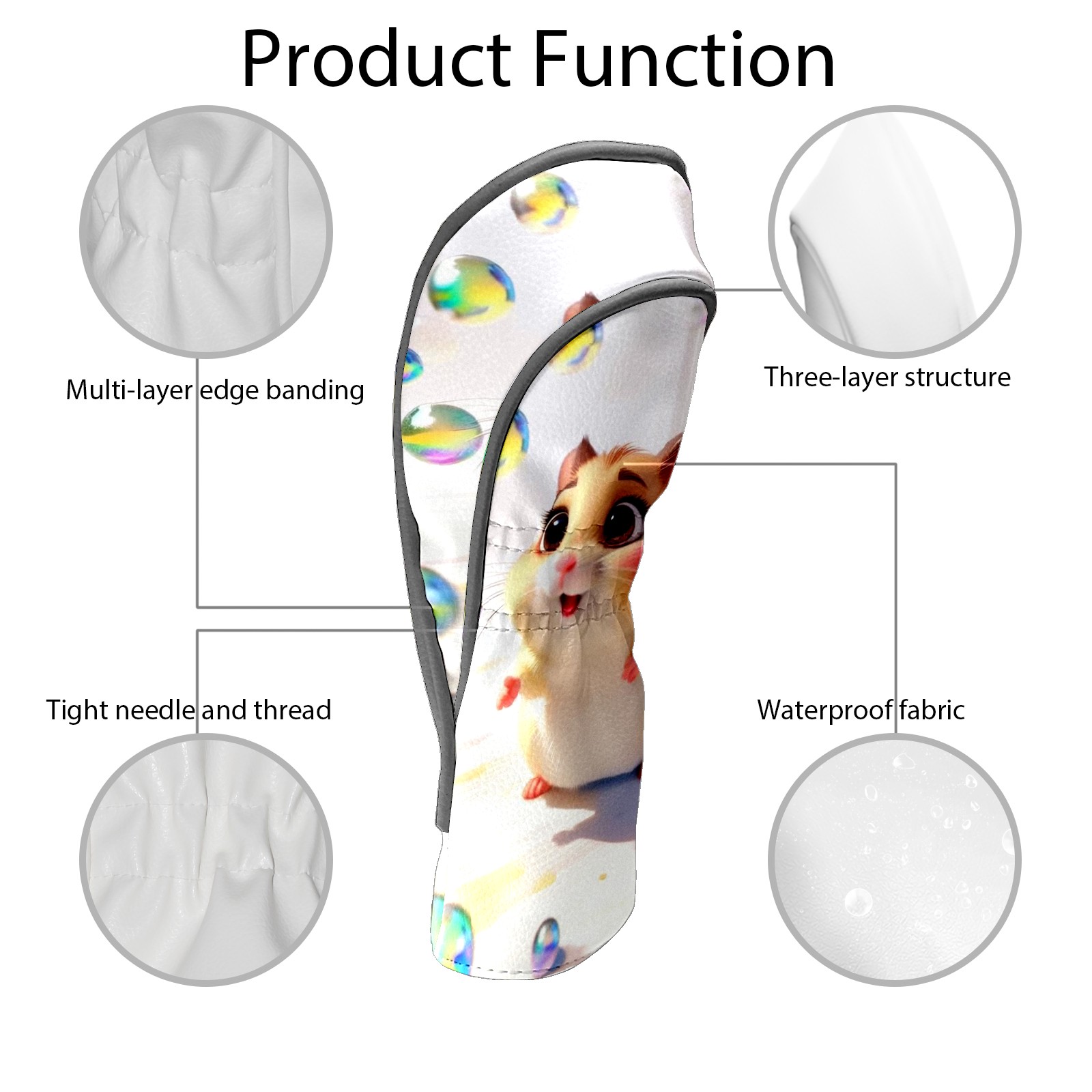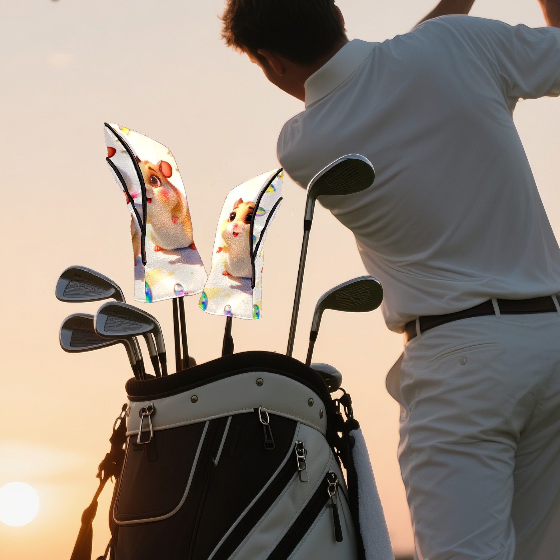 Golf Club Head Covers Playful Animals Driver Fairway Headcover - Water Resistant PU Leather Golf Club Covers Plush Lined Golf Head Covers for Woods and Driver Ideal Gift for Men Women