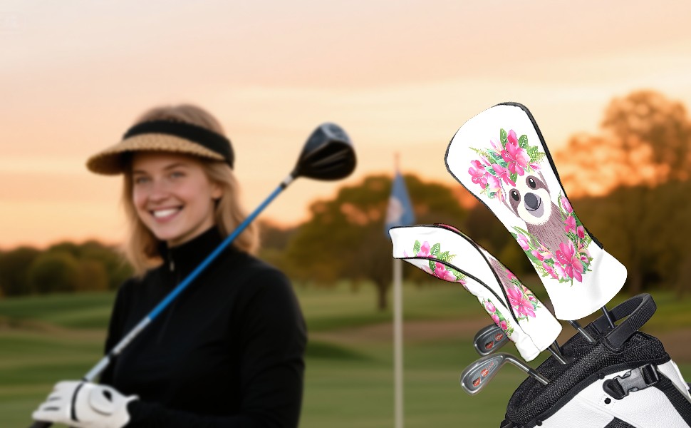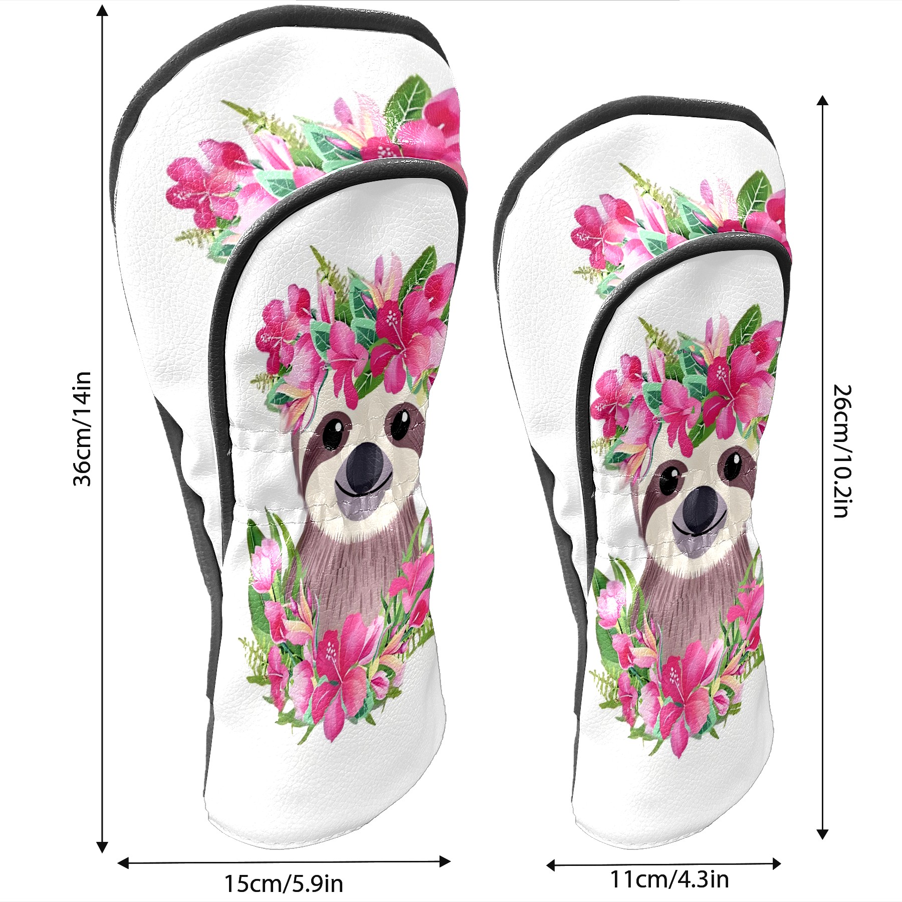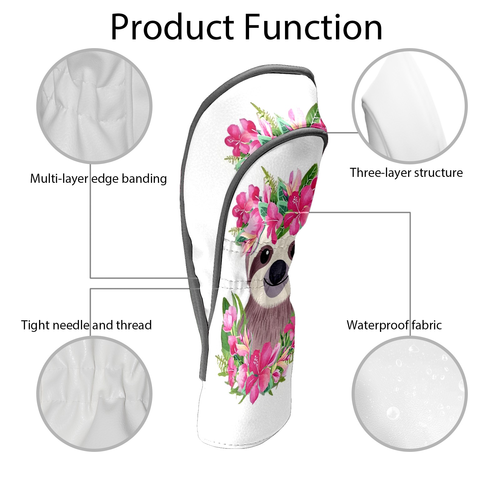Golf Club Head Covers Sloth Driver Fairway Headcover - Water Resistant PU Leather Golf Club Covers Plush Lined Golf Head Covers for Woods and Driver Ideal Gift for Men Women