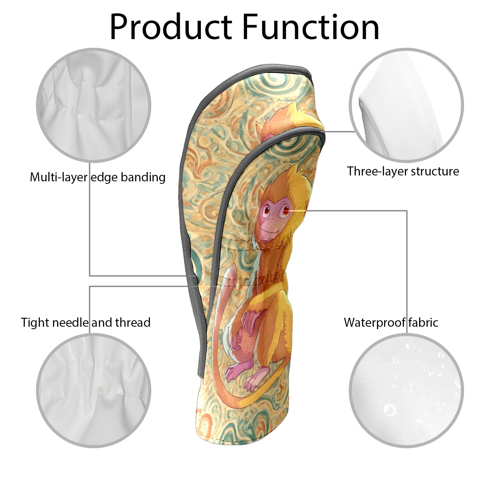 Golf Club Head Covers Monkey Driver Fairway Headcover - Water Resistant PU Leather Golf Club Covers Plush Lined Golf Head Covers for Woods and Driver Ideal Gift for Men Women
