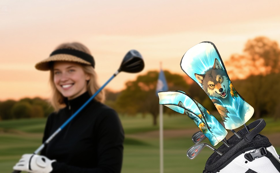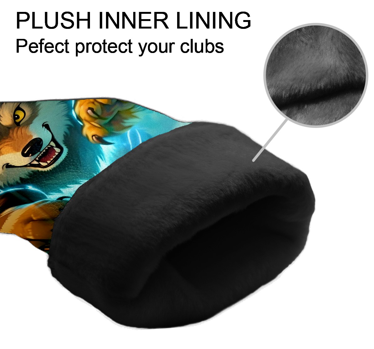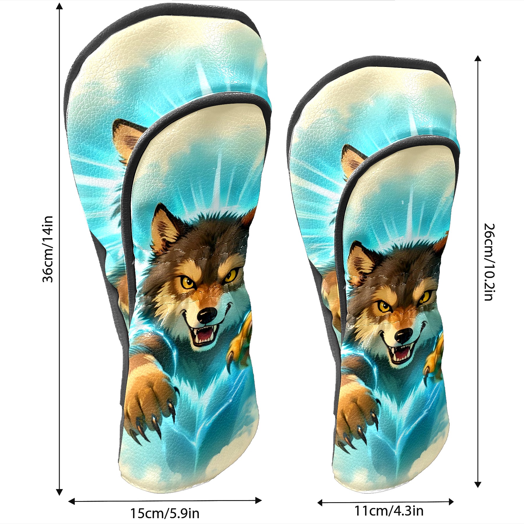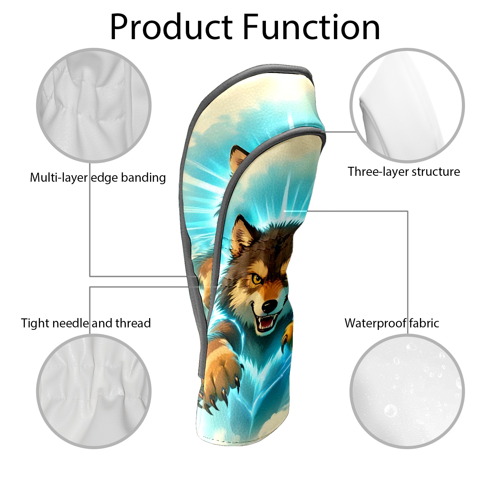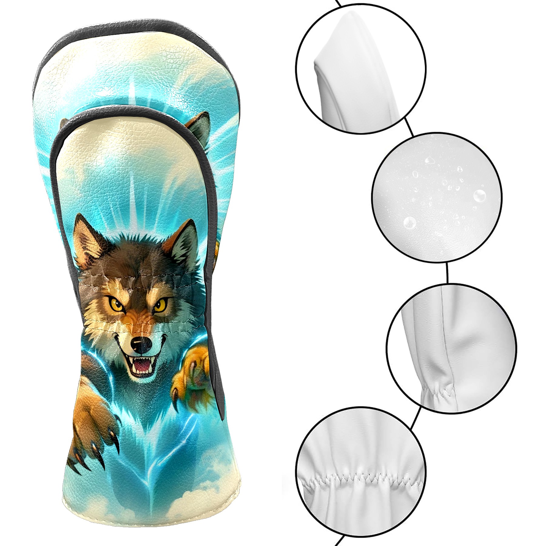 Golf Club Head Covers Wolf Driver Fairway Headcover - Water Resistant PU Leather Golf Club Covers Plush Lined Golf Head Covers for Woods and Driver Ideal Gift for Men Women