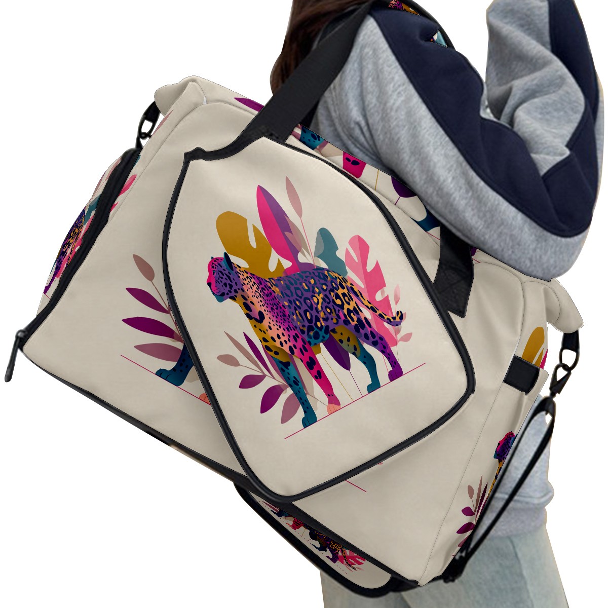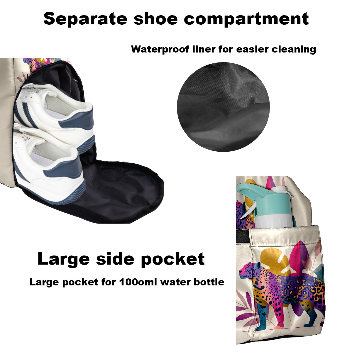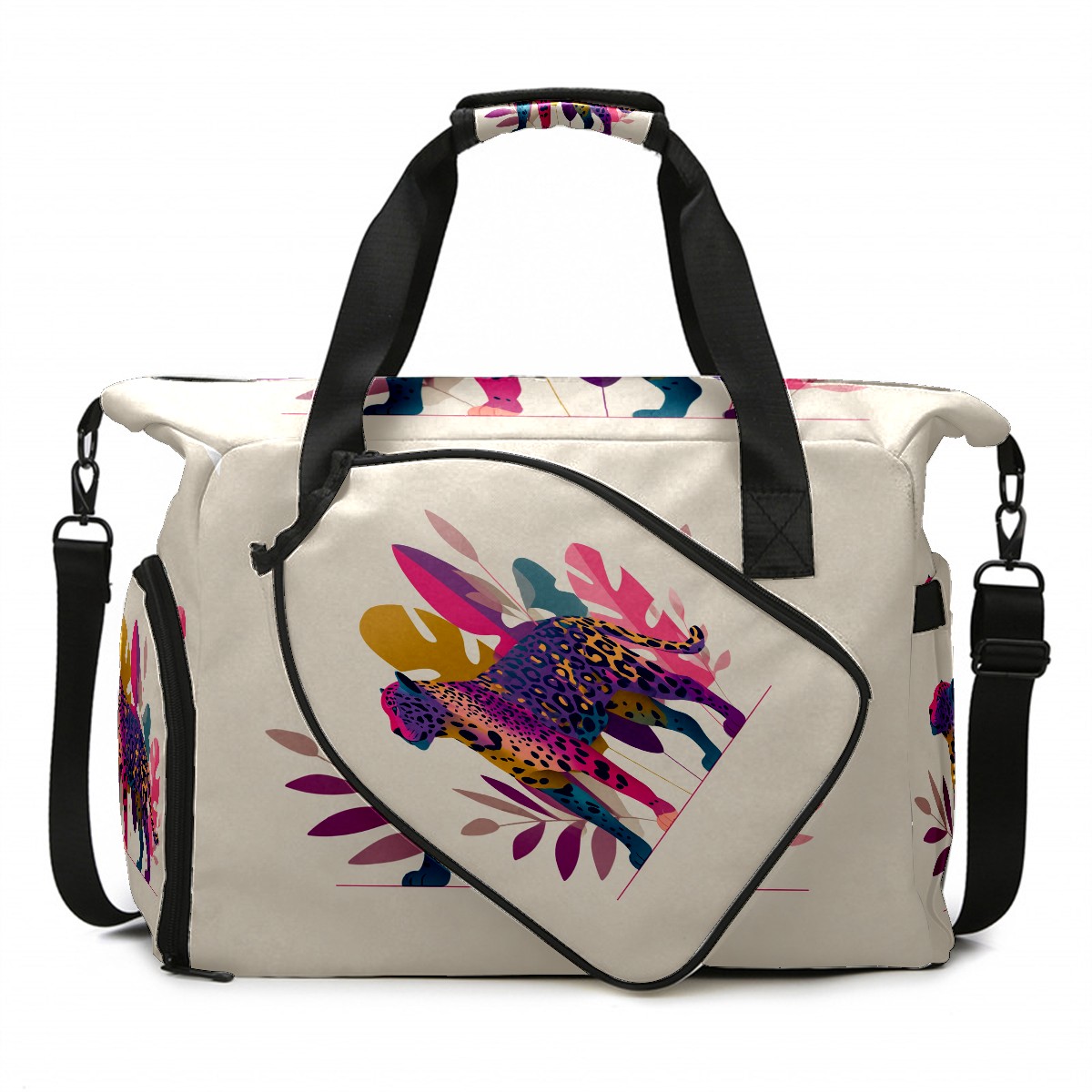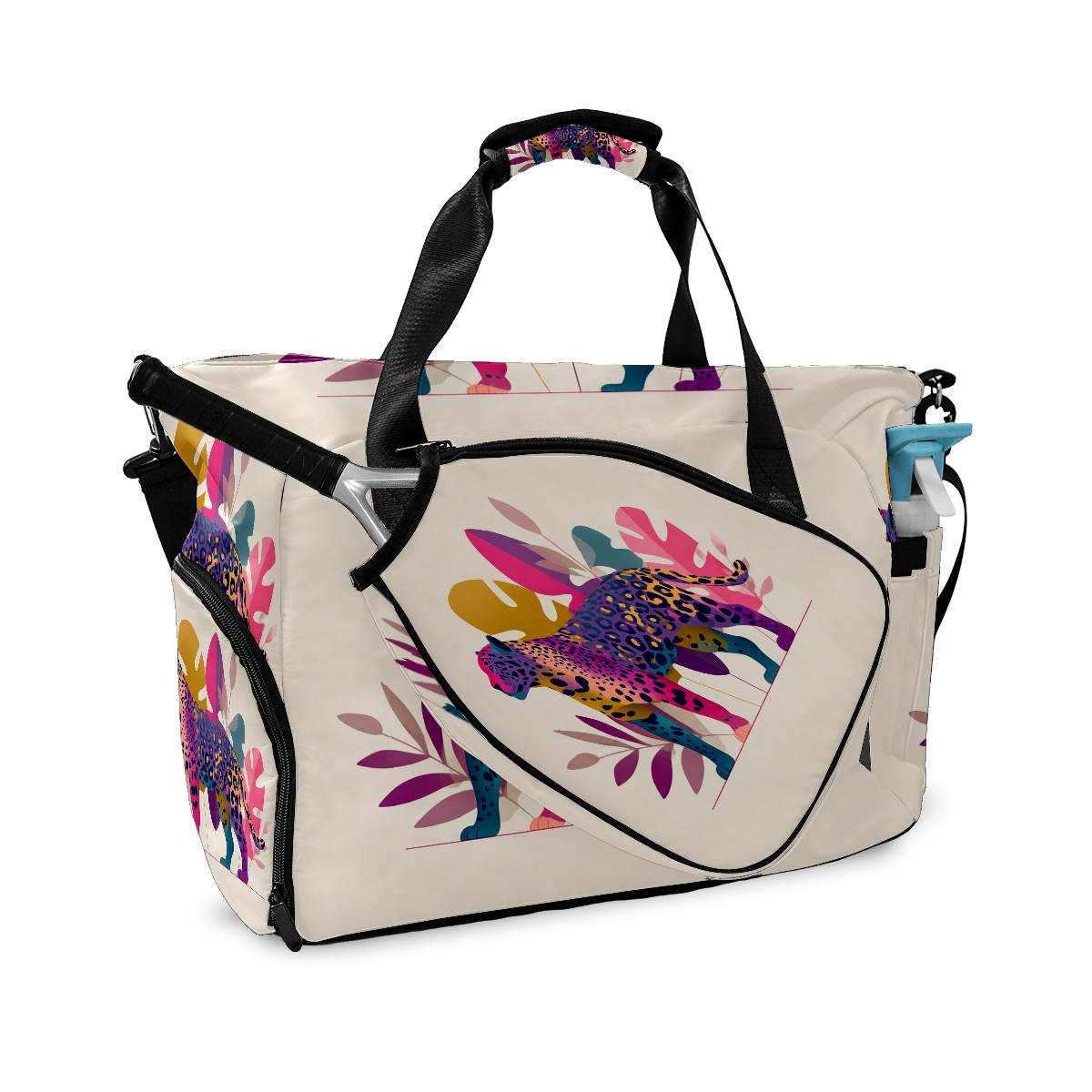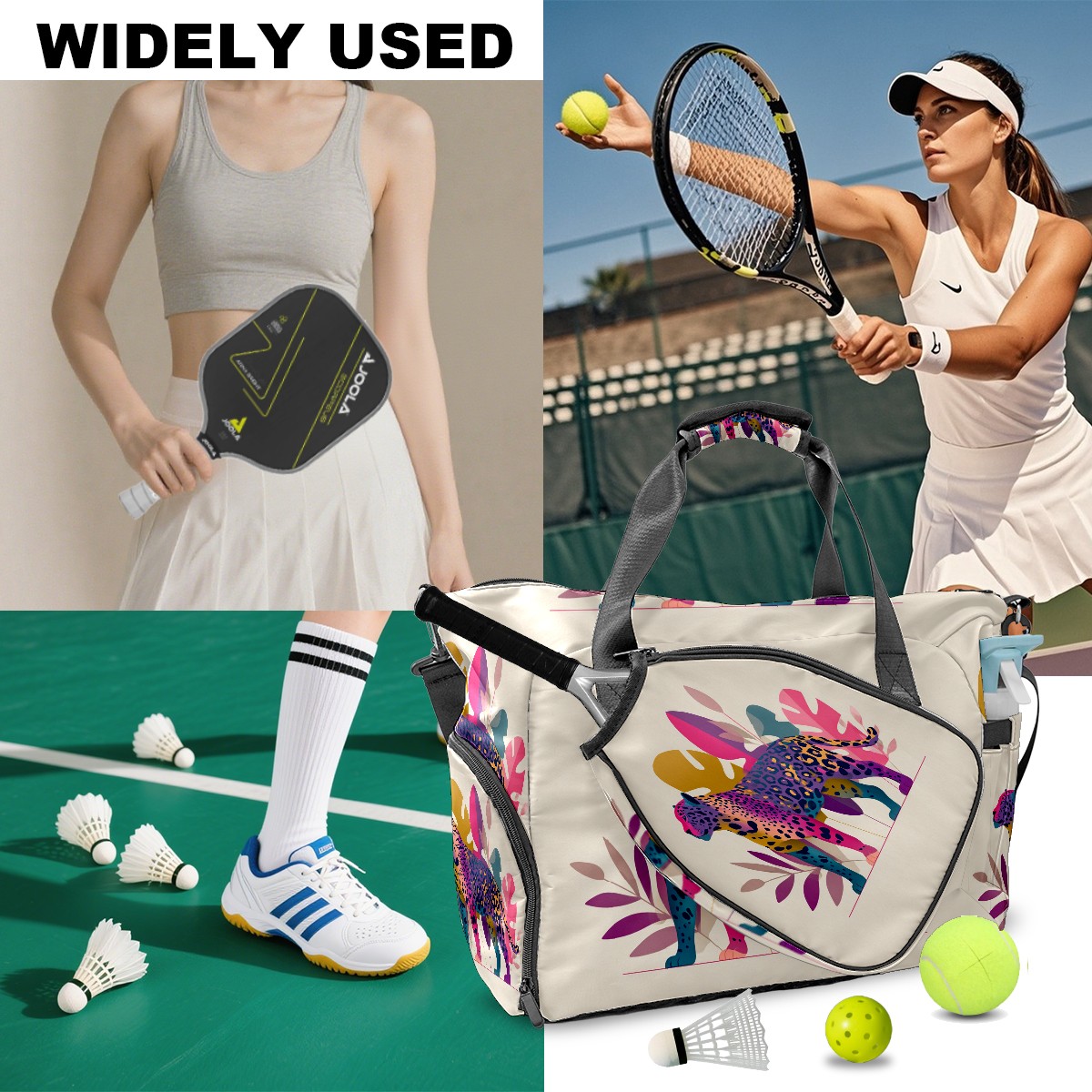 Women's Tennis Bag Large Capacity - Ventilated Shoe Compartment & Waterproof Wet Pocket, Multi-Functional Gym Duffel Bag for Tennis, Yoga, Travel (_bjkj_Diseo_moderno_colorido_y_minimalista_de_un_jaguar_y_una_2949e3c1-d72c-4d72-8c6d-99616c5ce652_2)