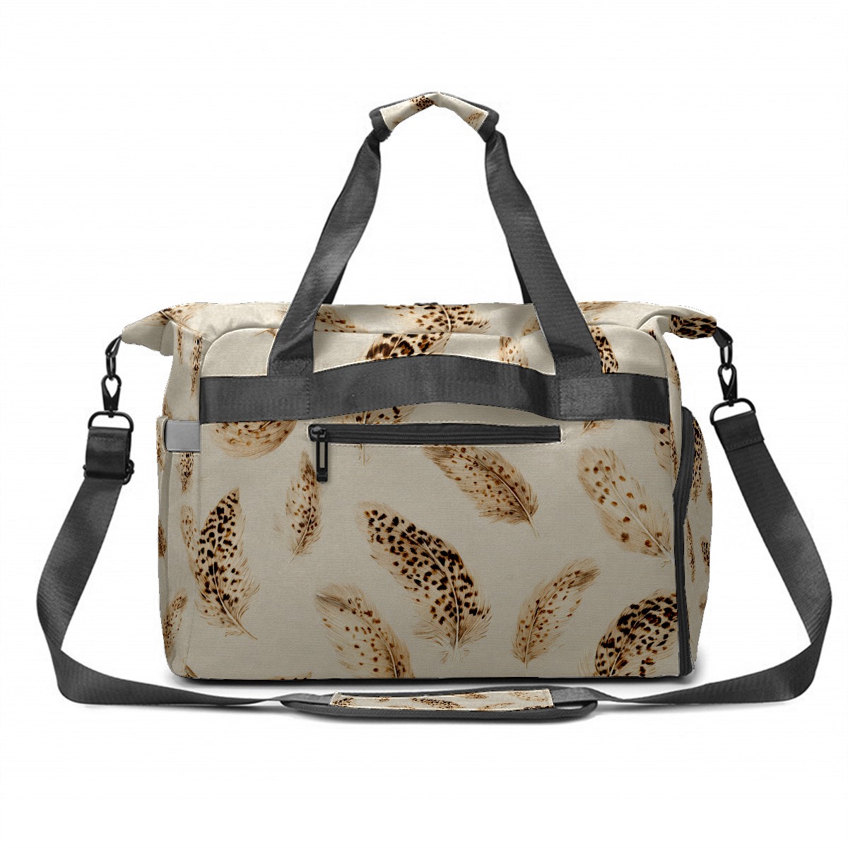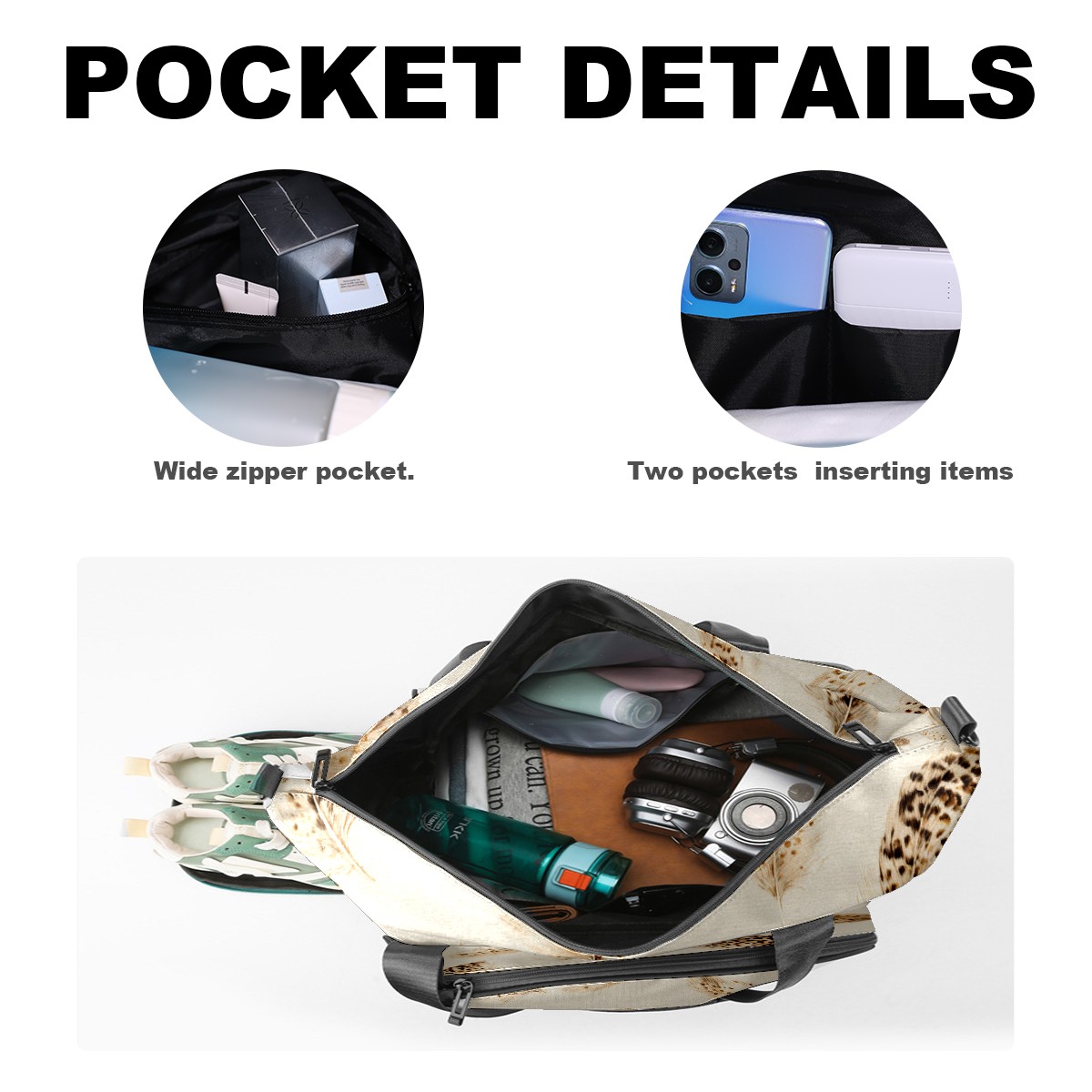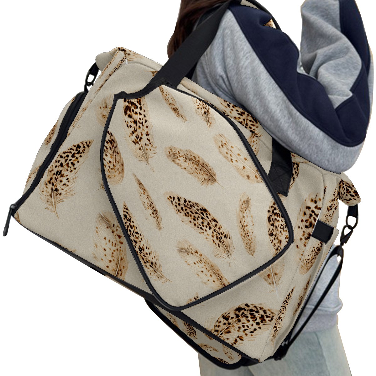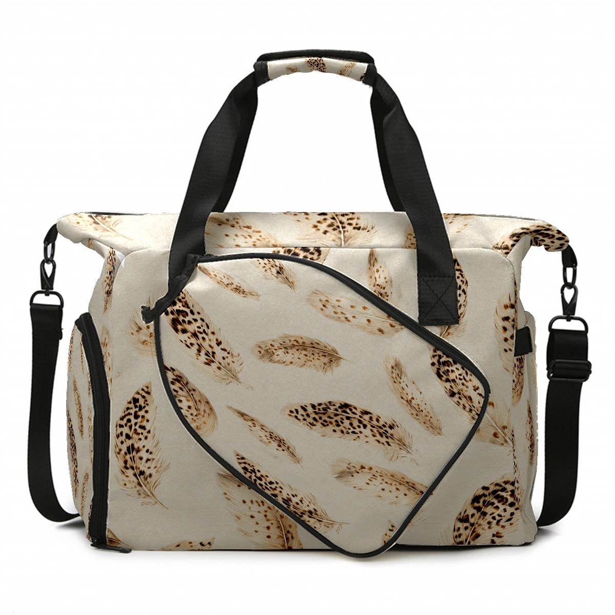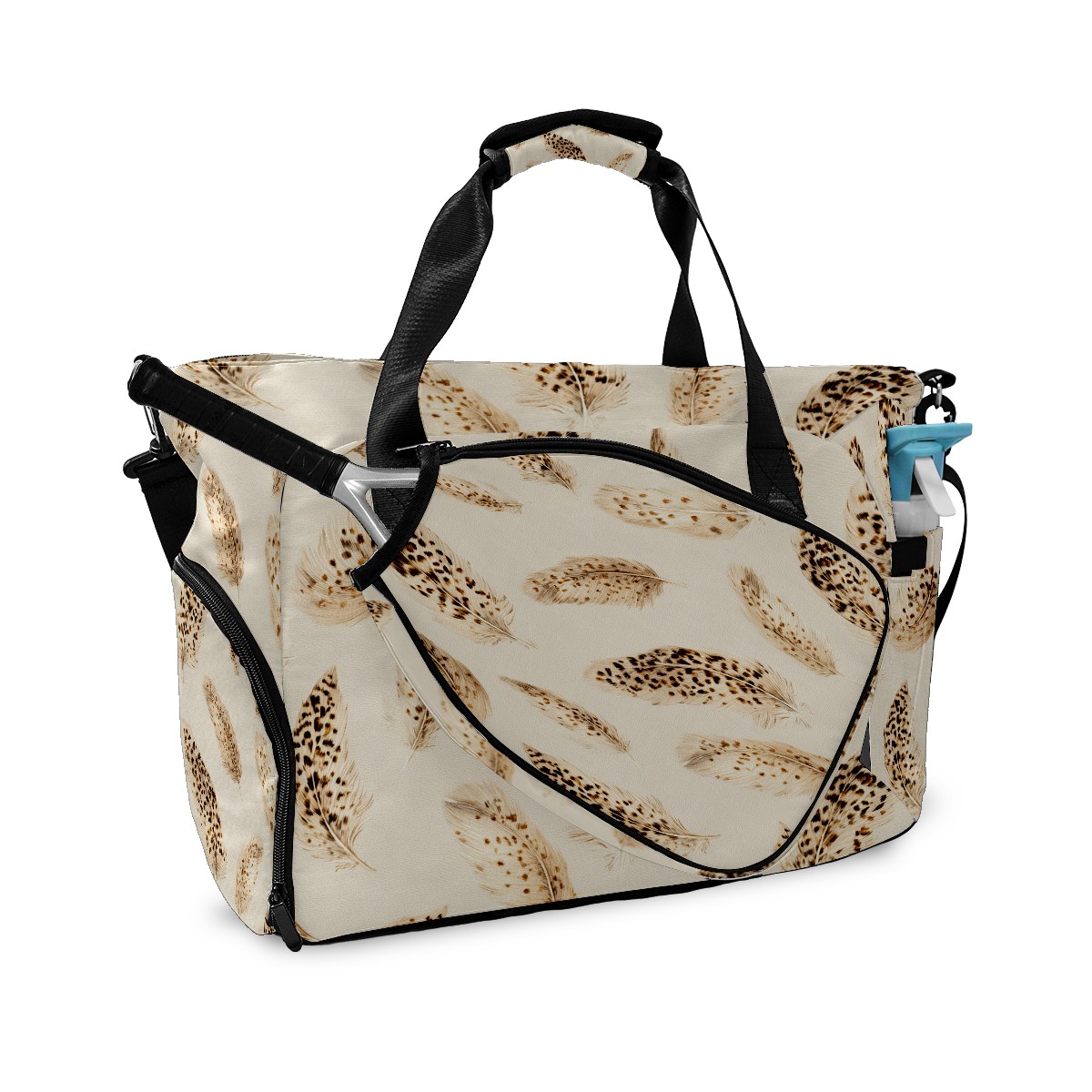 Women's Tennis Bag Large Capacity - Ventilated Shoe Compartment & Waterproof Wet Pocket, Multi-Functional Gym Duffel Bag for Tennis, Yoga, Travel (_bjkj_Design_an_illustration_of_beige_feathers_with_leopard_p_aec540eb-0495-471d-8ebb-958c2367c358_1)