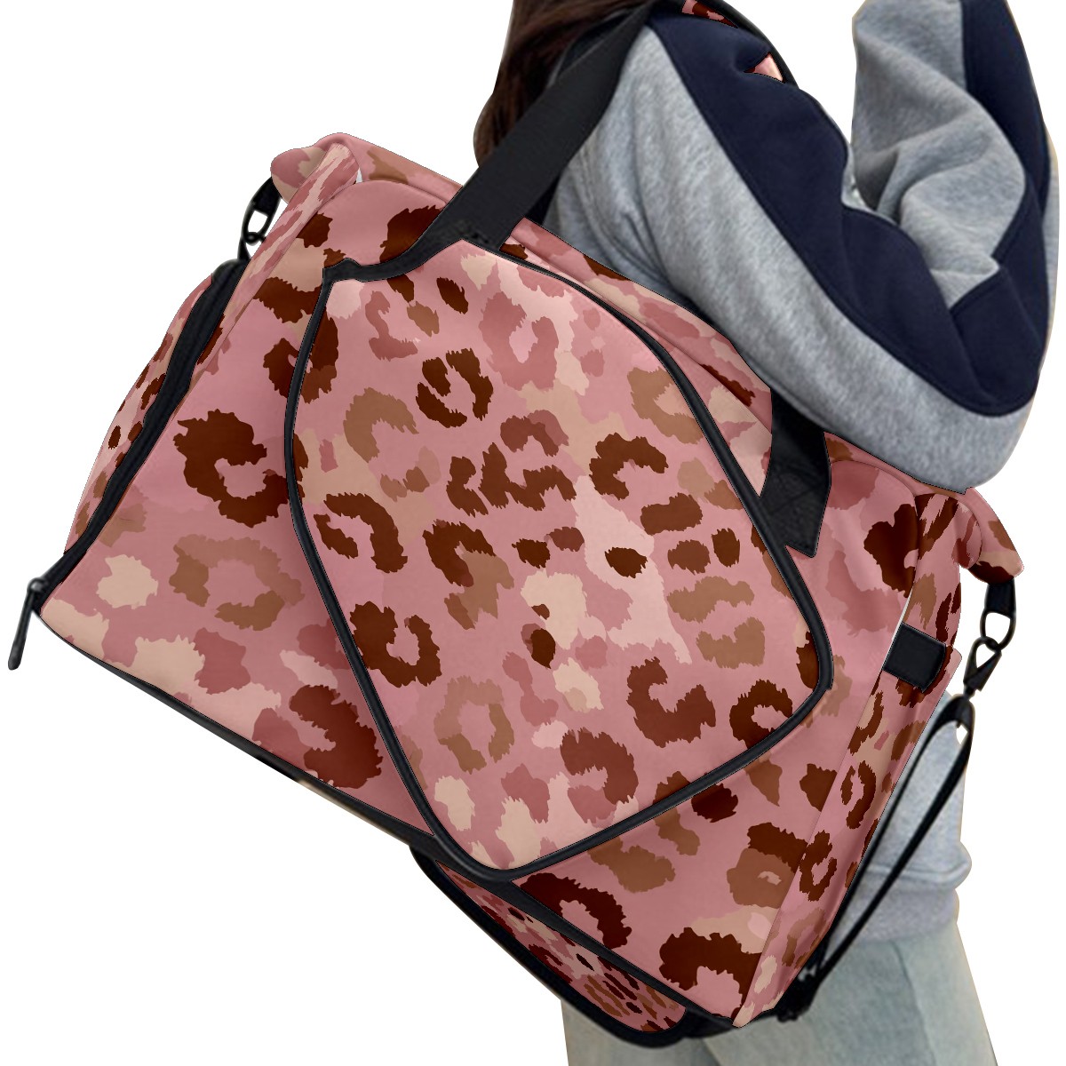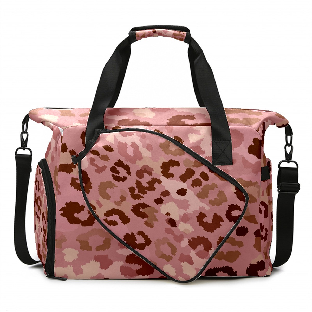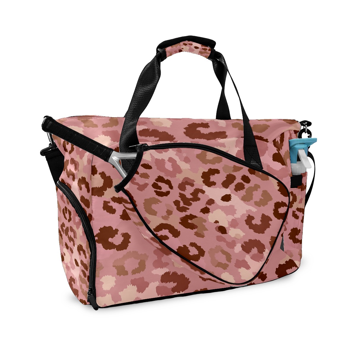 Women's Tennis Bag Large Capacity - Ventilated Shoe Compartment & Waterproof Wet Pocket, Multi-Functional Gym Duffel Bag for Tennis, Yoga, Travel (Pink Leopard Pink)