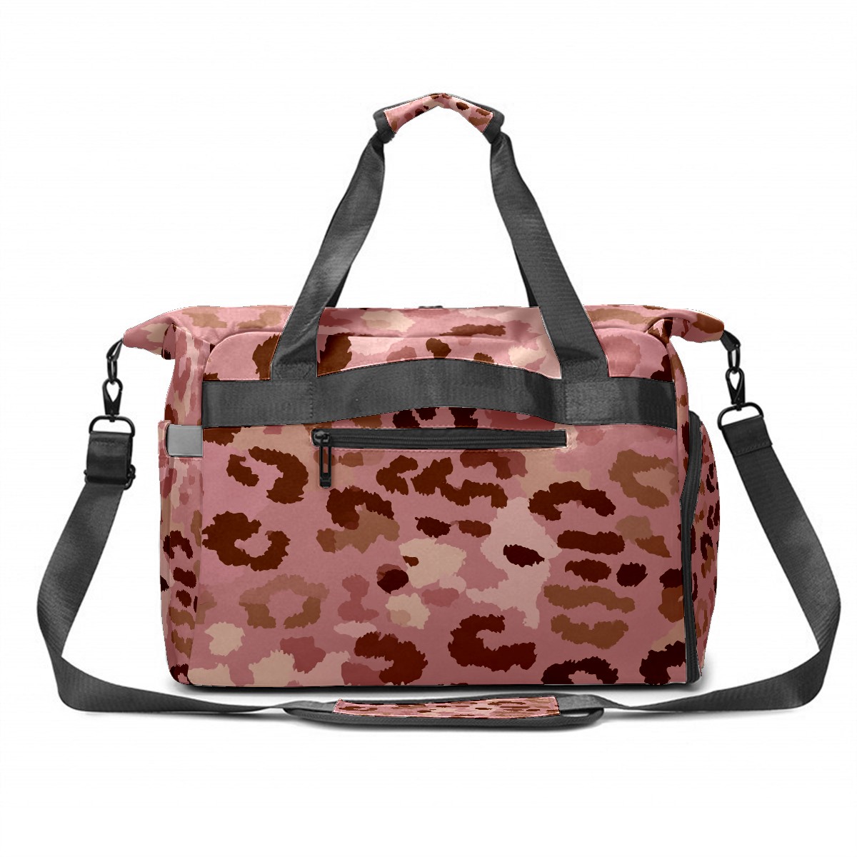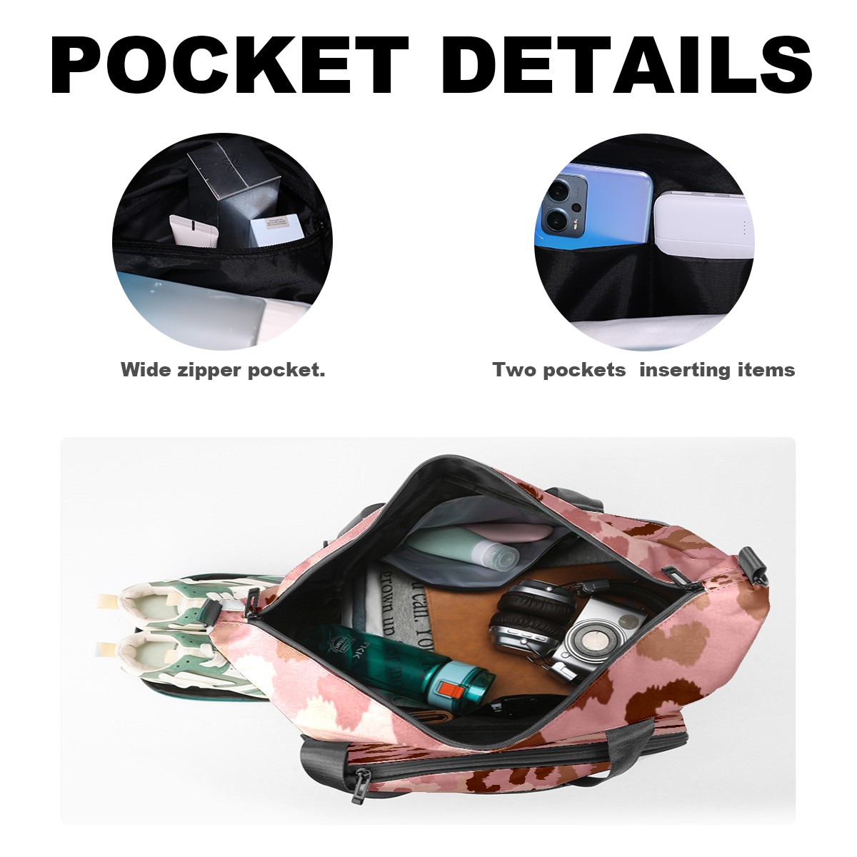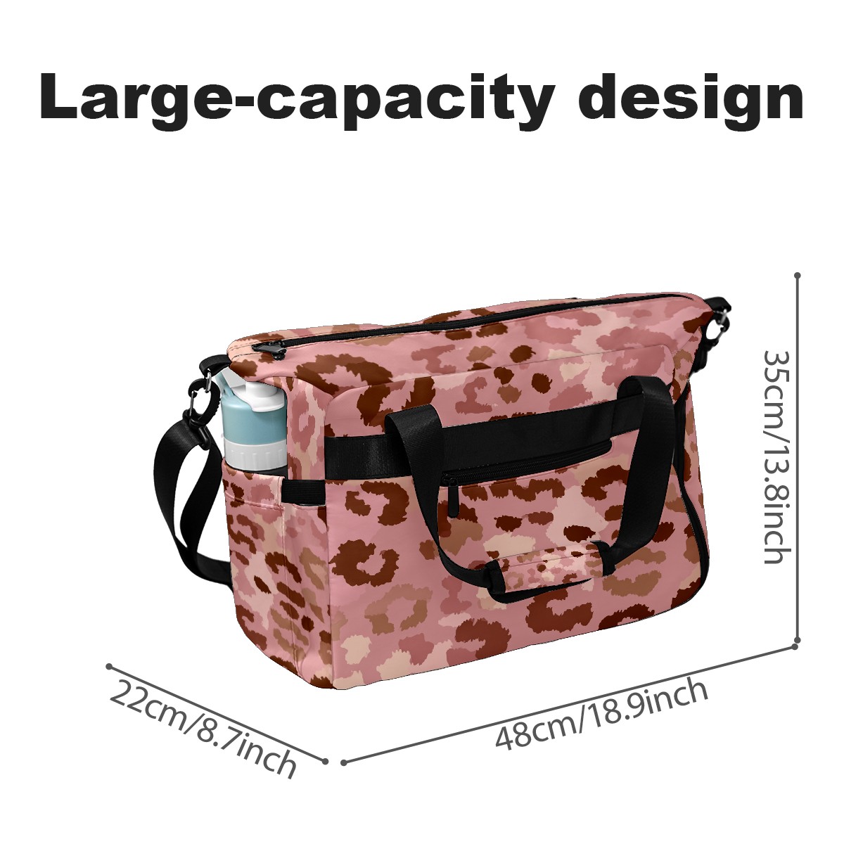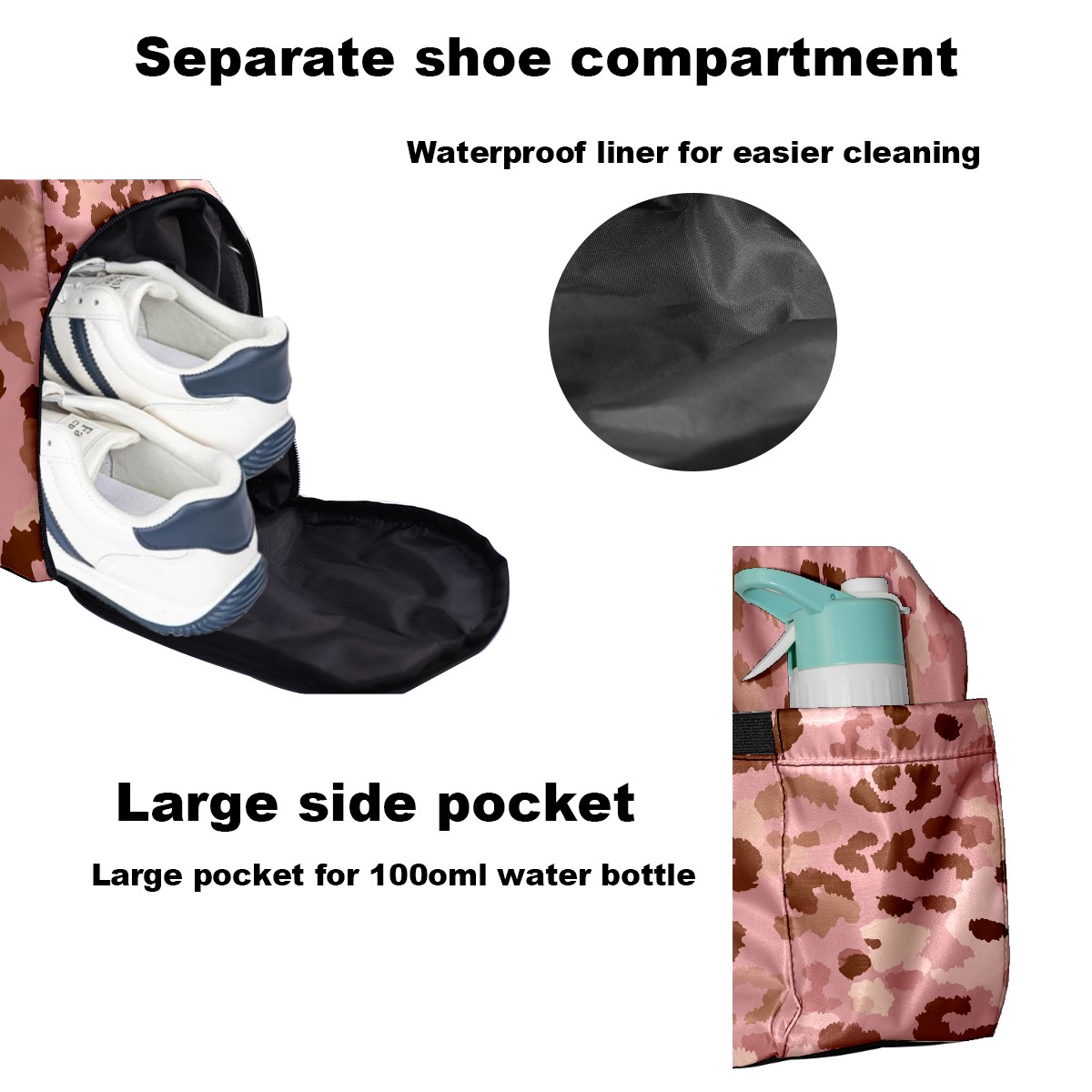 Women's Tennis Bag Large Capacity - Ventilated Shoe Compartment & Waterproof Wet Pocket, Multi-Functional Gym Duffel Bag for Tennis, Yoga, Travel (Pink Leopard Pink)