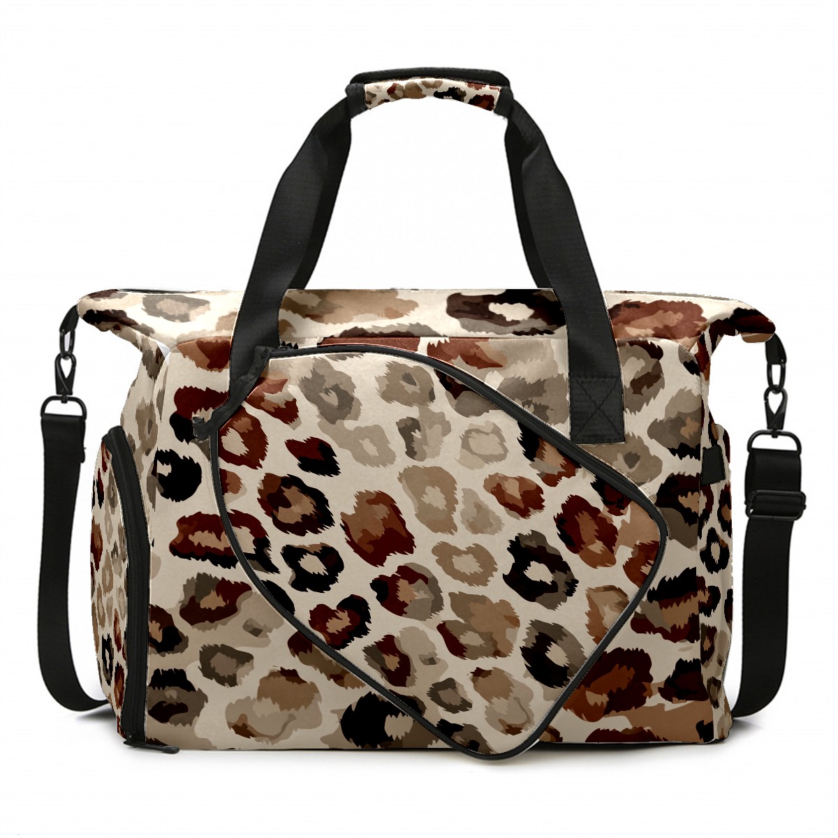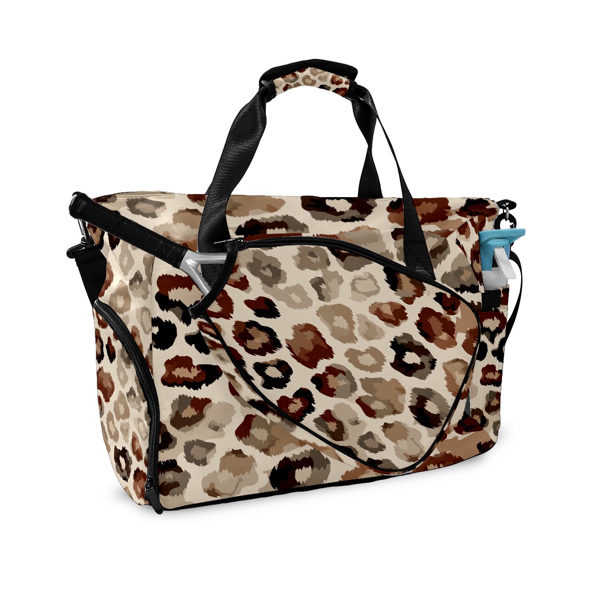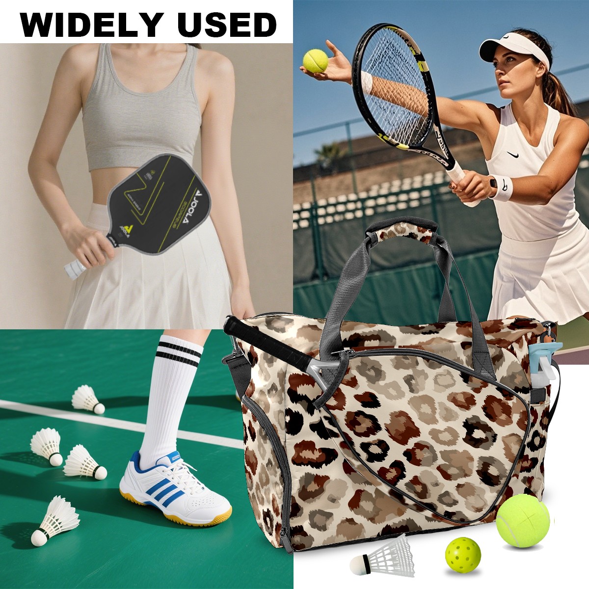 Women's Tennis Bag Large Capacity - Ventilated Shoe Compartment & Waterproof Wet Pocket, Multi-Functional Gym Duffel Bag for Tennis, Yoga, Travel (Leopard Print Brown)