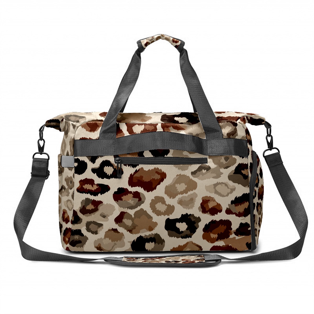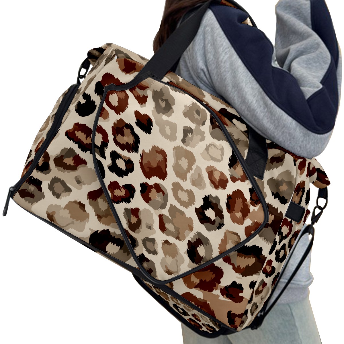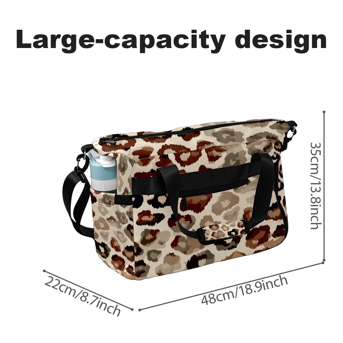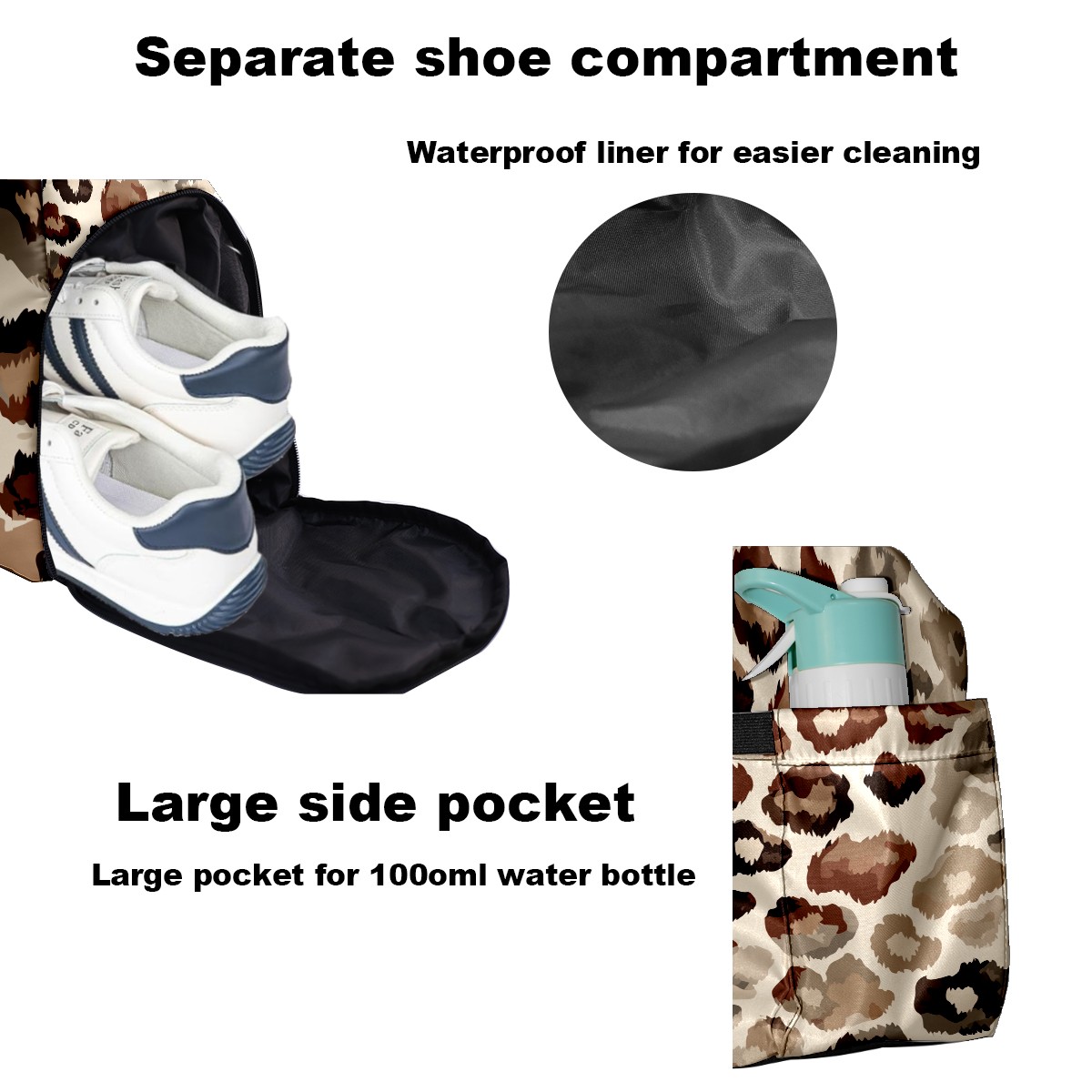 Women's Tennis Bag Large Capacity - Ventilated Shoe Compartment & Waterproof Wet Pocket, Multi-Functional Gym Duffel Bag for Tennis, Yoga, Travel (Leopard Print Brown)