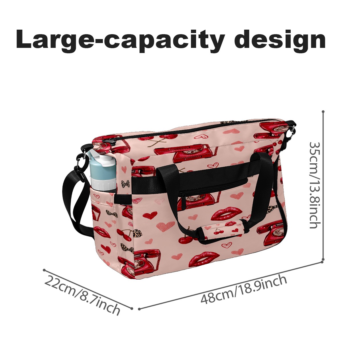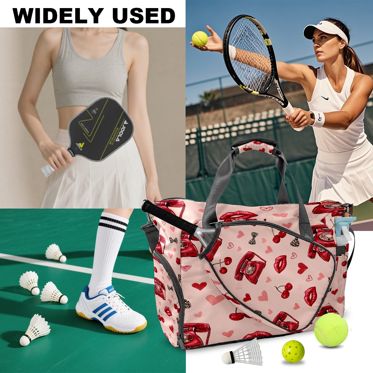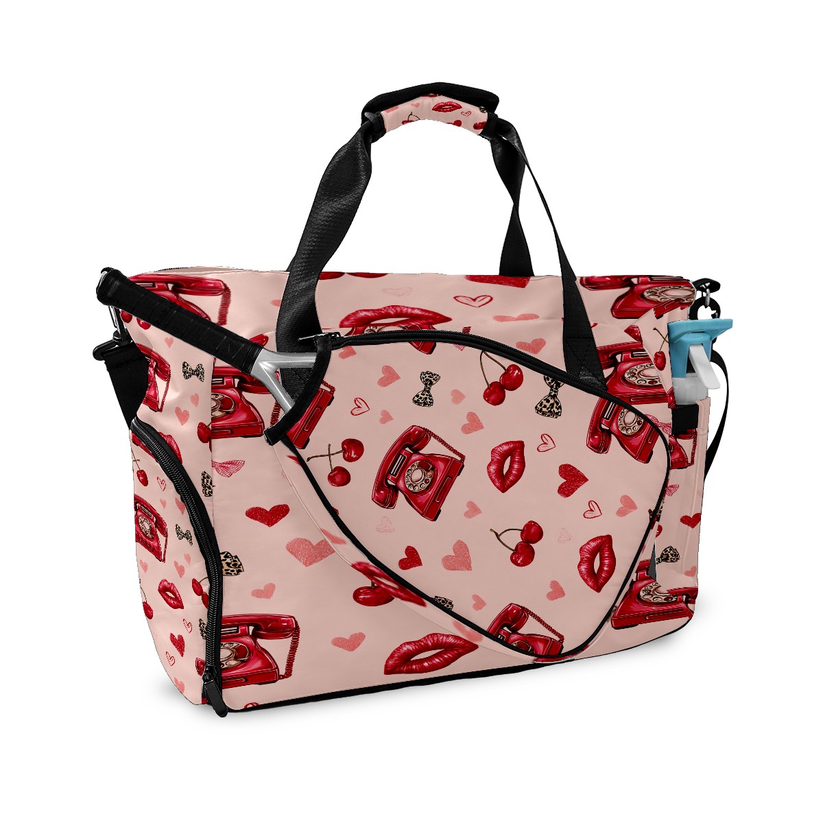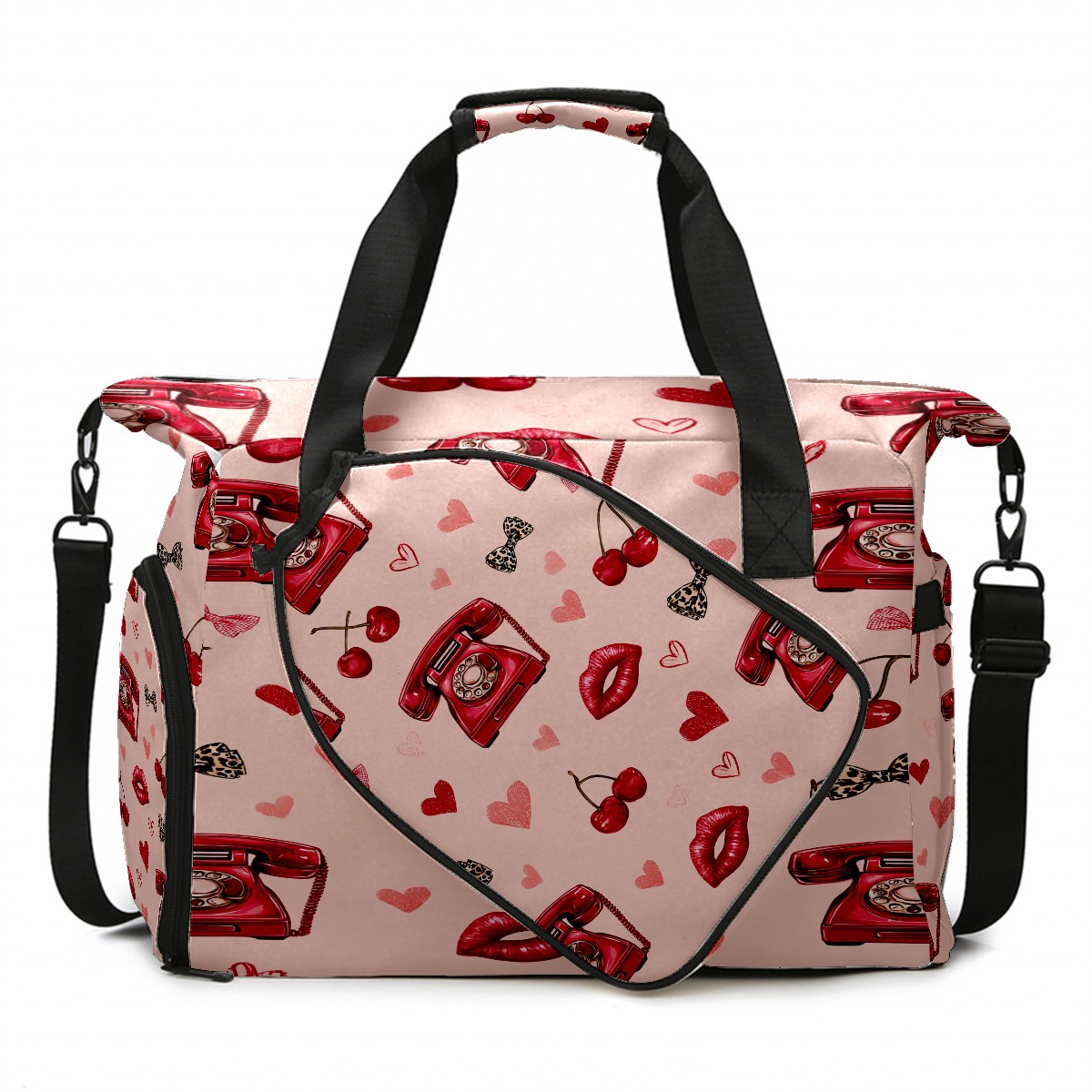 Women's Tennis Bag Large Capacity - Ventilated Shoe Compartment & Waterproof Wet Pocket, Multi-Functional Gym Duffel Bag for Tennis, Yoga, Travel (Telephone Heart Pink)