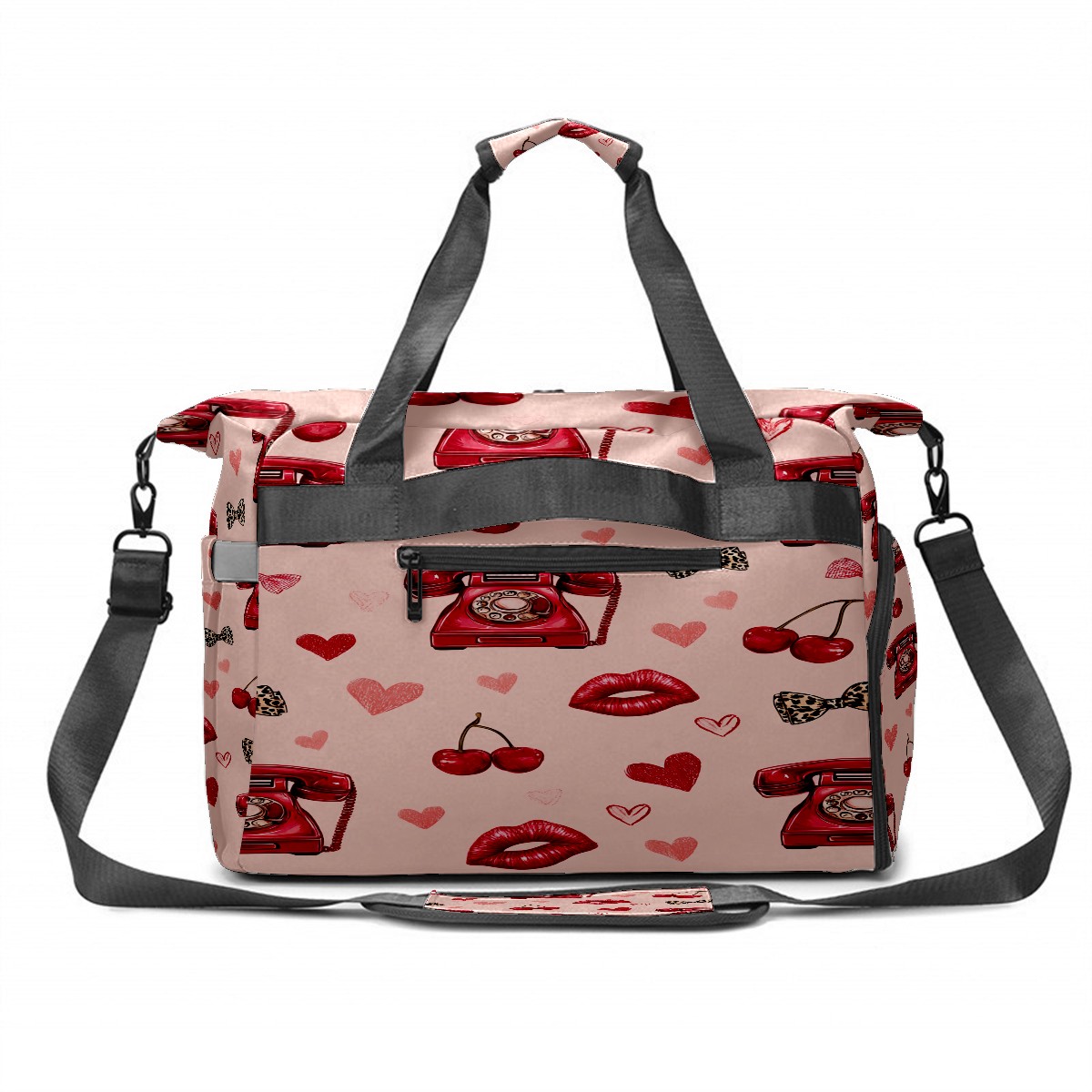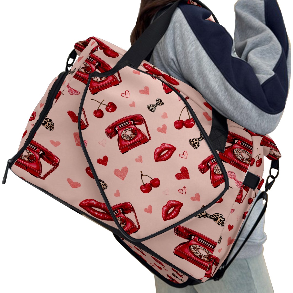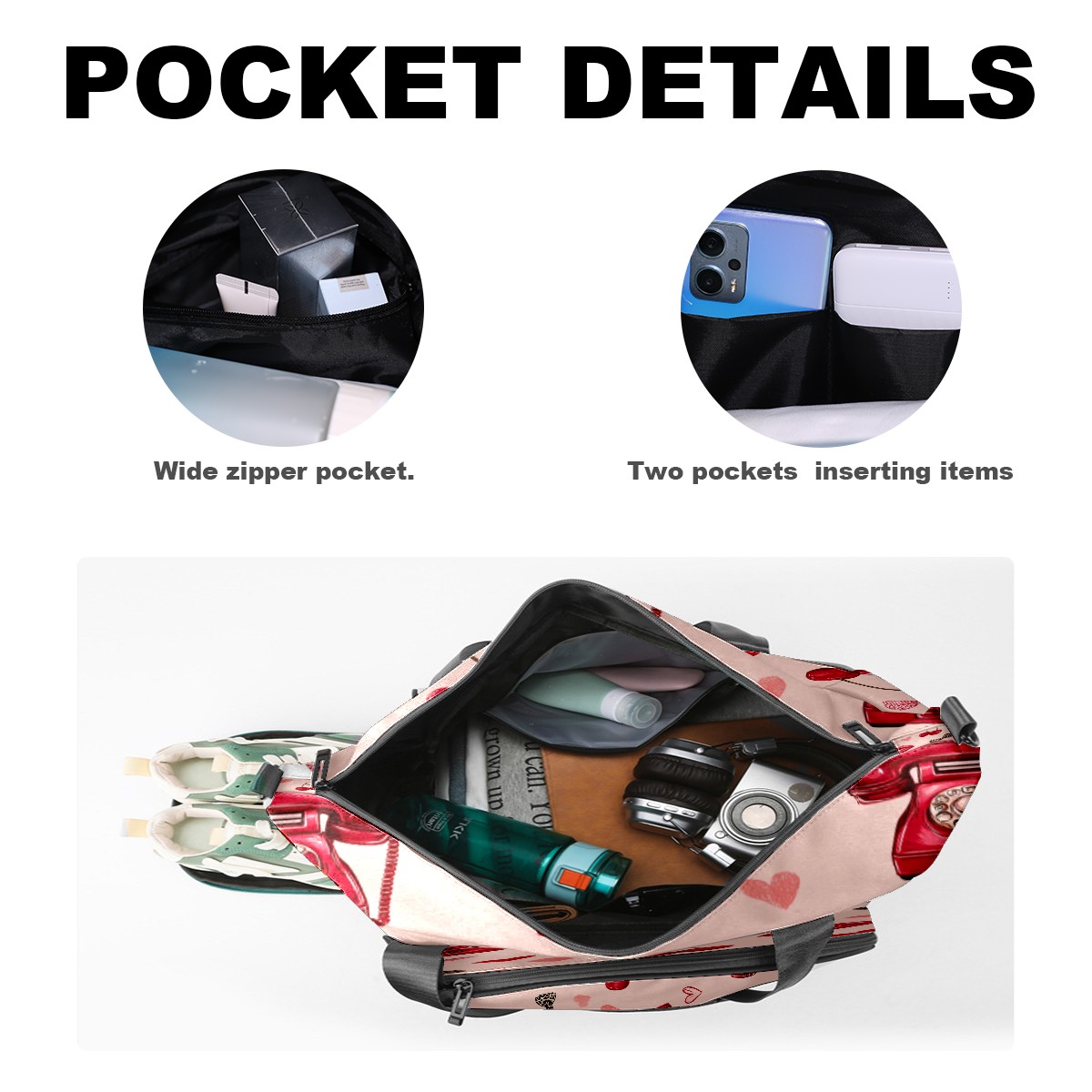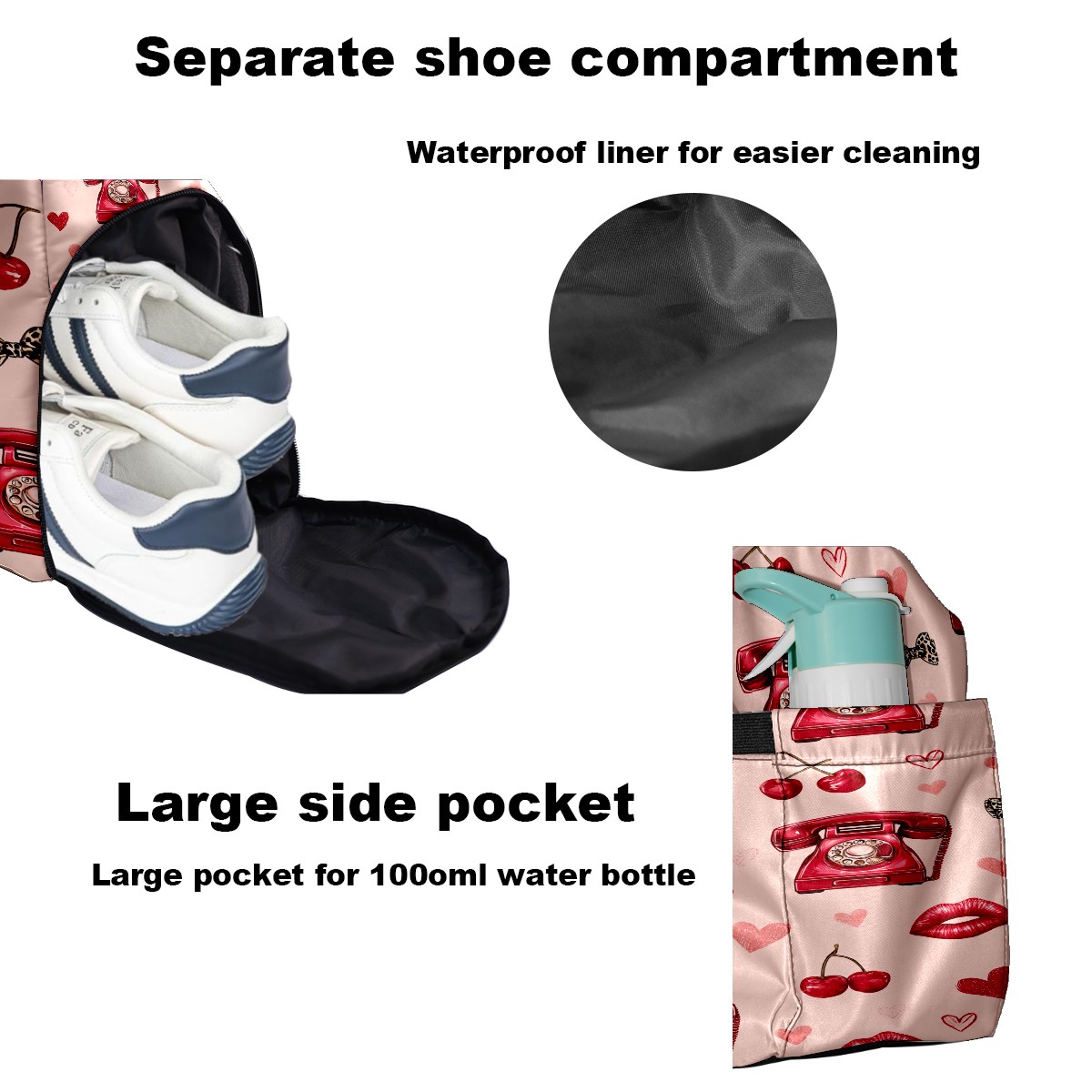 Women's Tennis Bag Large Capacity - Ventilated Shoe Compartment & Waterproof Wet Pocket, Multi-Functional Gym Duffel Bag for Tennis, Yoga, Travel (Telephone Heart Pink)