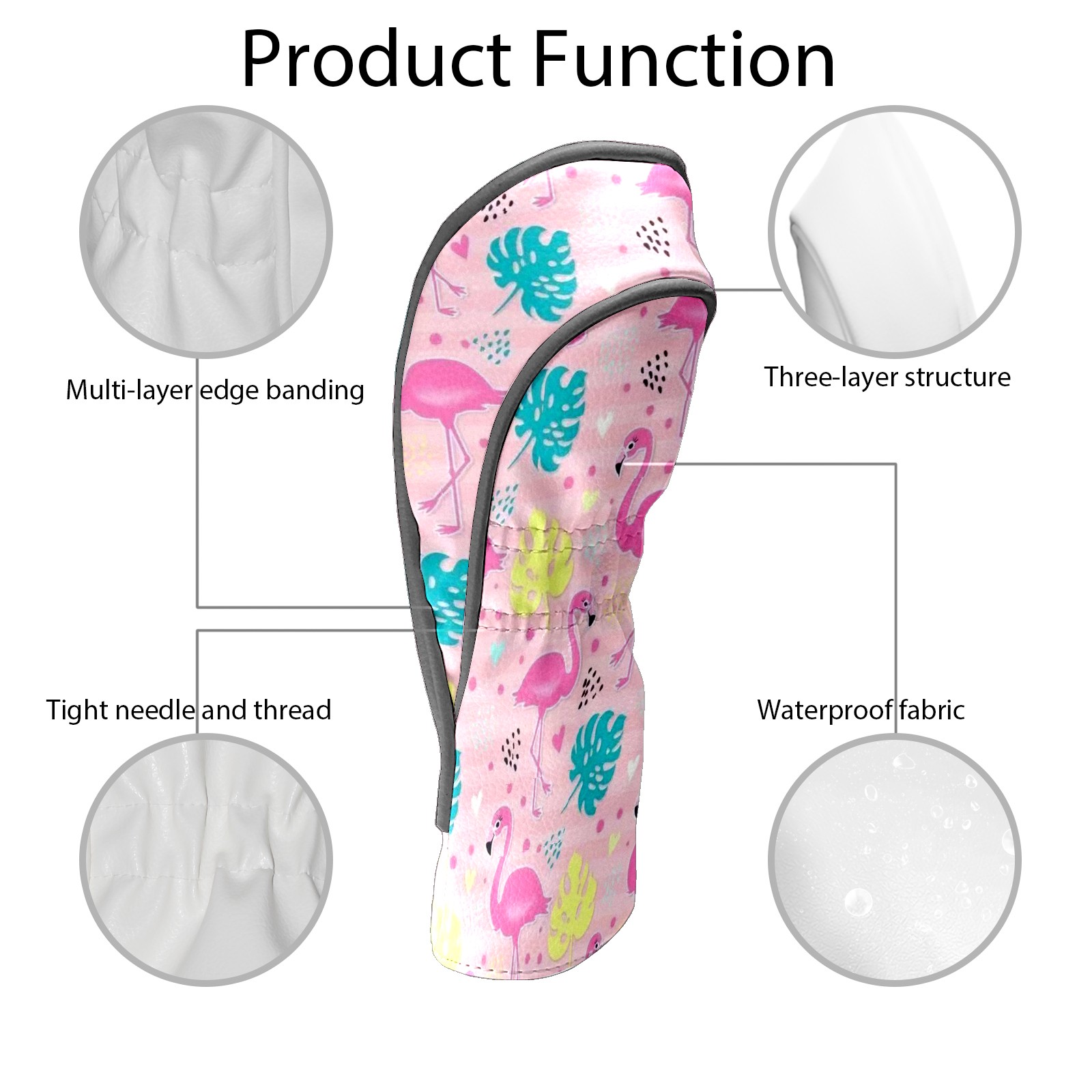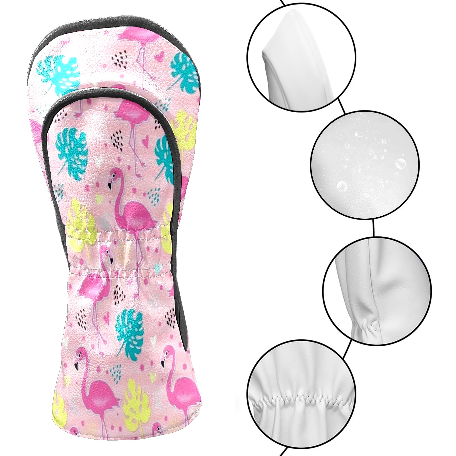 Golf Club Head Cover Waterproof Leather for Driver & Fairway Wood, Driver Headcovers, Golf Accessories for Men Women, Anti-Scratch, Golf Gift for Golfers, 1/3/5 Wood Cover Tropical Pink