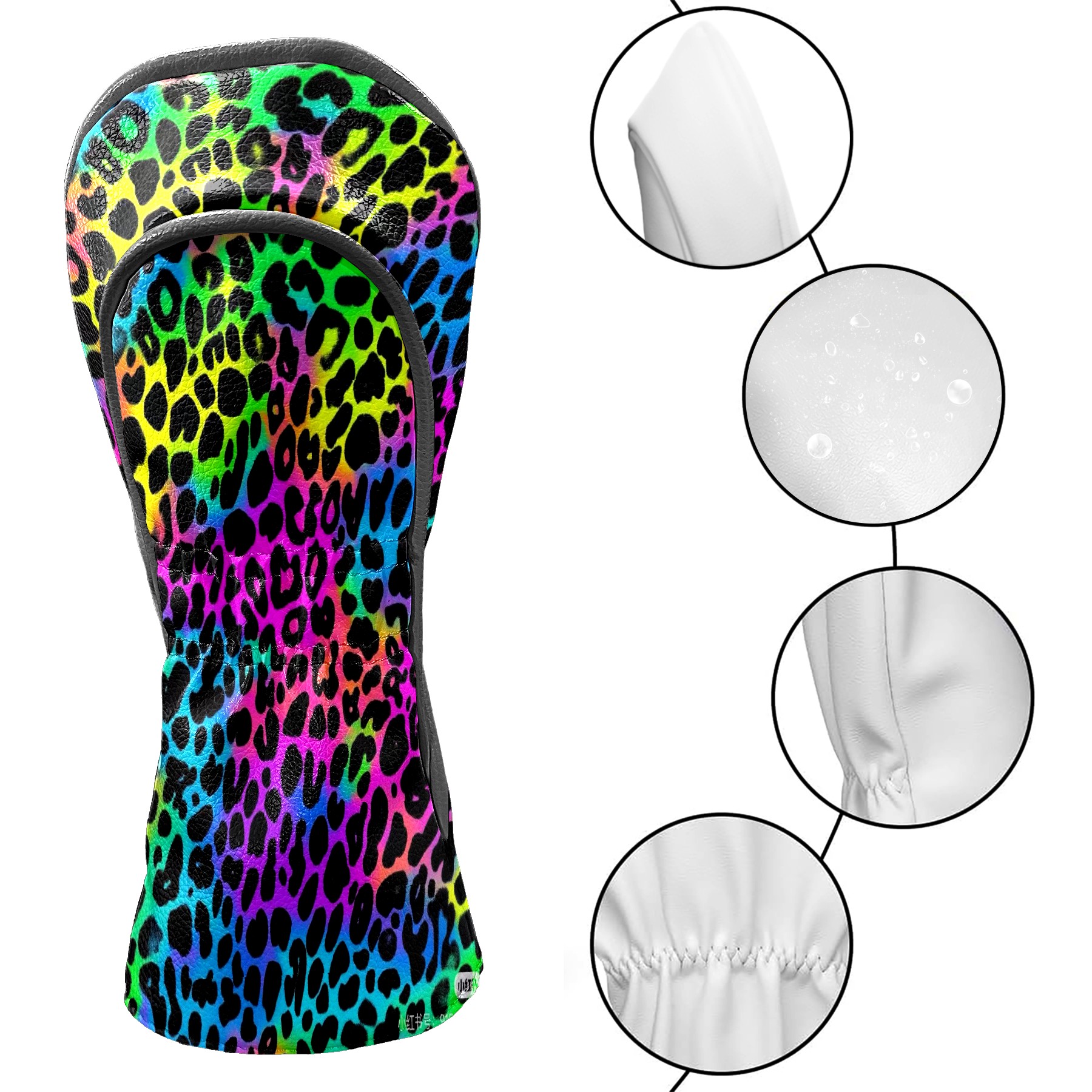 Golf Club Head Cover Waterproof Leather for Driver & Fairway Wood, Driver Headcovers, Golf Accessories for Men Women, Anti-Scratch, Golf Gift for Golfers, 1/3/5 Wood Cover Rainbow Spots