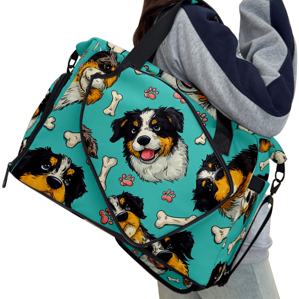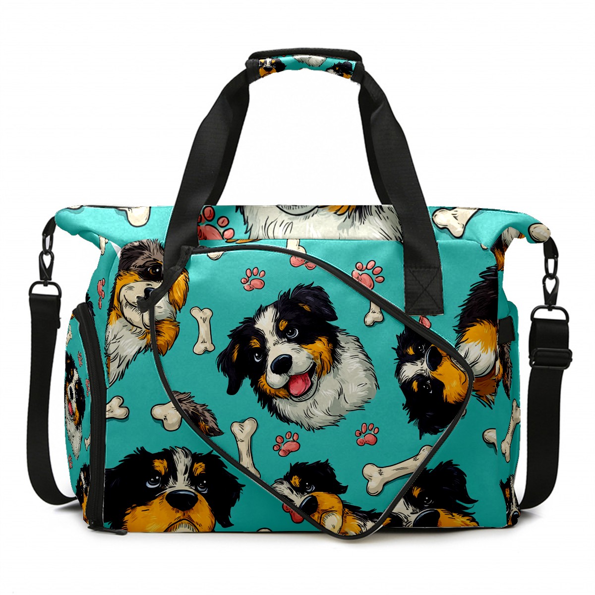 Women's Tennis Bag Large Capacity - Ventilated Shoe Compartment & Waterproof Wet Pocket, Multi-Functional Gym Duffel Bag for Tennis, Yoga, Travel (Dog Bone Blue)