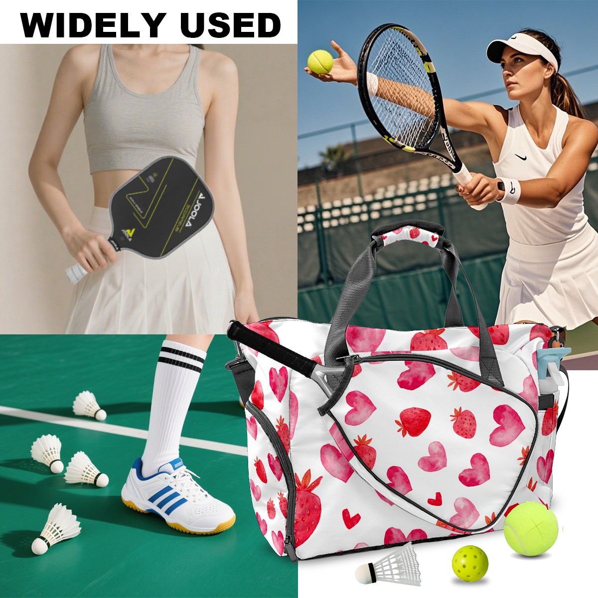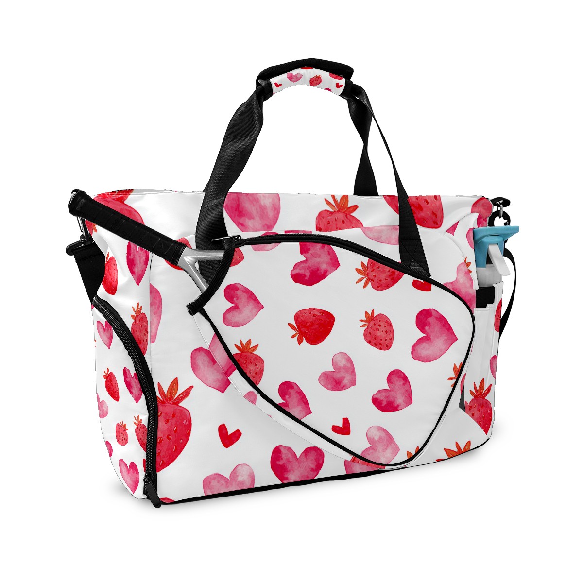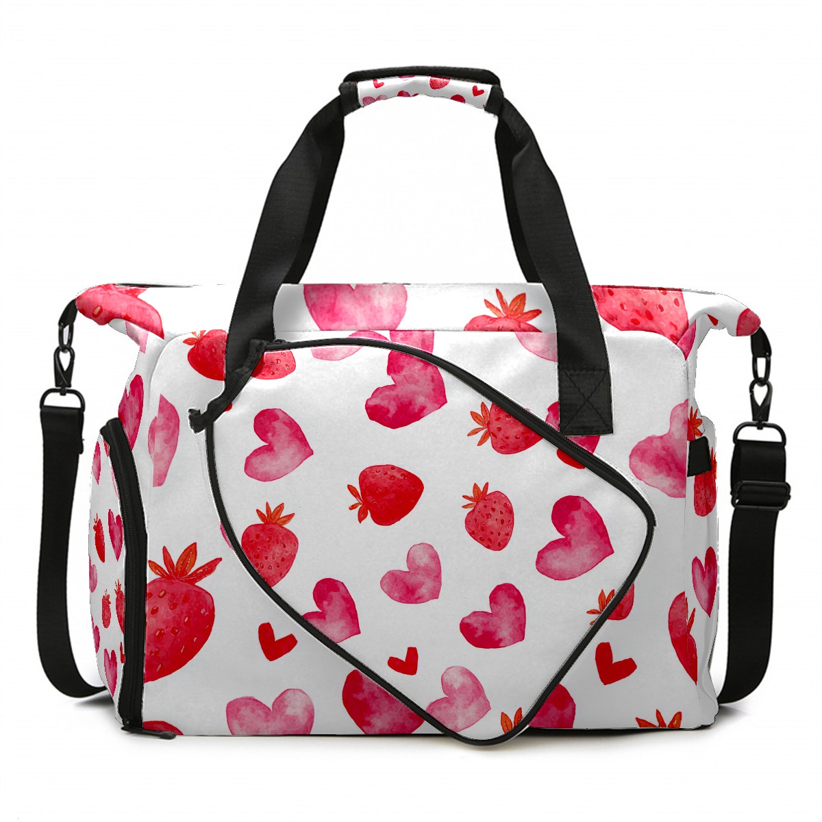 Women's Tennis Bag Large Capacity - Ventilated Shoe Compartment & Waterproof Wet Pocket, Multi-Functional Gym Duffel Bag for Tennis, Yoga, Travel (Strawberry Heart Red)