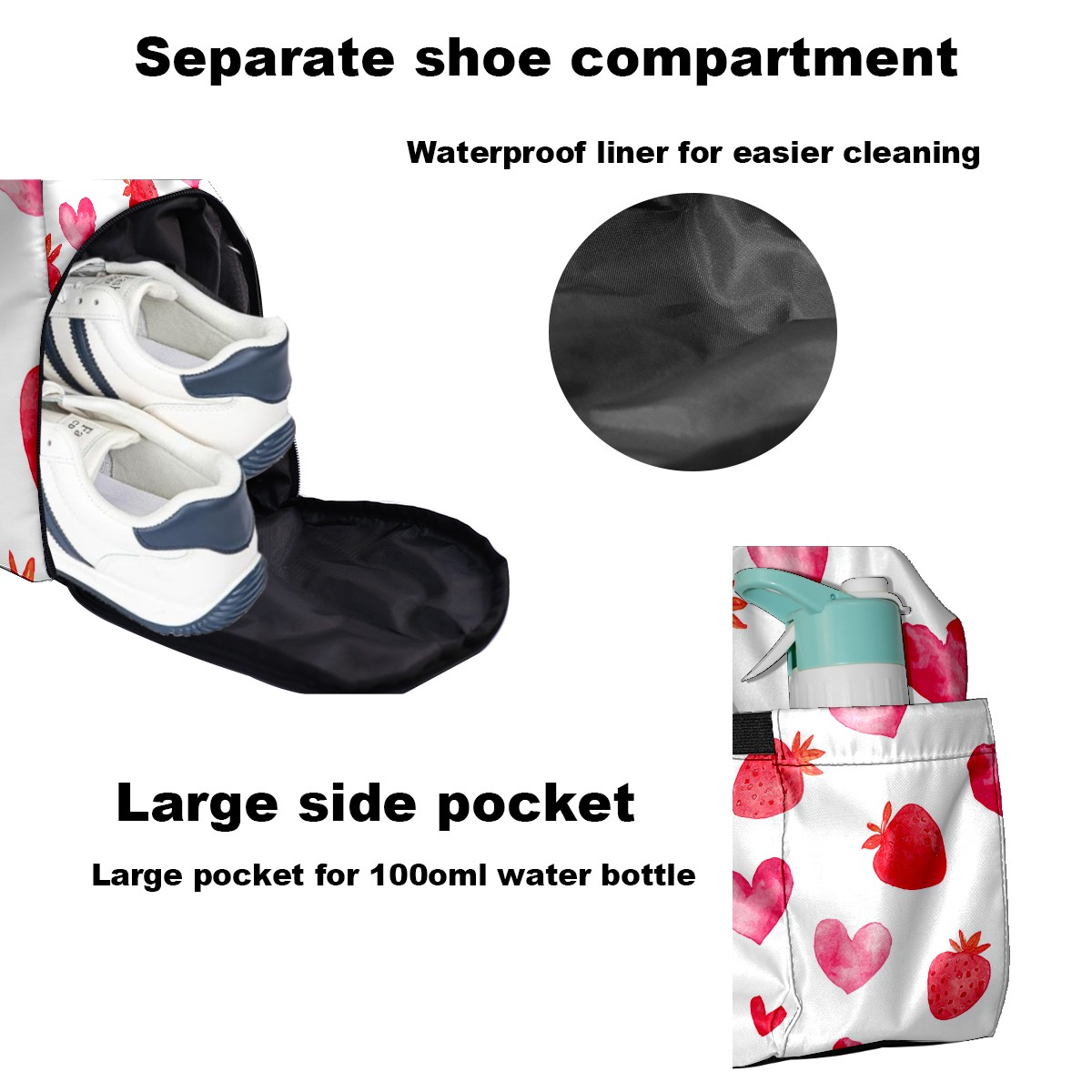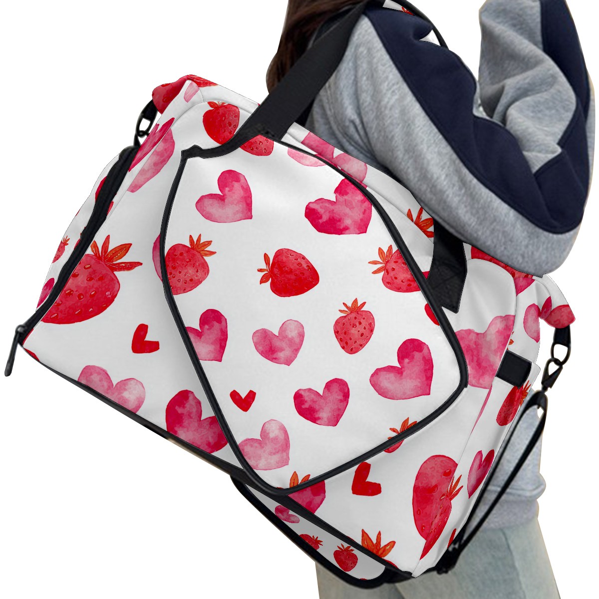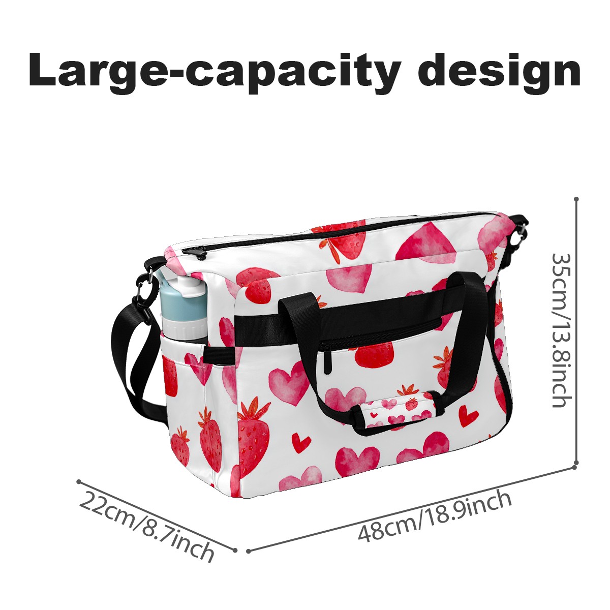 Women's Tennis Bag Large Capacity - Ventilated Shoe Compartment & Waterproof Wet Pocket, Multi-Functional Gym Duffel Bag for Tennis, Yoga, Travel (Strawberry Heart Red)