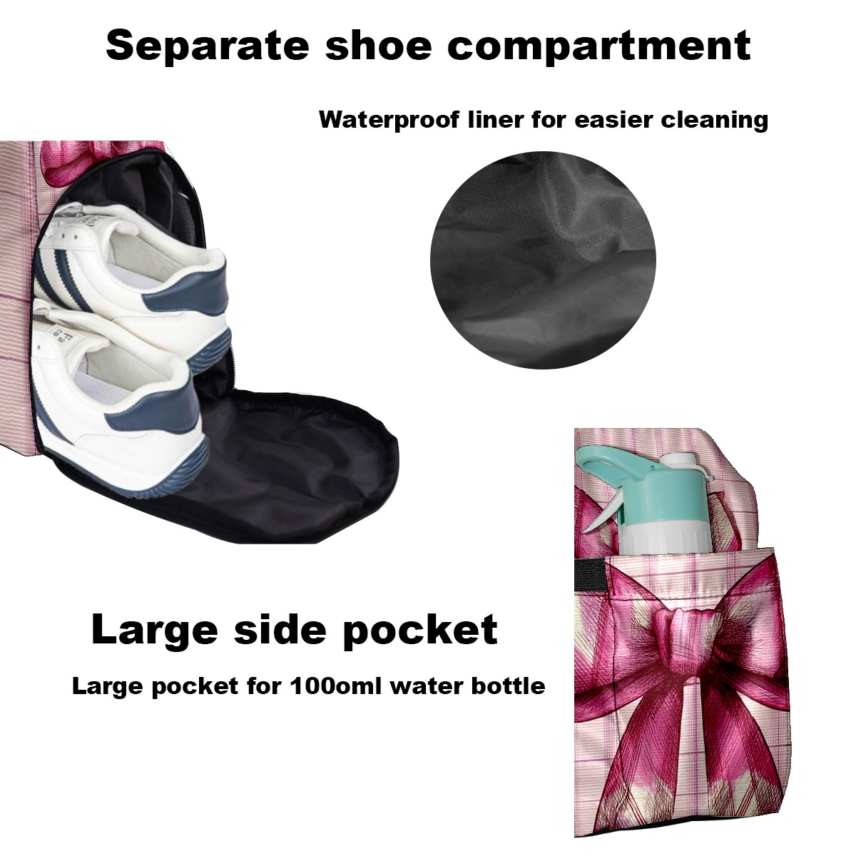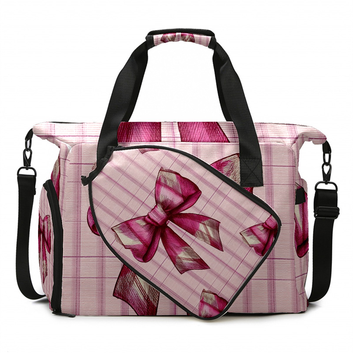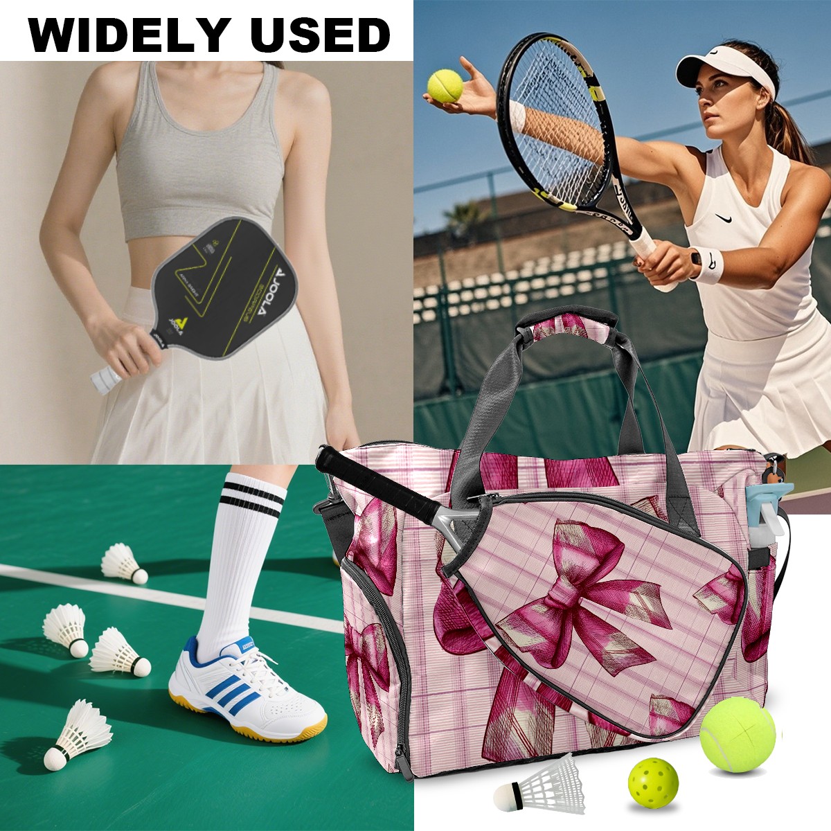 Women's Tennis Bag Large Capacity - Ventilated Shoe Compartment & Waterproof Wet Pocket, Multi-Functional Gym Duffel Bag for Tennis, Yoga, Travel (Bow Pink)