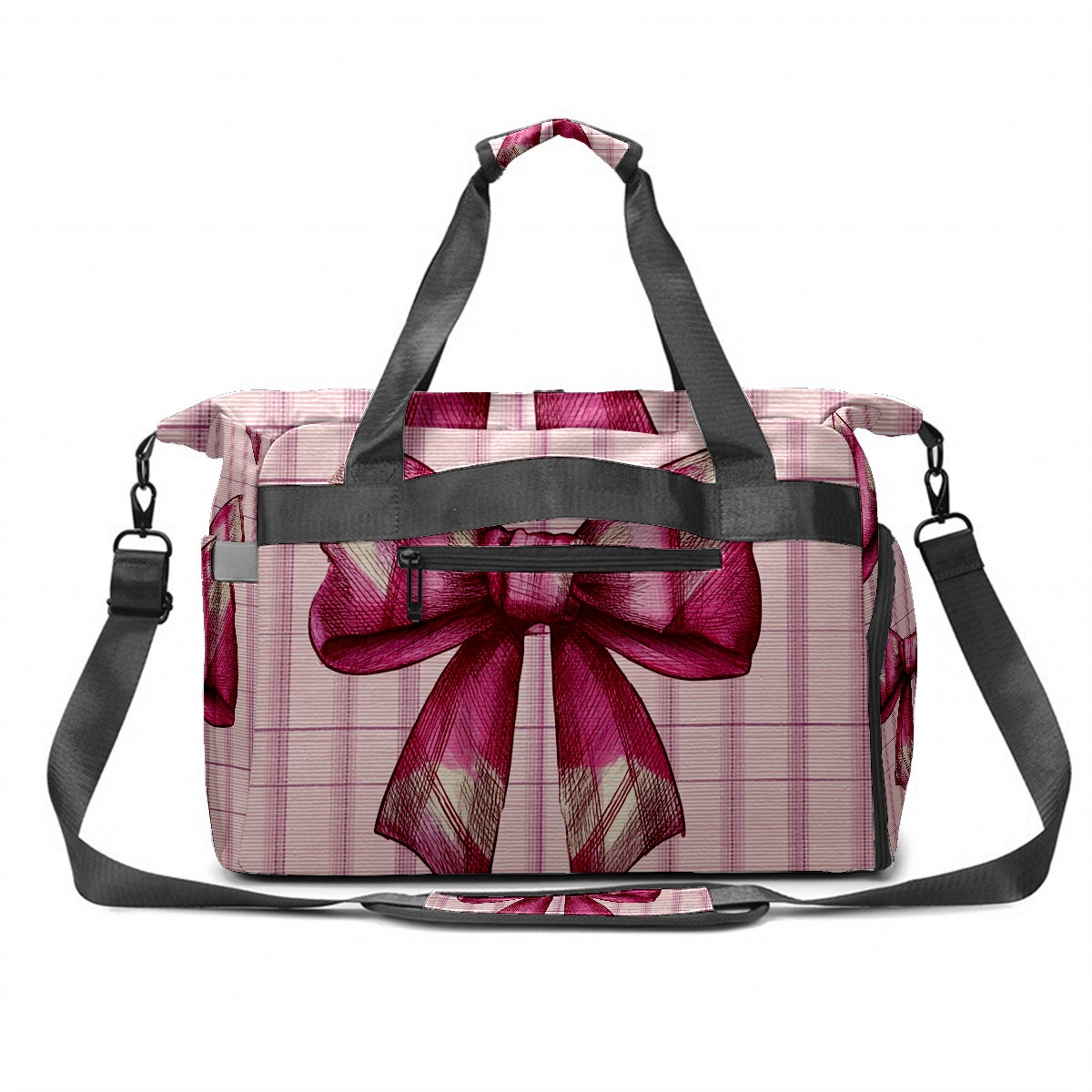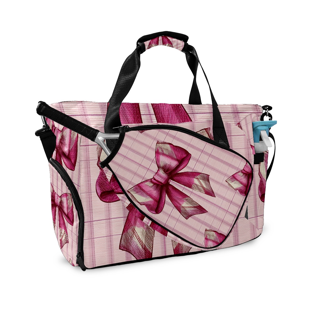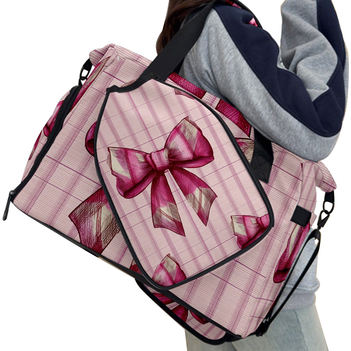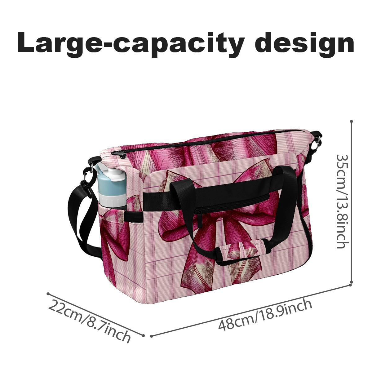 Women's Tennis Bag Large Capacity - Ventilated Shoe Compartment & Waterproof Wet Pocket, Multi-Functional Gym Duffel Bag for Tennis, Yoga, Travel (Bow Pink)